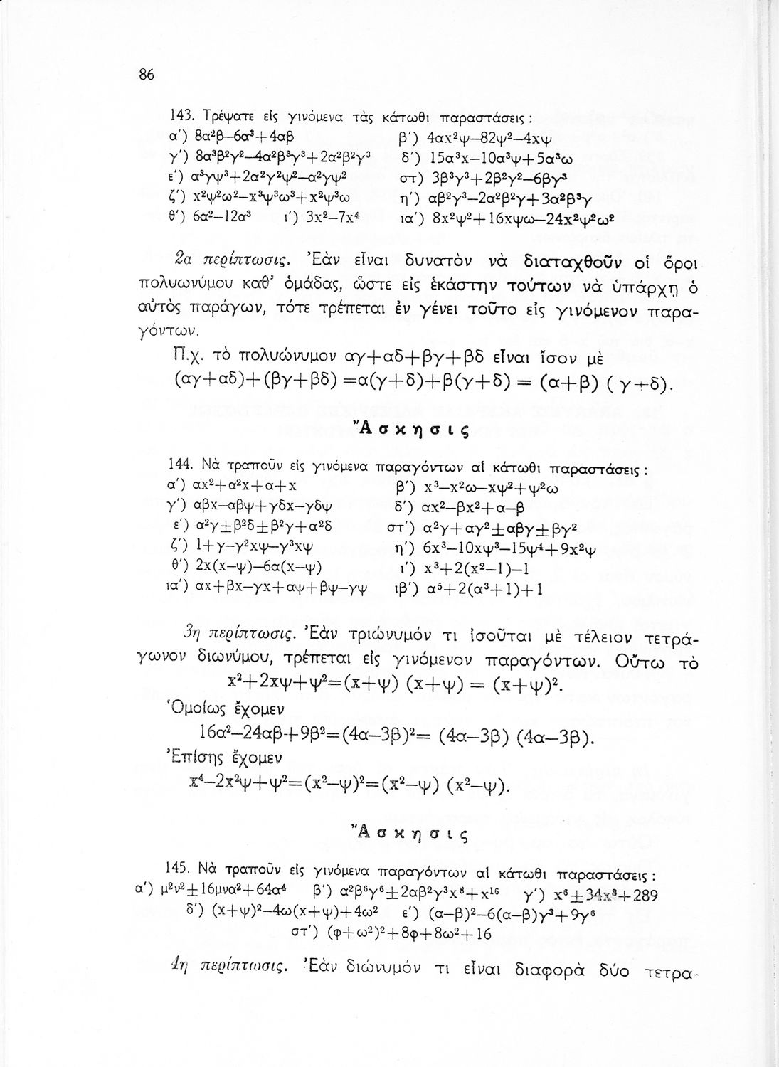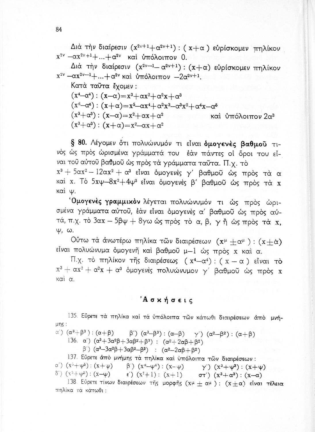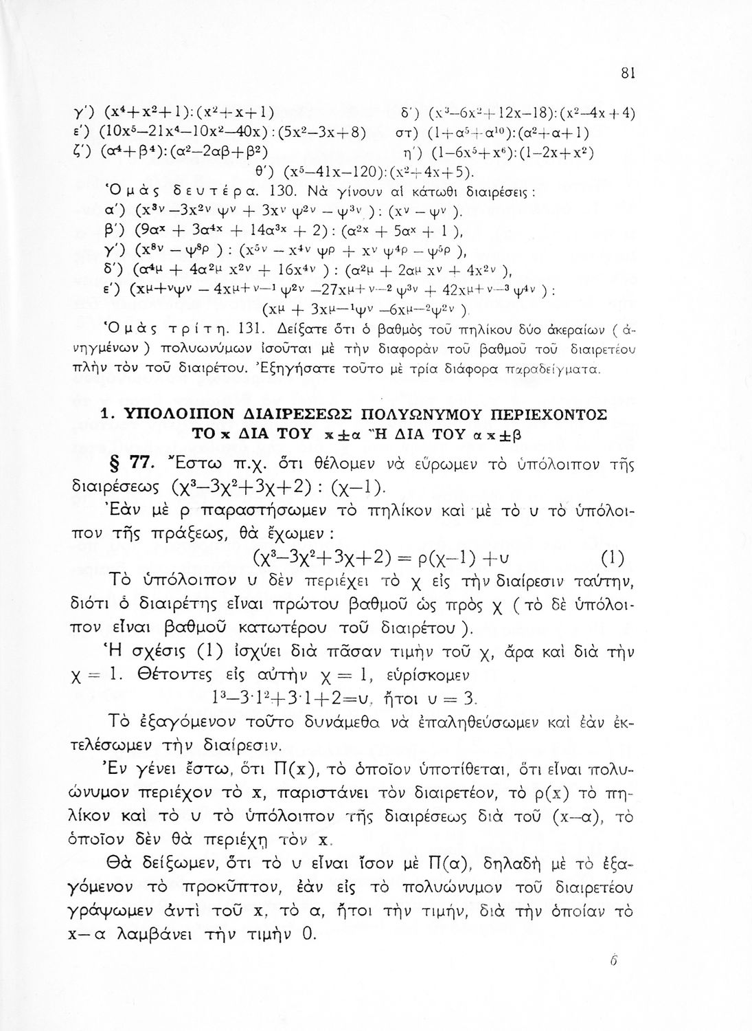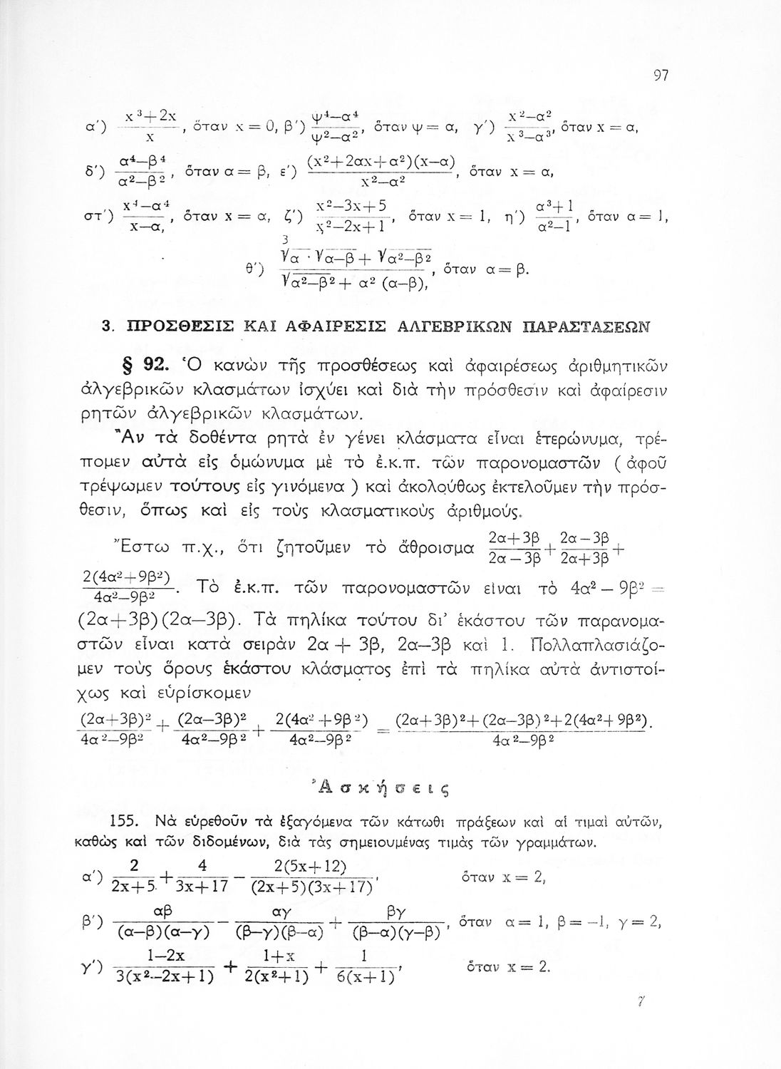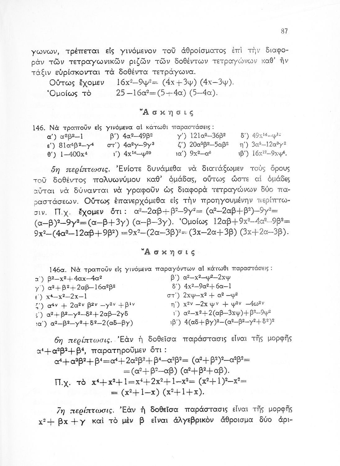 Άλγεβρα δια τας ανωτέρας τάξεις των Γυμνασίων