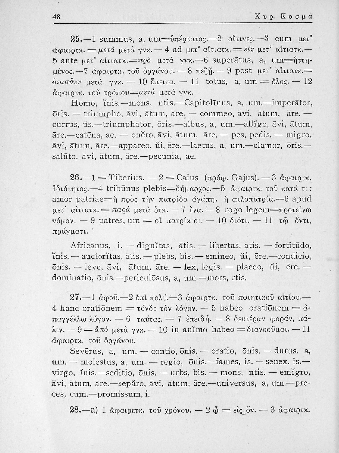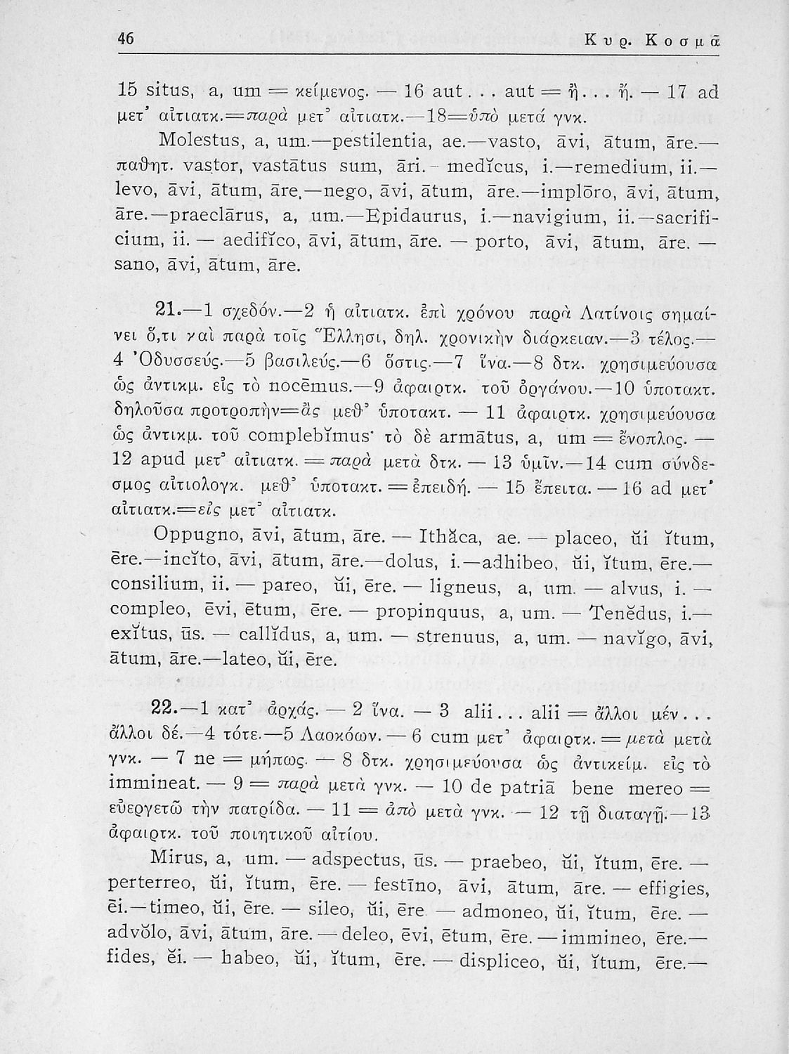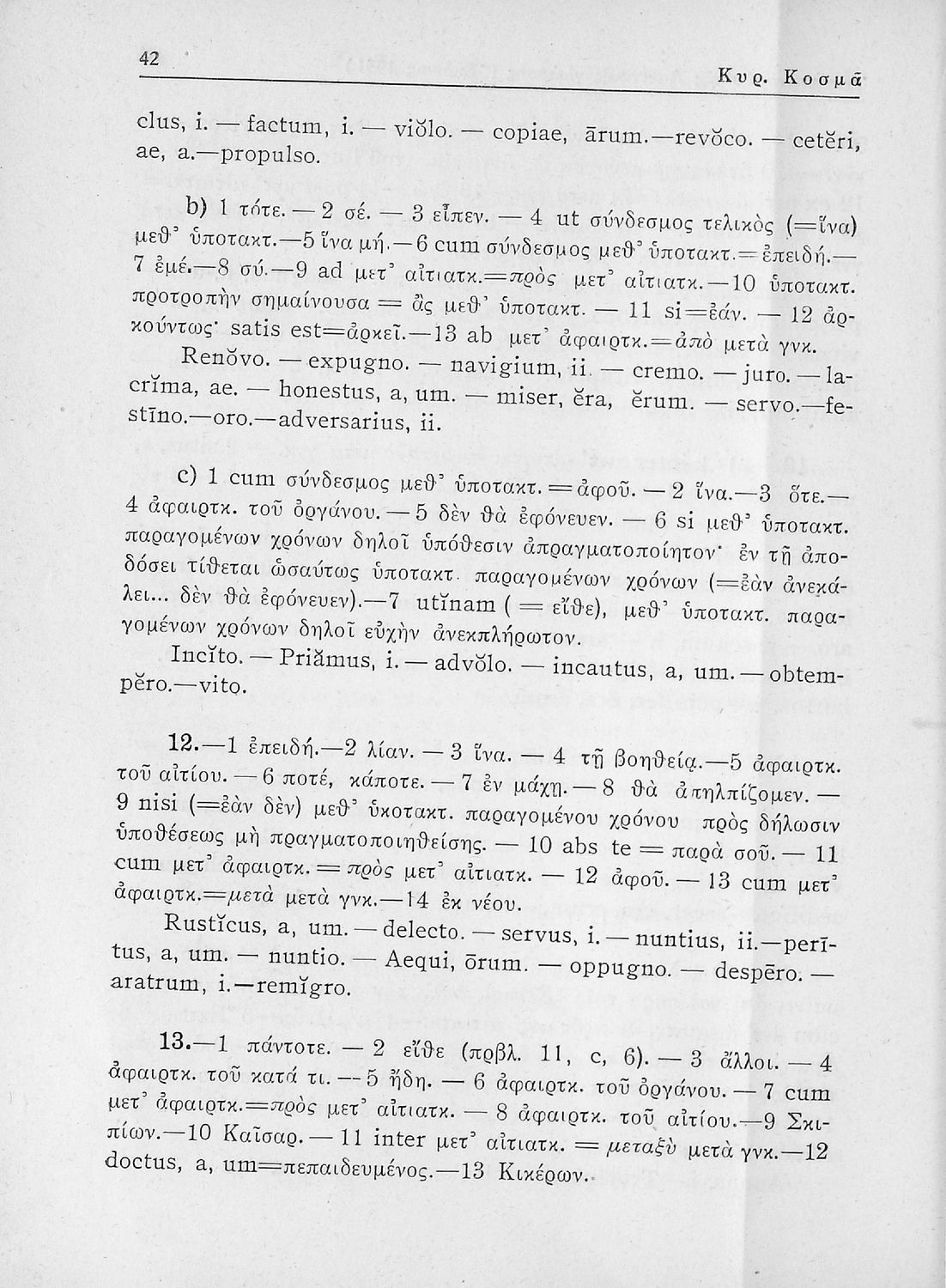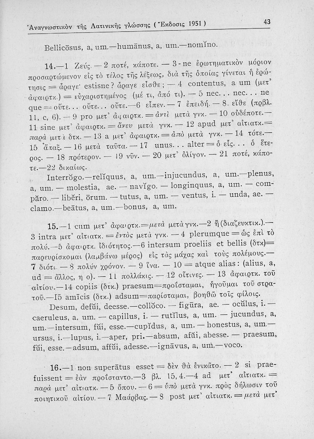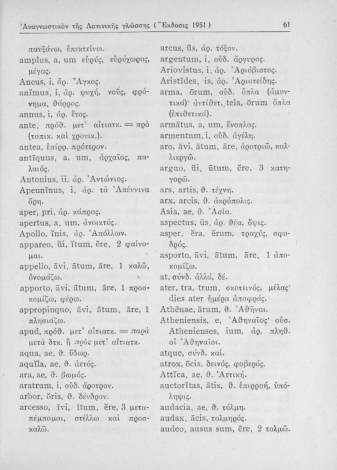 Σχολικό εγχειρίδιο Λατινικών για τη Γ΄ Γυμνασίου που περιέχει 54 κείμενα/περικοπές στα λατινικά, ερμηνευτικά υπομνήματα, λεξιλόγιο και κατάλογο με τα συντακτικά φαινόμενα (αφαιρετική, προθέσεις, σύνδεσμοι) που