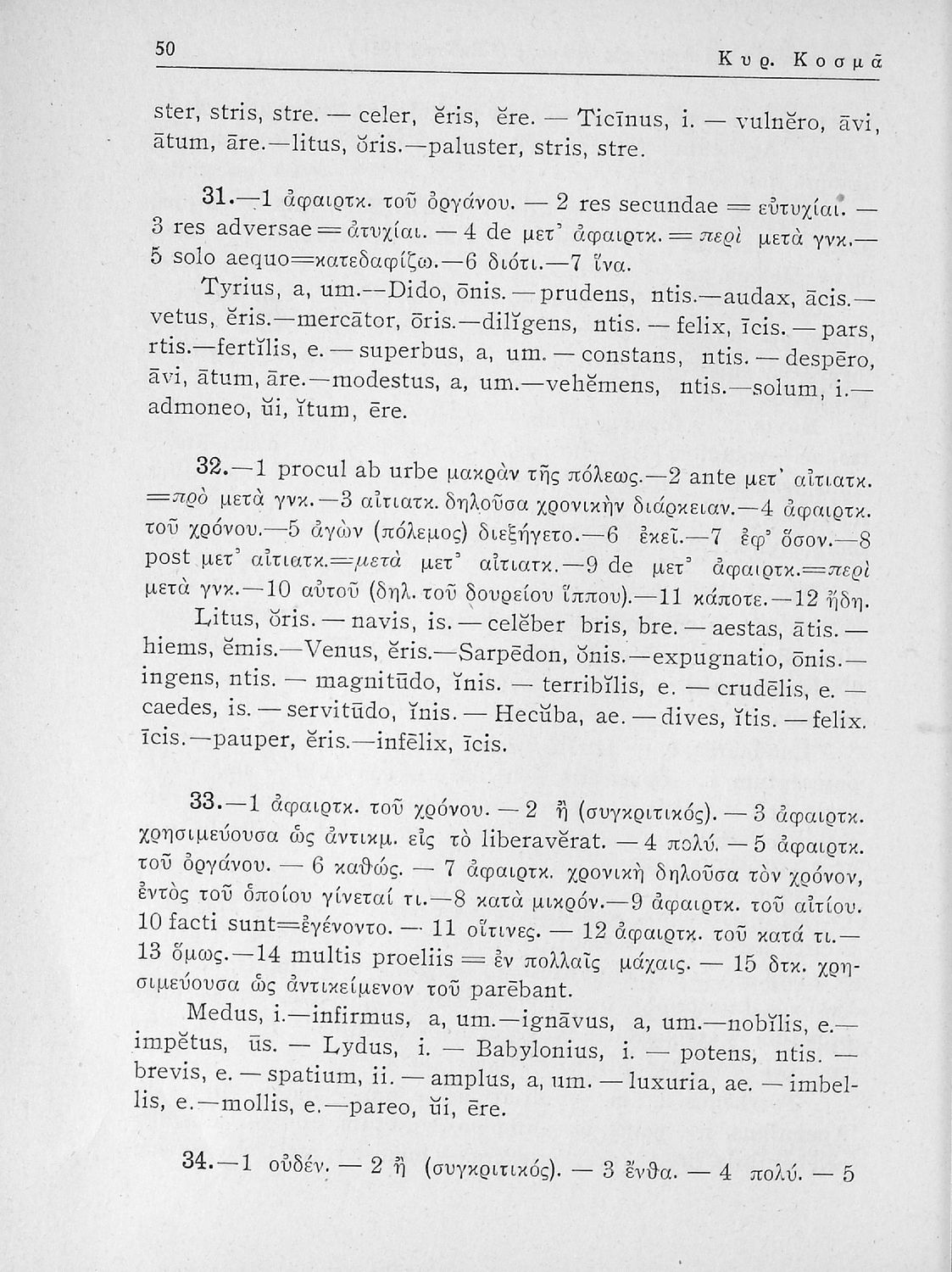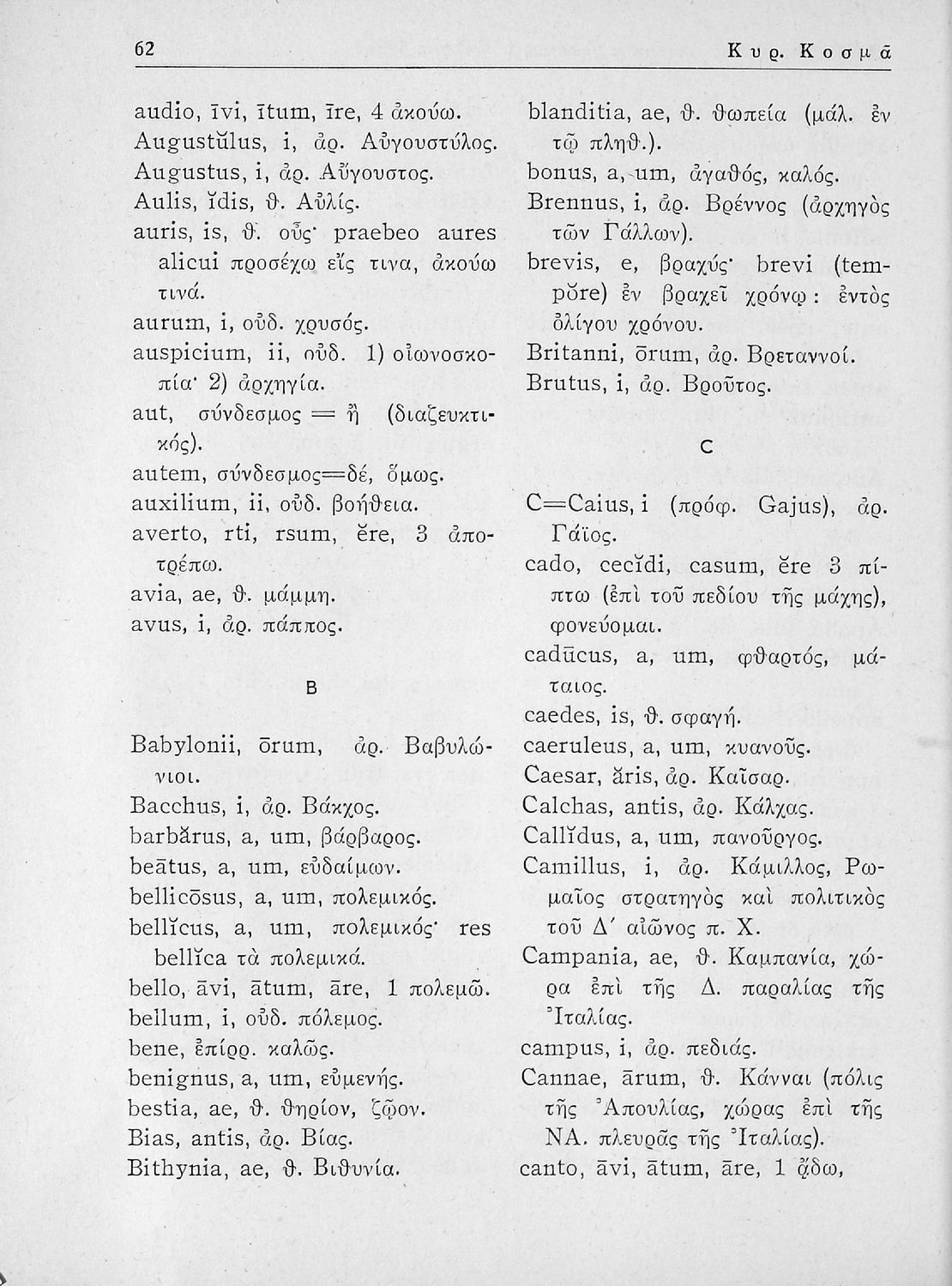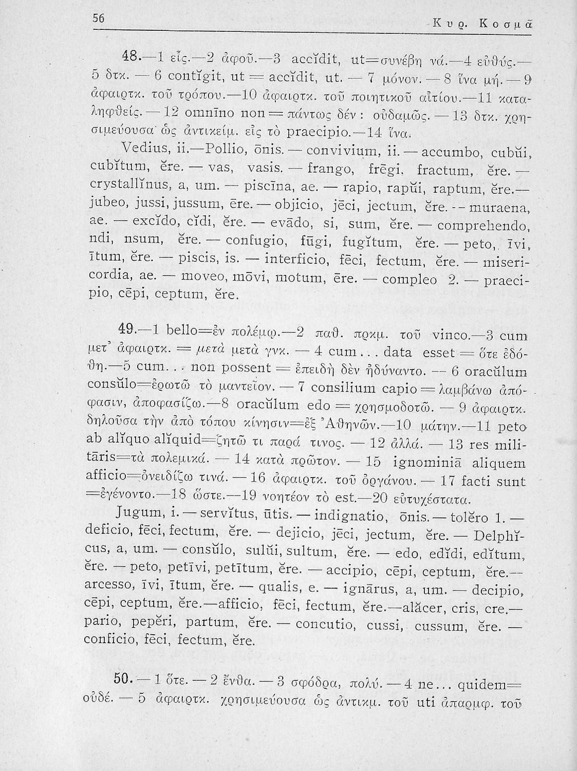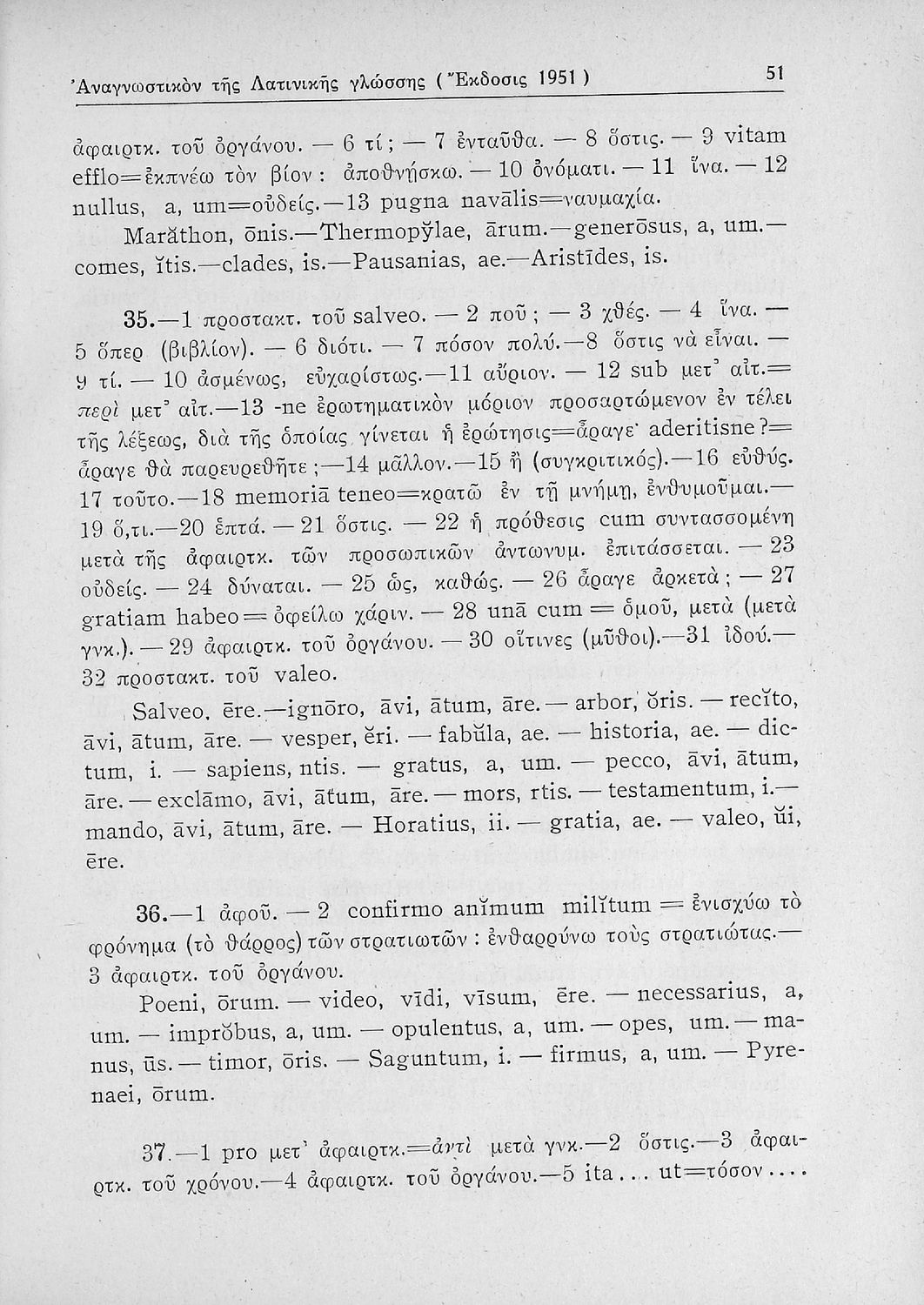 Σχολικό εγχειρίδιο Λατινικών για τη Γ΄ Γυμνασίου που περιέχει 54 κείμενα/περικοπές στα λατινικά, ερμηνευτικά υπομνήματα, λεξιλόγιο και κατάλογο με τα συντακτικά φαινόμενα (αφαιρετική, προθέσεις, σύνδεσμοι) που