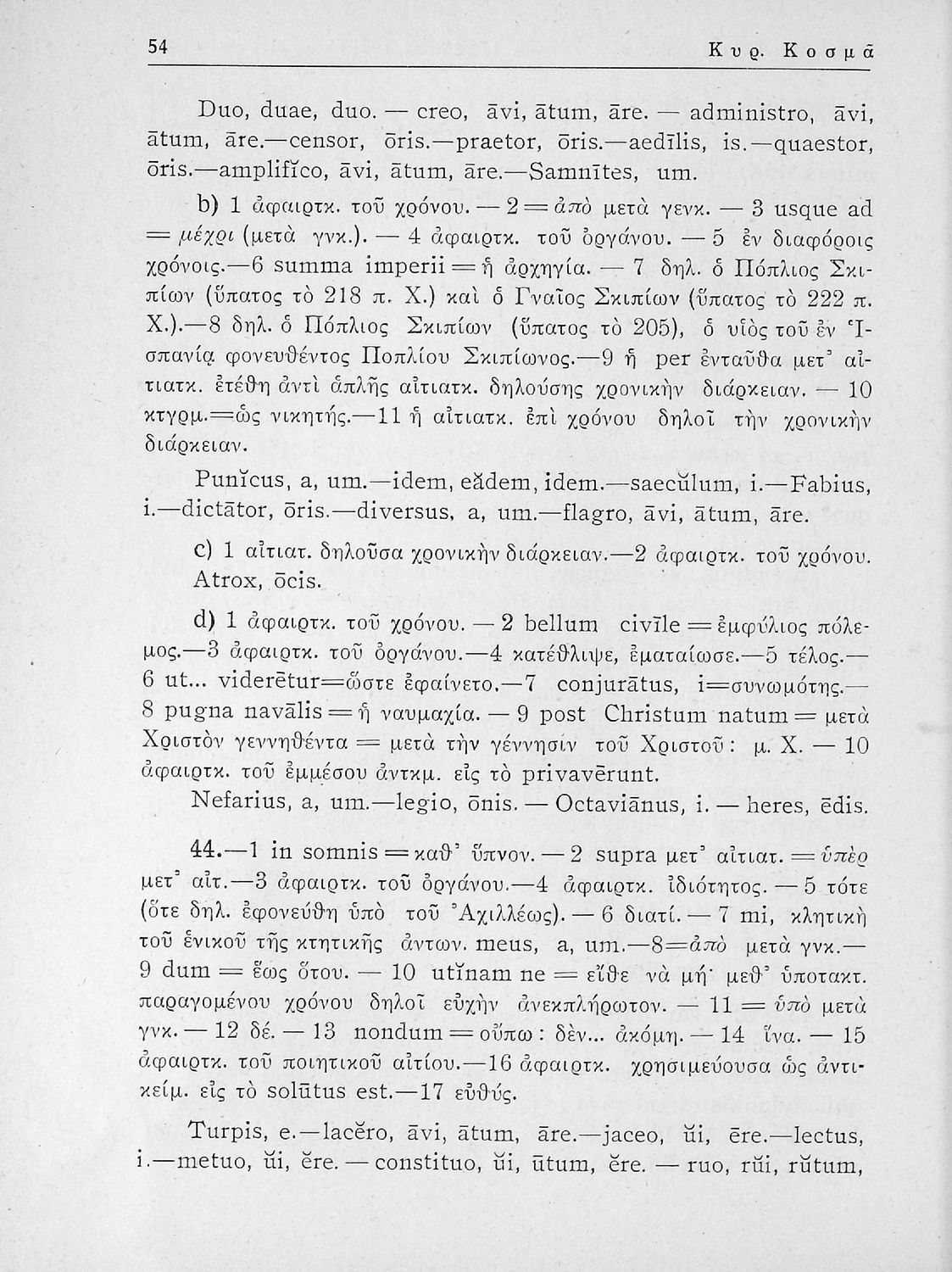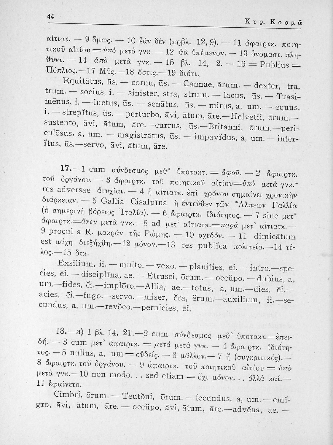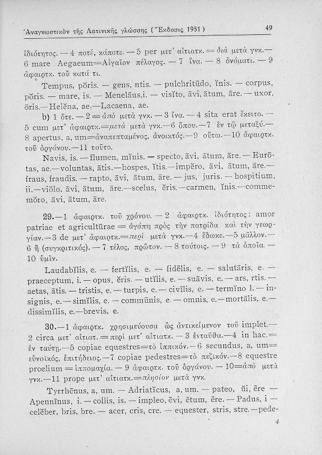 Σχολικό εγχειρίδιο Λατινικών για τη Δ΄ Γυμνασίου νέου τύπου και τη Γ΄ Γυμνασίου παλαιού τύπου που περιέχει 54 κείμενα/περικοπές στα λατινικά, ερμηνευτικά υπομνήματα και λεξιλόγιο κατάλογο με τα συντακτικά ...