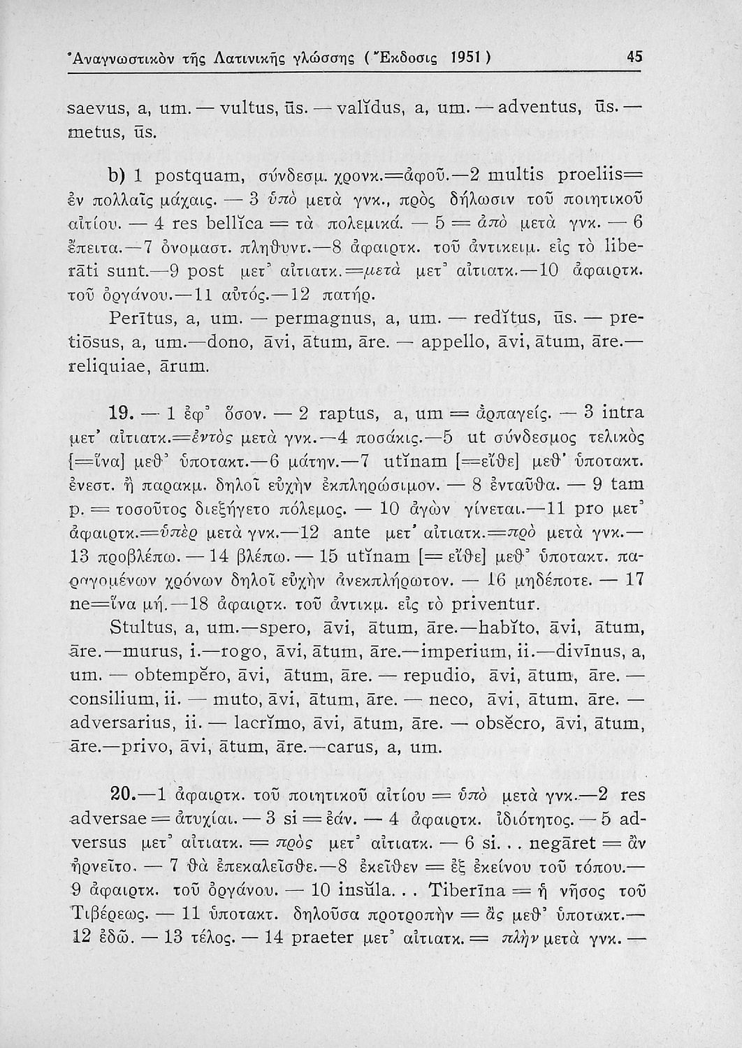 Αναγνωστικό Λατινικών για τη Γ΄ Γυμνασίου που περιέχει 54 κείμενα/περικοπές στα λατινικά, ερμηνευτικά υπομνήματα, λεξιλόγιο και κατάλογο με τα συντακτικά φαινόμενα (αφαιρετική, προθέσεις, σύνδεσμοι) που ...