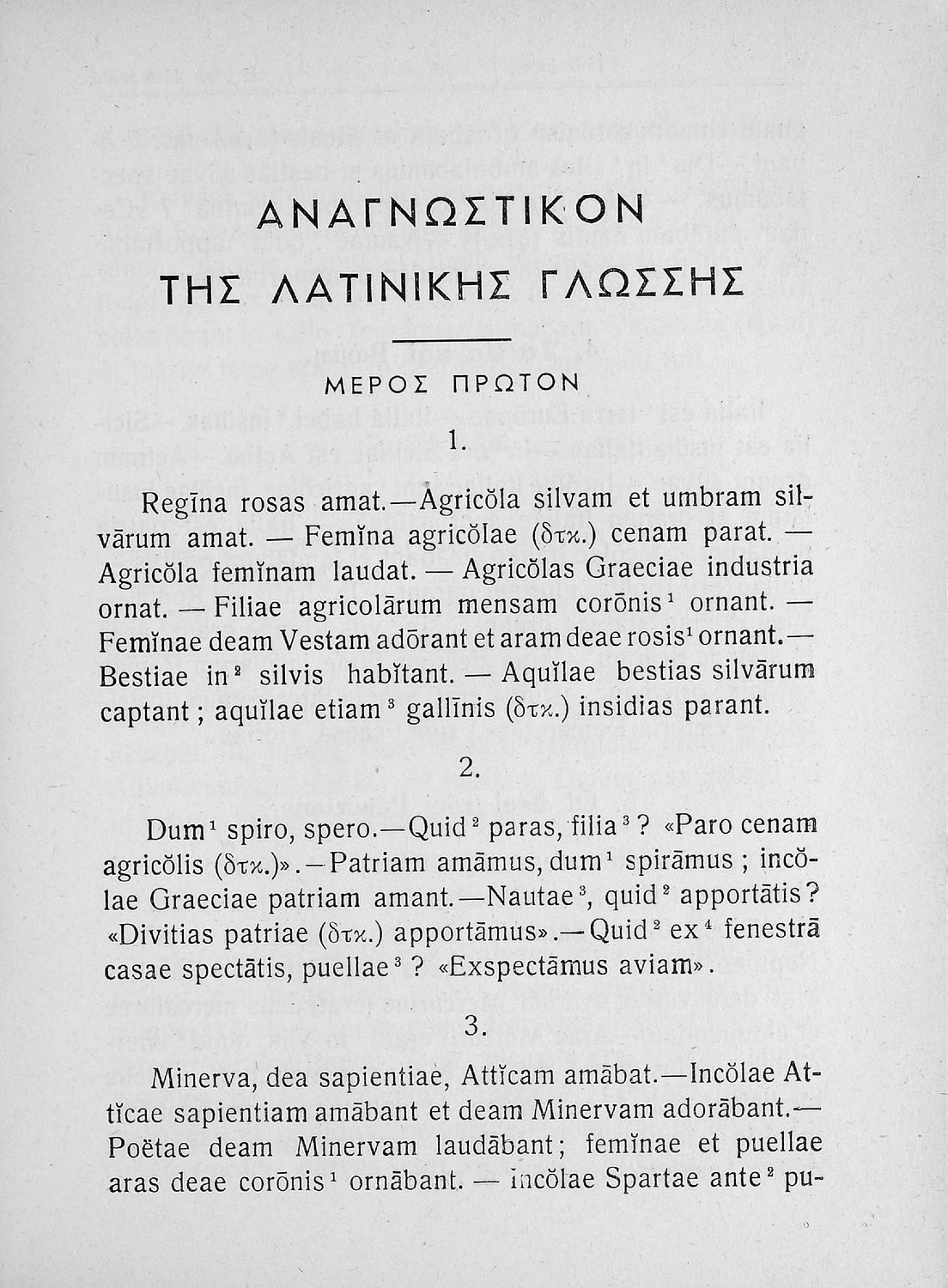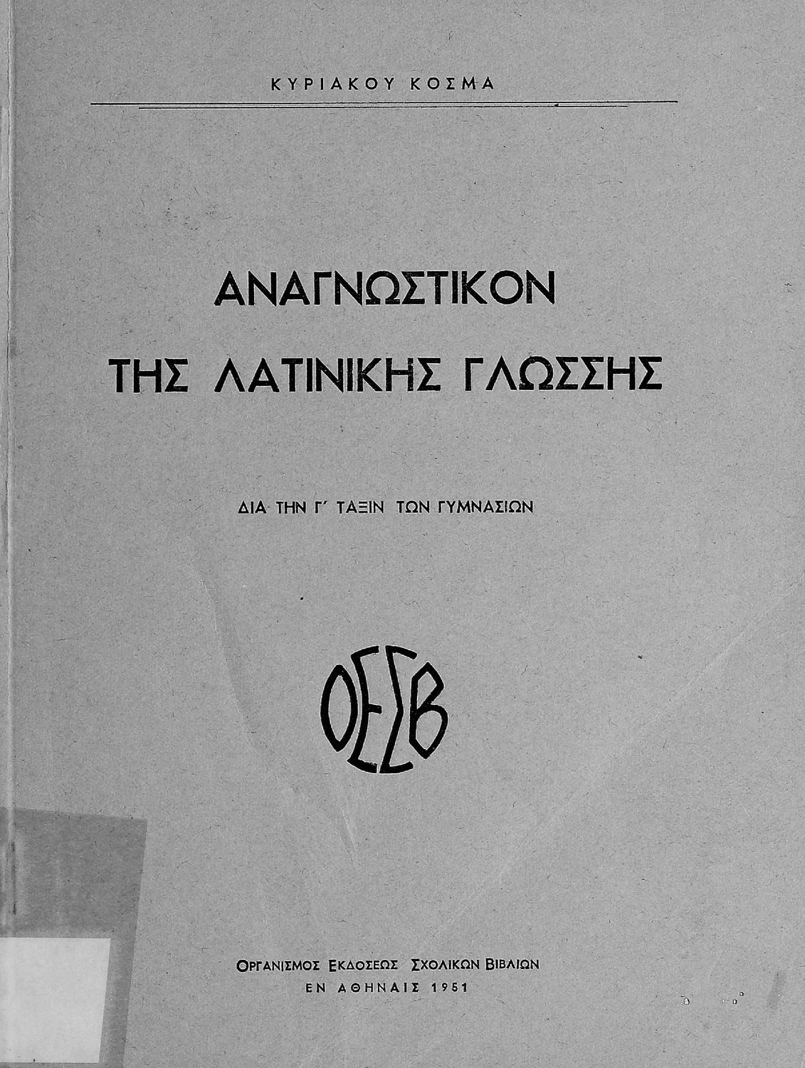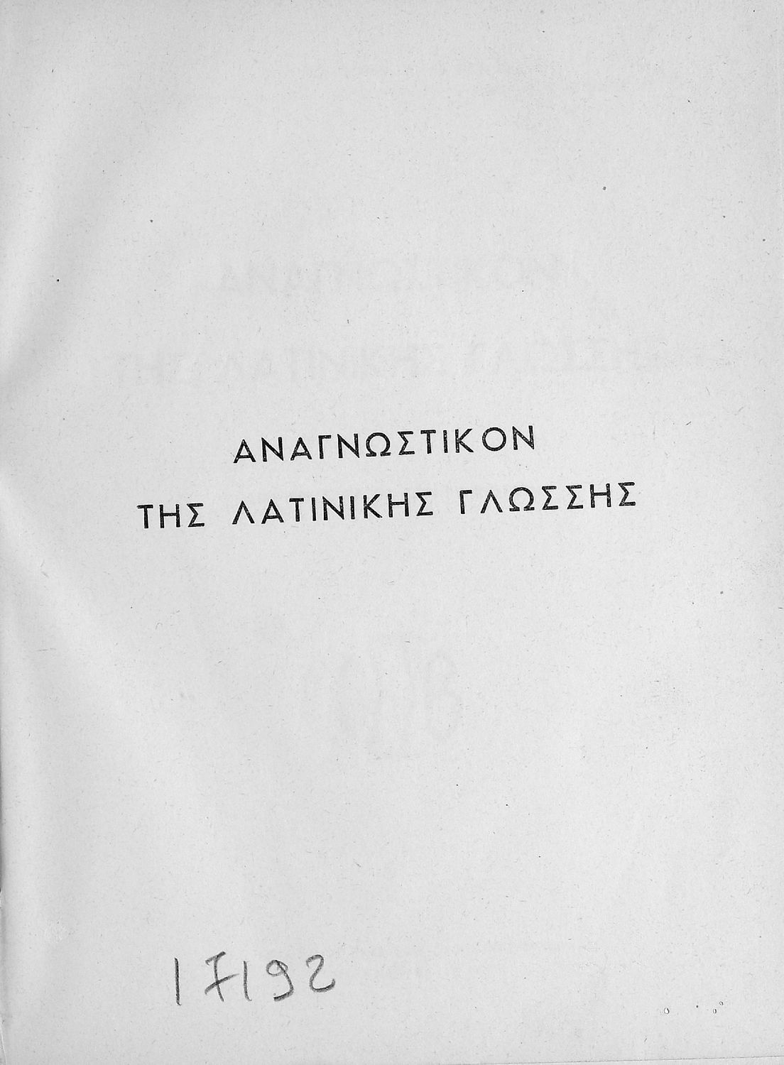 Τίτλος: Αναγνωστικόν της λατινικής γλώσσης δια την Γ΄ τάξιν των Γυμνασίων