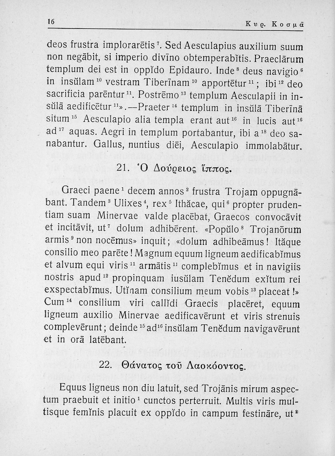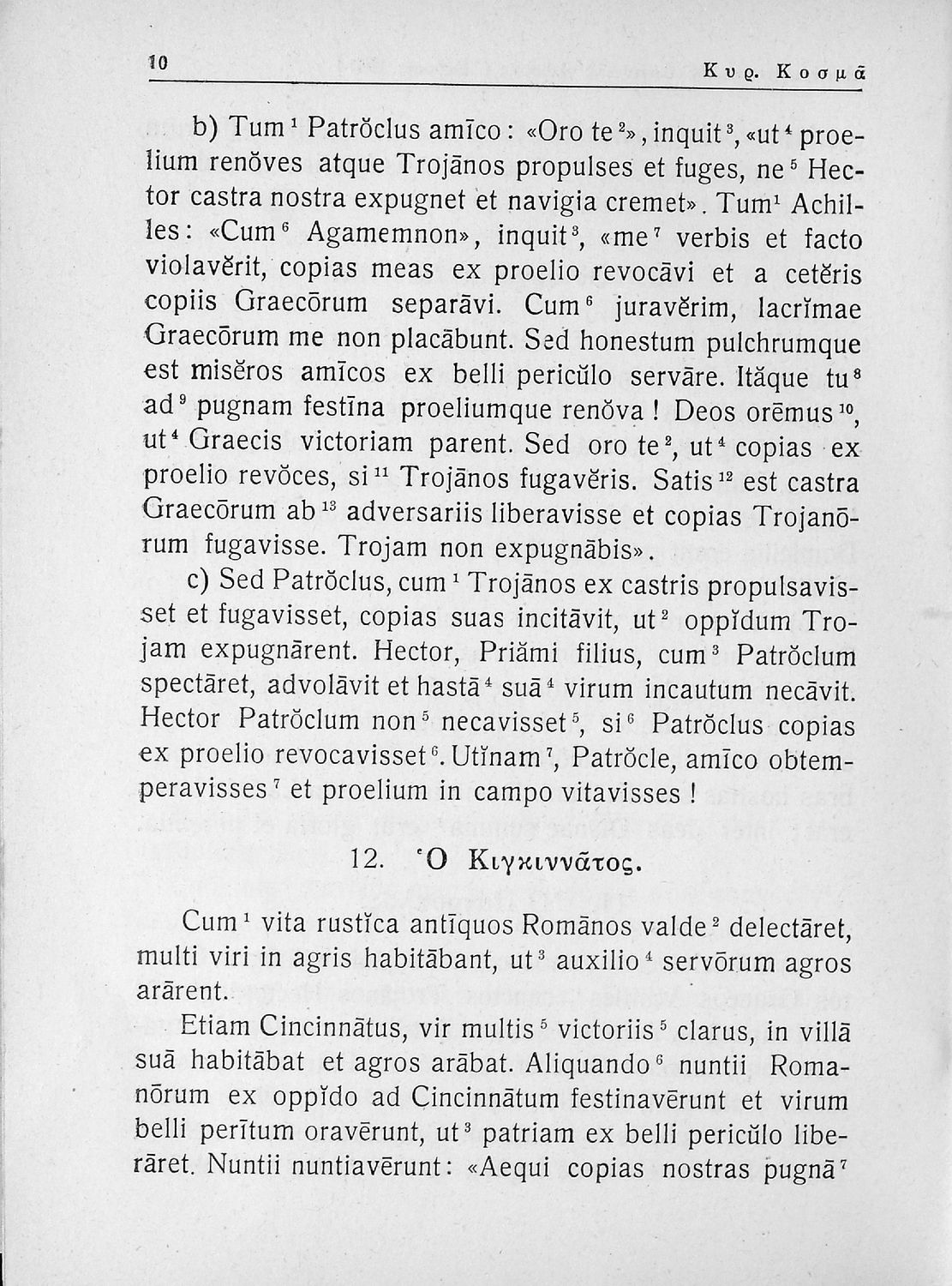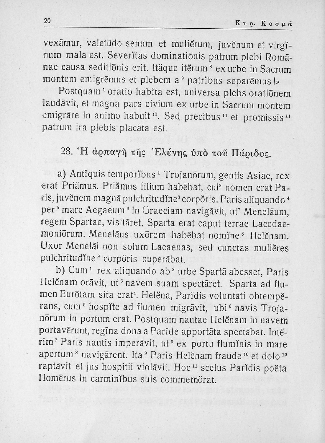 Σχολικό εγχειρίδιο Λατινικών για τη Γ΄ Γυμνασίου που περιέχει 54 κείμενα/περικοπές στα λατινικά, ερμηνευτικά υπομνήματα, λεξιλόγιο και κατάλογο με τα συντακτικά φαινόμενα (αφαιρετική, προθέσεις, σύνδεσμοι) που