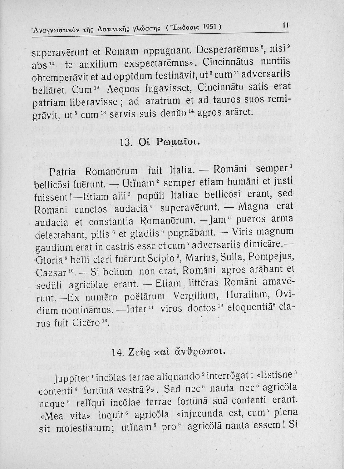 Αναγνωστικό Λατινικών για τη Γ΄ Γυμνασίου που περιέχει 54 κείμενα/περικοπές στα λατινικά, ερμηνευτικά υπομνήματα, λεξιλόγιο και κατάλογο με τα συντακτικά φαινόμενα (αφαιρετική, προθέσεις, σύνδεσμοι) που ...