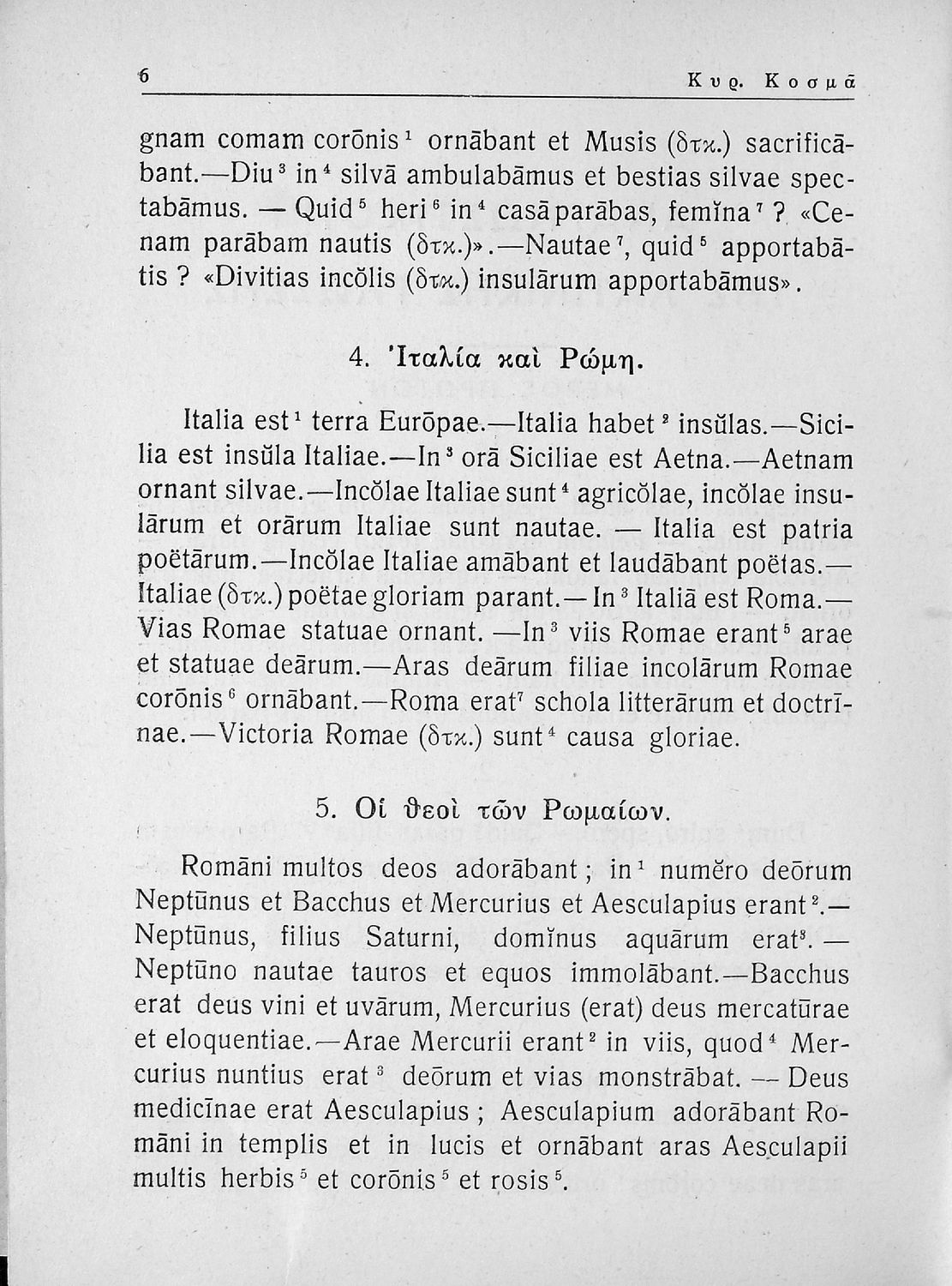 Σχολικό εγχειρίδιο Λατινικών Δ΄ Γυμνασίου που περιέχει 54 κείμενα/περικοπές για τη διδασκαλία της γραμματικής, ερμηνευτικά υπομνήματα, λεξιλόγιο και κατάλογο με τα συντακτικά φαινόμενα (αφαιρετική, προθέσεις, ...