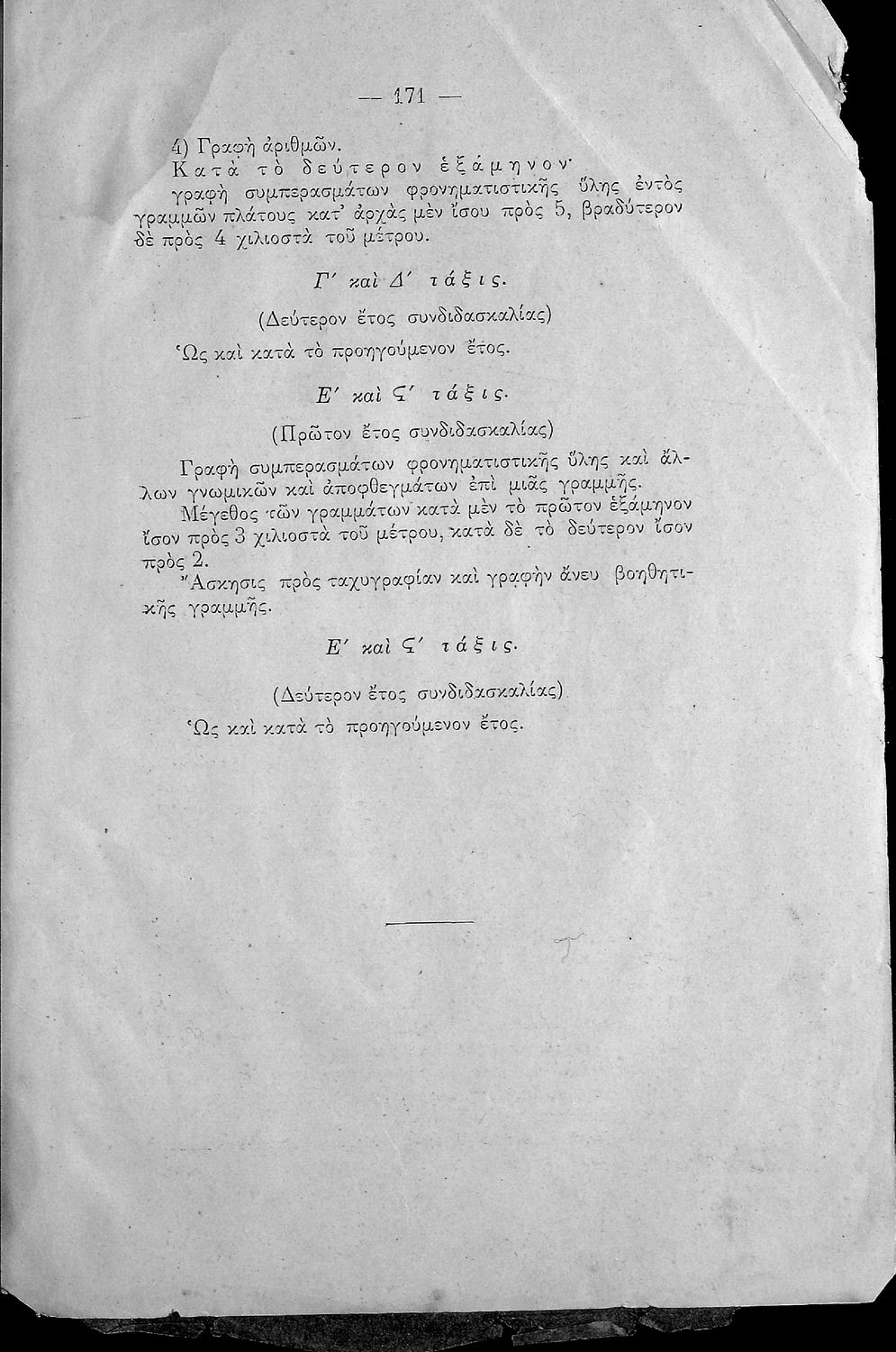 Αναλυτικό πρόγραμμα για την Πρωτοβάθμια Εκπαίδευση που αναφέρεται σε πολυτάξια δημοτικά, διτάξια και μονοτάξια Δημοτικά Σχολεία αρρένων και θηλέων.