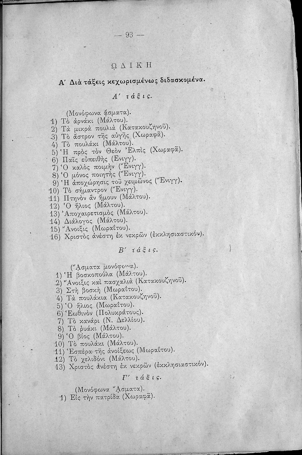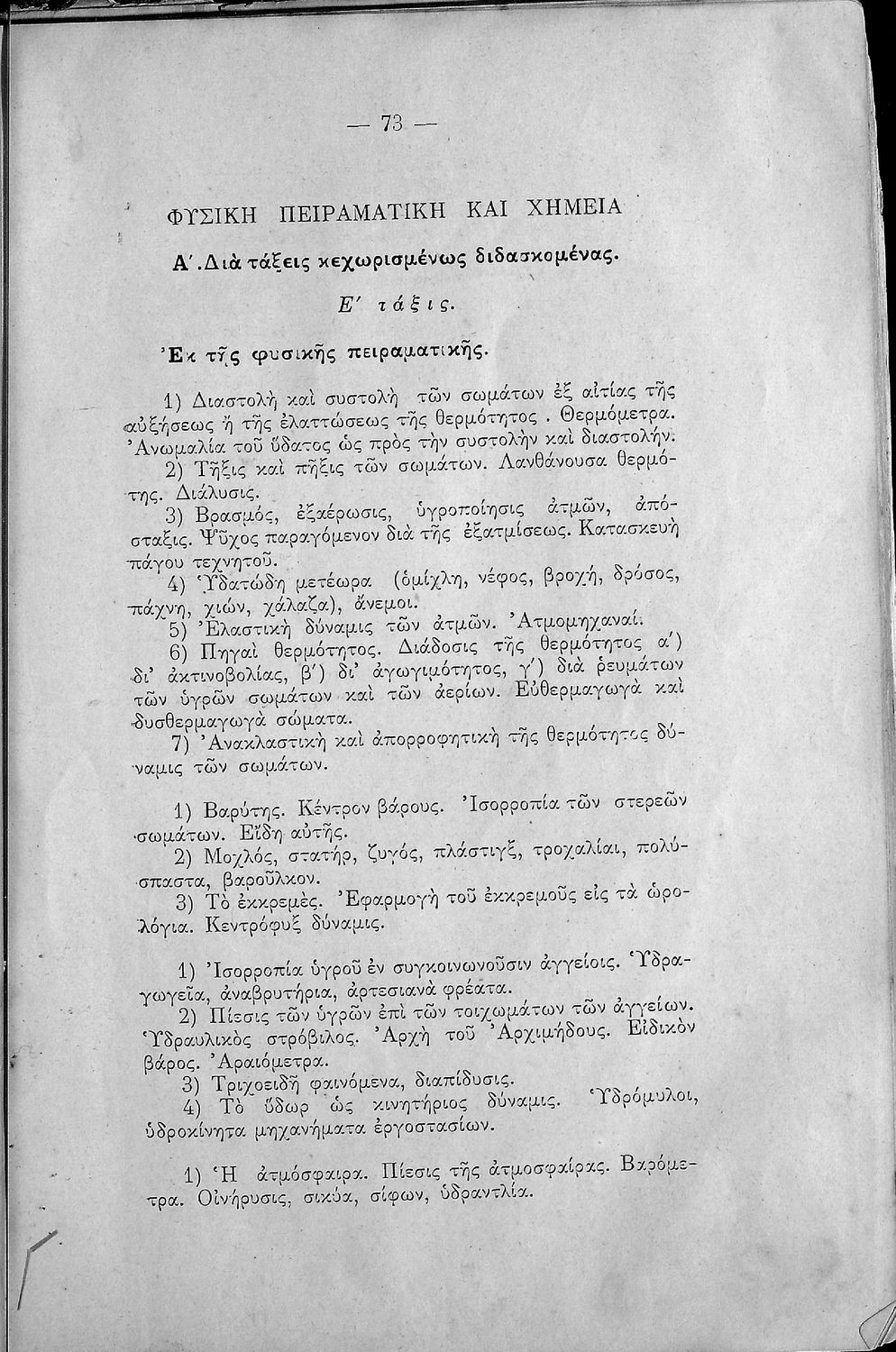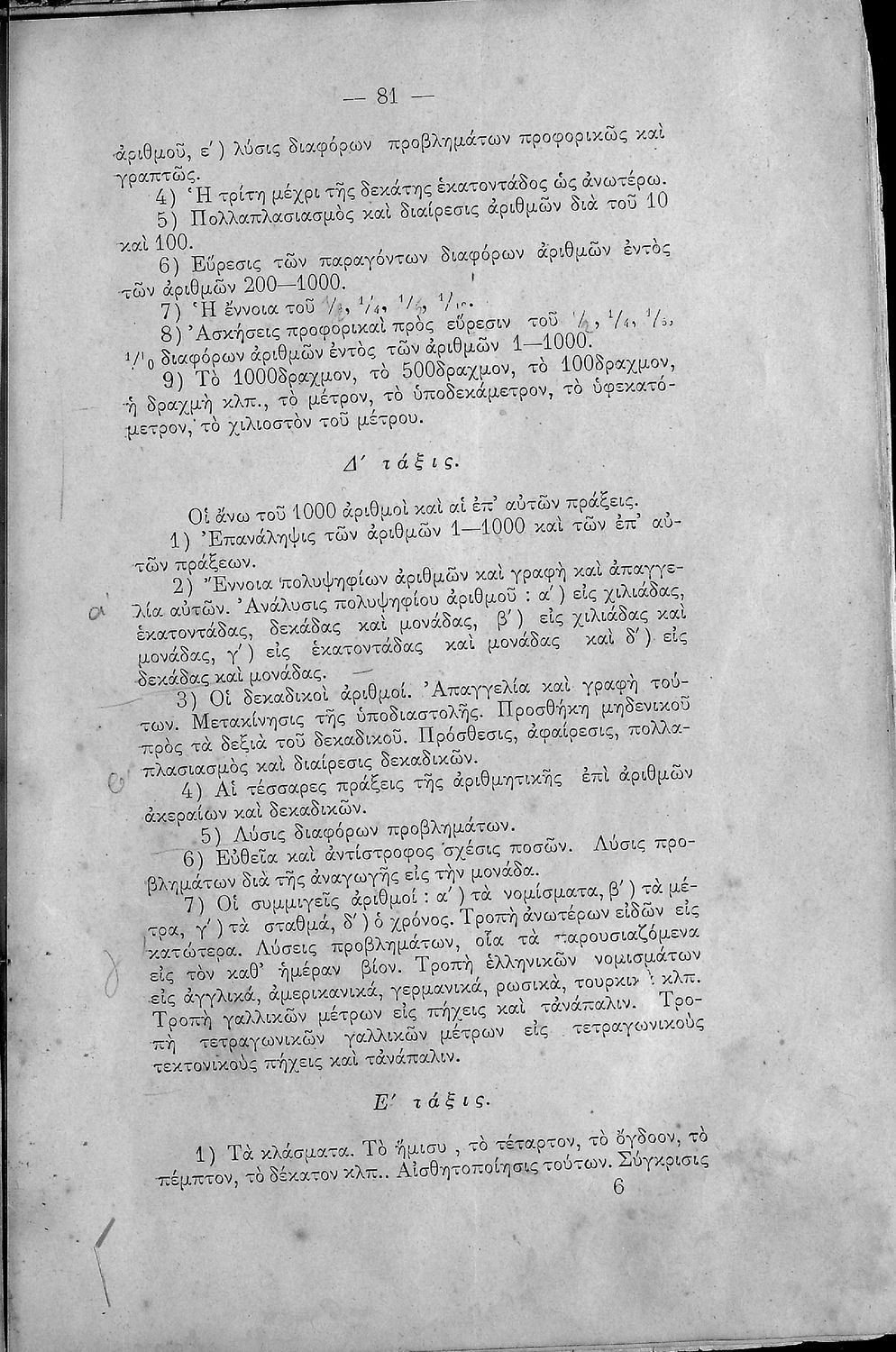 Αναλυτικό πρόγραμμα για την Πρωτοβάθμια Εκπαίδευση που αναφέρεται σε πολυτάξια δημοτικά, διτάξια και μονοτάξια Δημοτικά Σχολεία αρρένων και θηλέων.