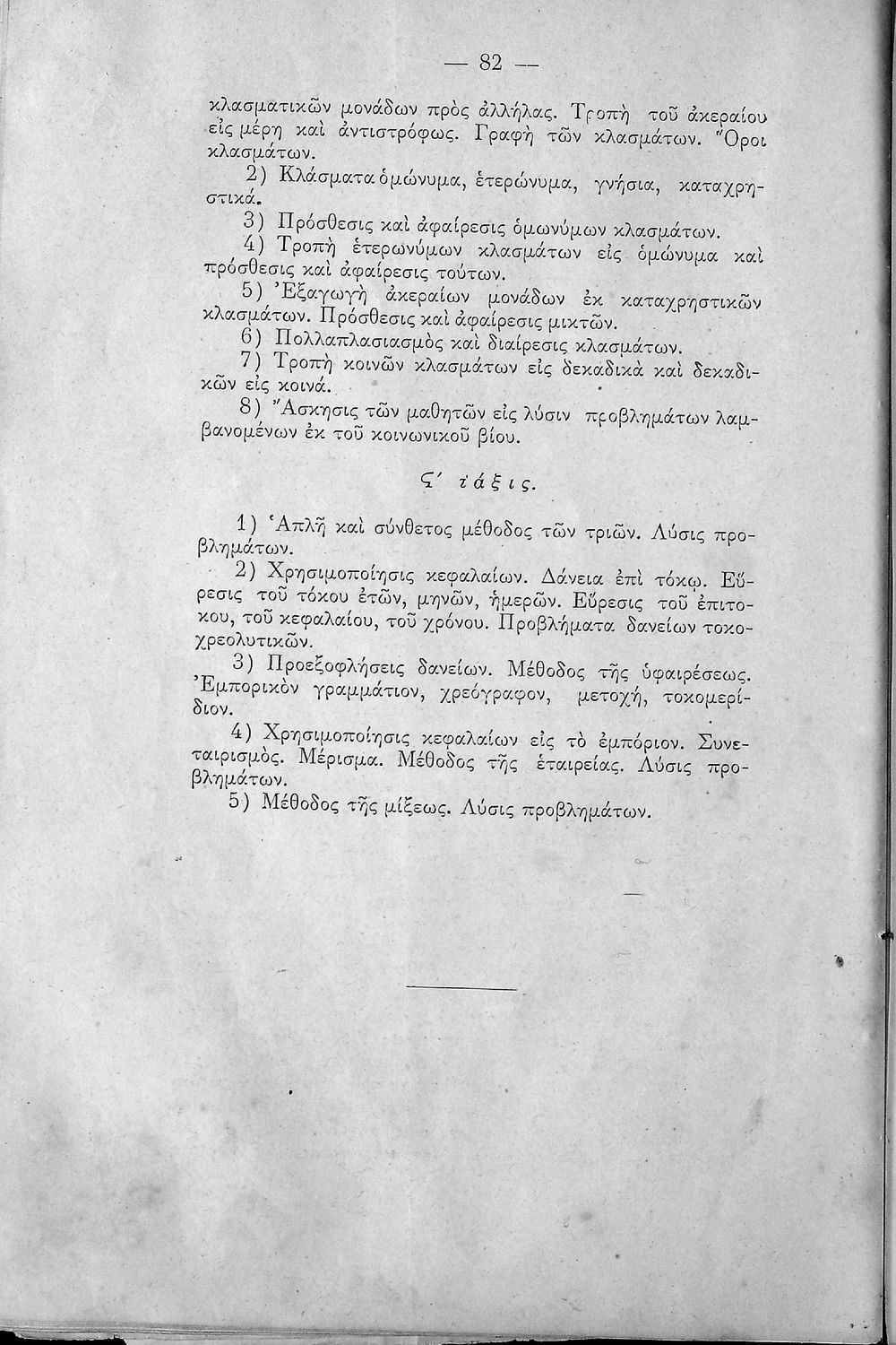 Έκδοση του Υπουργείου Εθνικής Οικονομίας που περιλαμβάνει το αναλυτικό πρόγραμμα των μαθημάτων που διδάσκονταν στις μεσαίες τάξεις των εμπορικών σχολών.