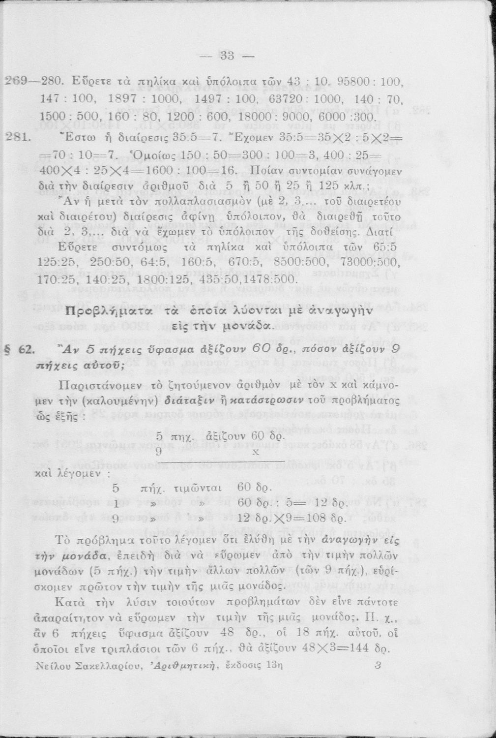 Σχολικό εγχειρίδιο Αριθμητικής για τα Ημιγυμνάσια και Γυμνάσια χωρισμένο σε θεωρία και ασκήσεις. Περιλαμβάνει και στοιχεία λογιστικής και καταστιχογραφίας. Ο συγγραφέας ήταν καθηγητής στο Πανεπιστήμιο Αθηνών.