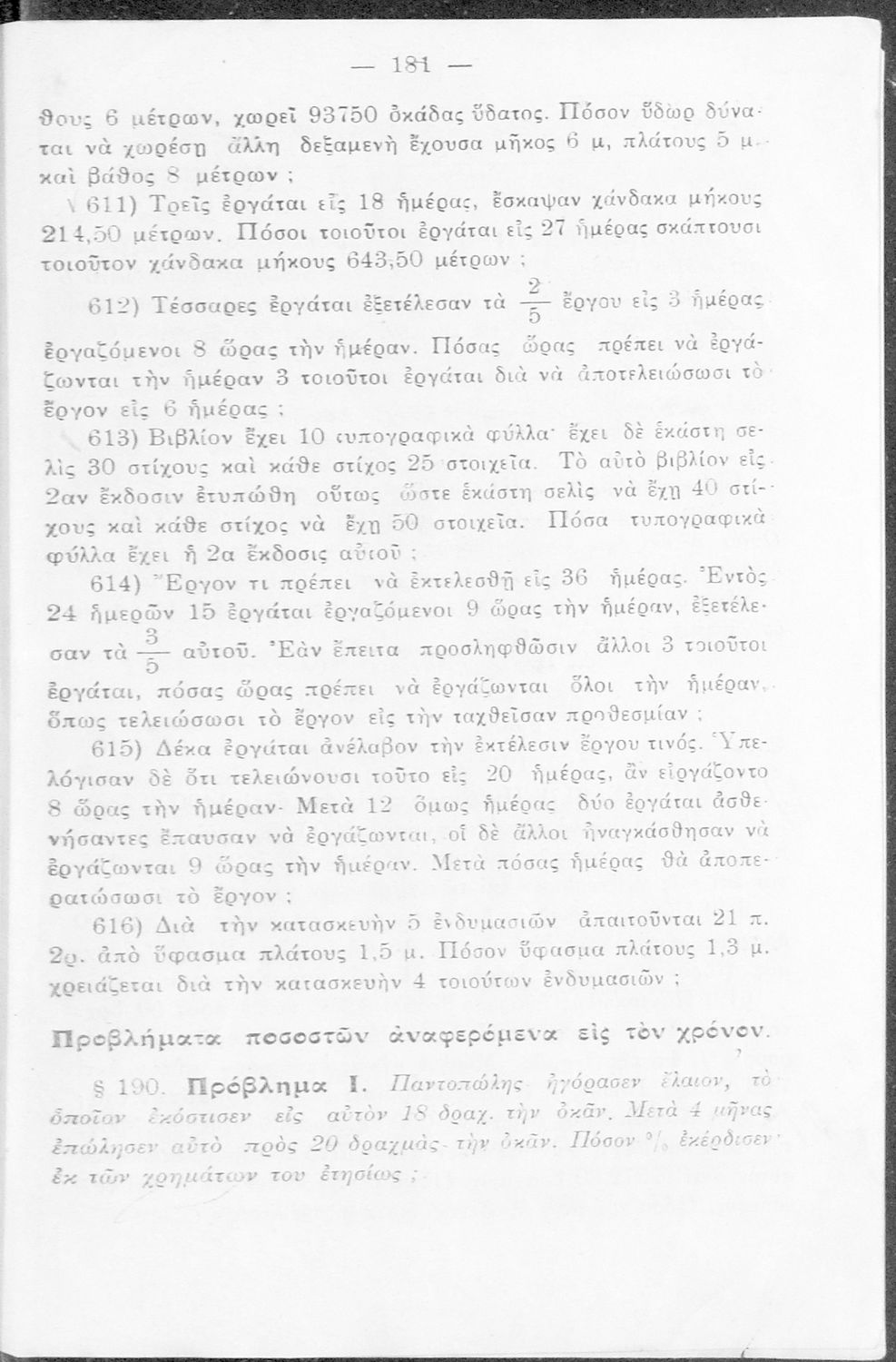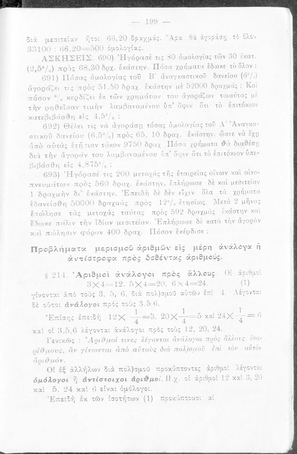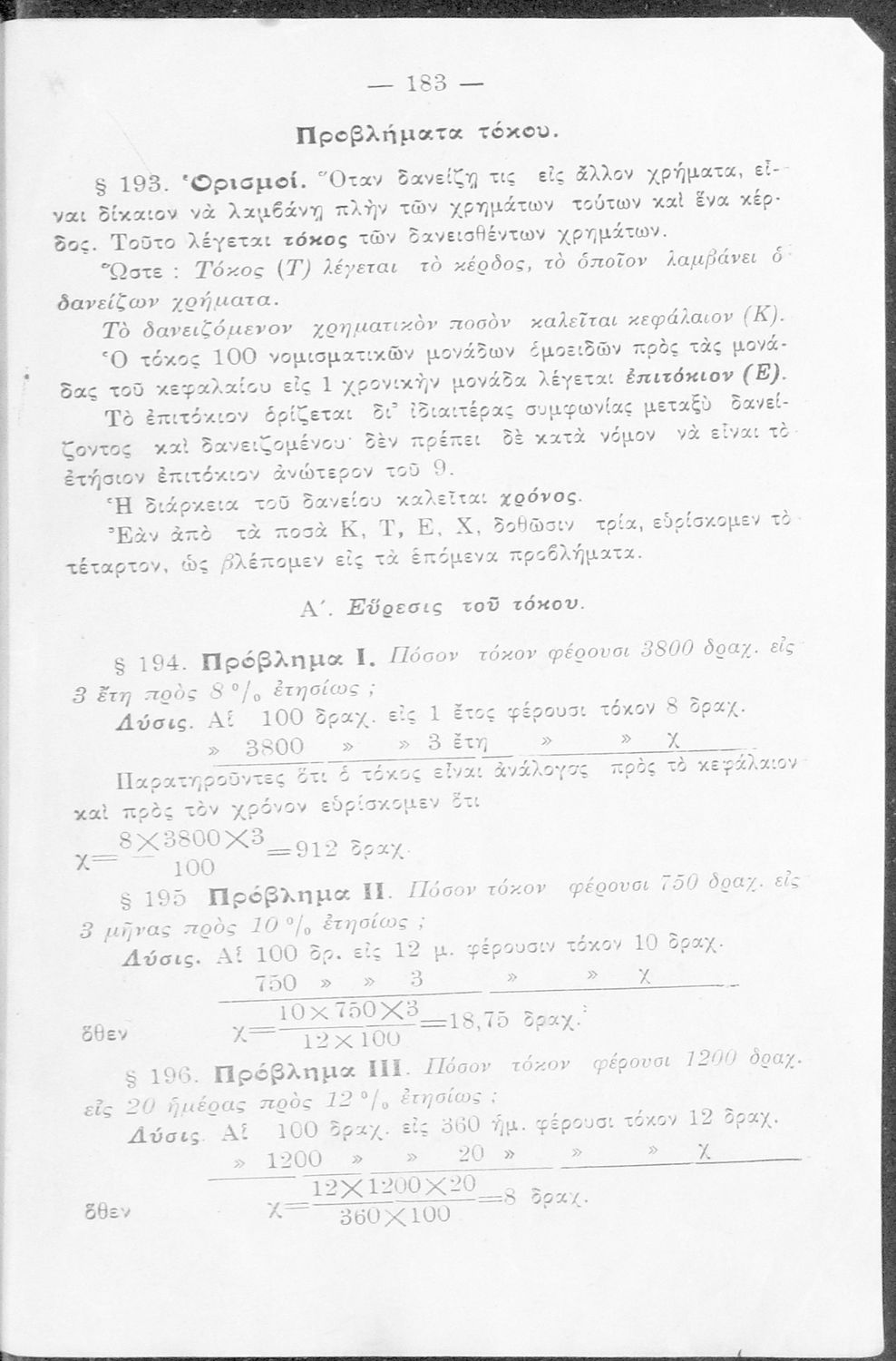Σχολικό εγχειρίδιο Αριθμητικής για τις Α΄, Β΄, Γ΄ Γυμνασίου και τα Ανώτερα Παρθεναγωγεία που είναι χωρισμένο σε θεωρία και ασκήσεις και εστιάζει στις αριθμητικές πράξεις με κλάσματα και ακέραιους και συμμιγείς