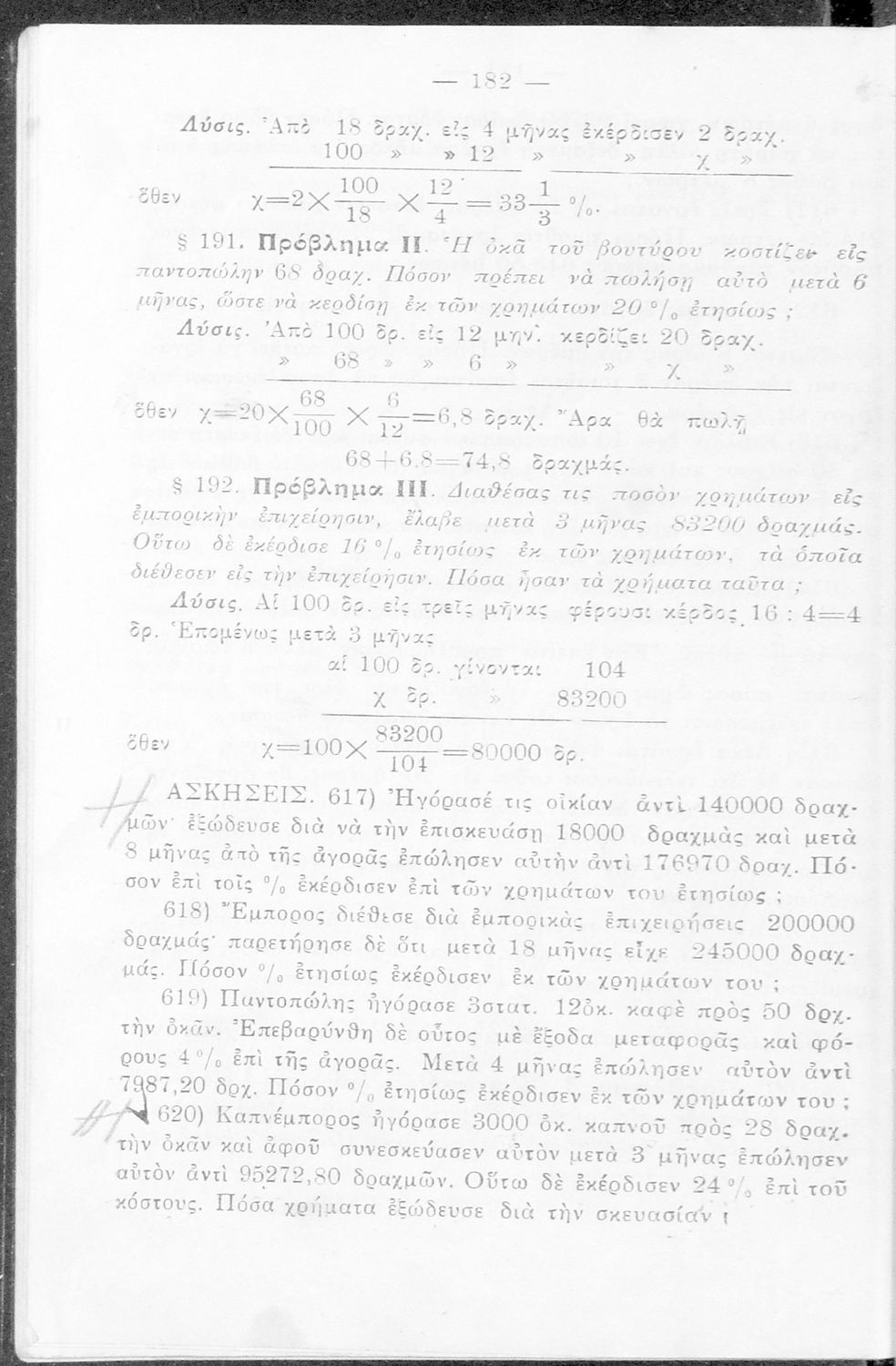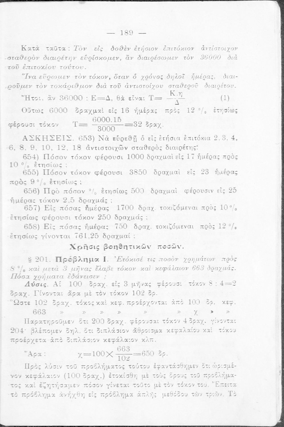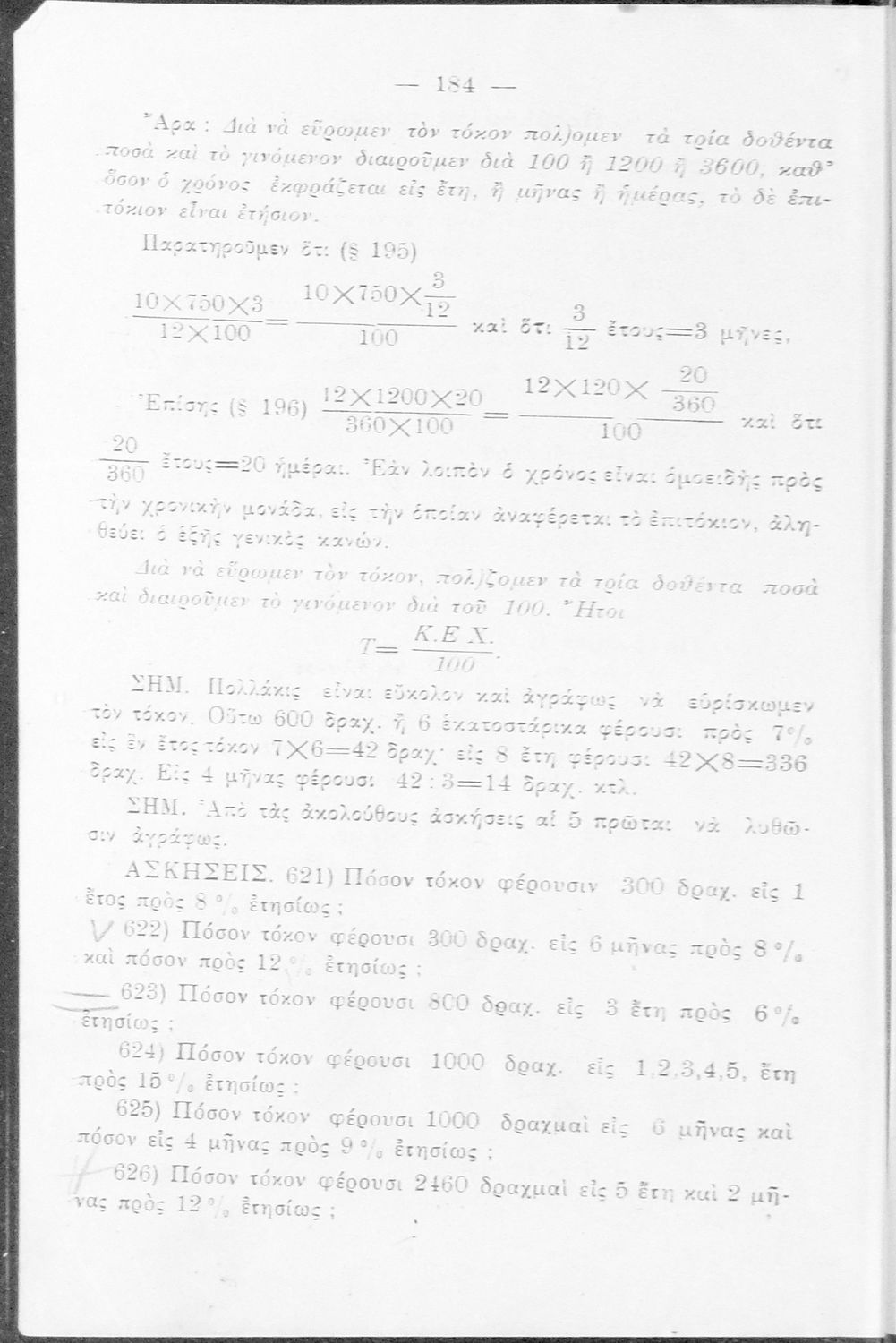 Σχολικό εγχειρίδιο Αριθμητικής για τις Α΄, Β΄, Γ΄ Γυμνασίου και τα Ανώτερα Παρθεναγωγεία που είναι χωρισμένο σε θεωρία και ασκήσεις και εστιάζει στις αριθμητικές πράξεις με κλάσματα και ακέραιους και συμμιγείς