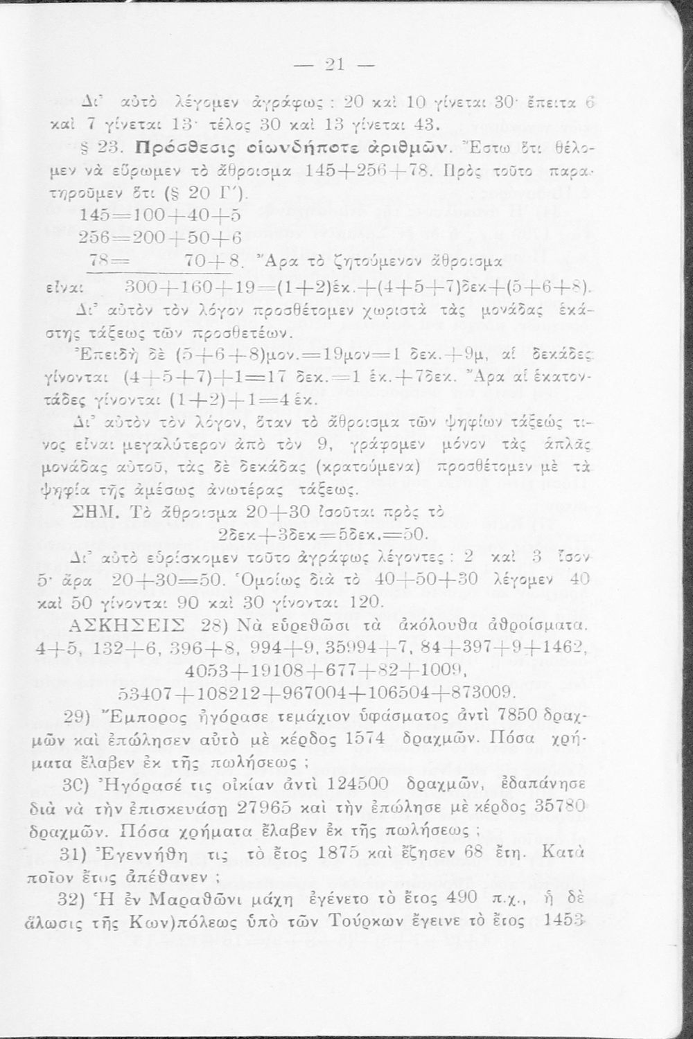 LDR 01430 2200217 4500 035 ## _a01-17195 040 ## _aΙνστιτούτο Εκπαιδευτικής Πολιτικής 041 ## _ael 100 ## _aΝικόλ. Δ. Νικολάου 110 ## _a17195 245 0# _aΑριθμητική συντεταγμένη κατά το τελευταίον πρόγραμμα προς χρήσιν των μαθητών της Α΄, Β΄, Γ΄ τάξεως των Γυμνασίων και Ημιγυμνασίων 250 ## _a4η Έκδοση 260 ## _aΑθήνα _bΔημ. Ν. Τζάκας, Στεφ. Δελαγραμμάτικας _c1937 300 ## _a216 _c20 520 ## _aΣχολικό εγχειρίδιο Αριθμητικής για τις Α΄, Β΄, Γ΄ Γυμνασίου που είναι χωρισμένο σε ορισμούς και ασκήσεις και εστιάζει στις ιδιότητες των αριθμητικών πράξεων, τα κλάσματα και την τετραγωνική ρίζα. 521 ## _aΑ' Γυμνασίου / Β' Γυμνασίου / Γ' Γυμνασίου 522 ## _aΕλλάδα 546 ## _aΑπλή καθαρεύουσα 563 ## _aΣκληρό Εξώφυλλο 583 ## _a41062/31-7-1933 _c1933 650 #4 _aΕπιτόκιο _aΙδιότητες των αριθμητικών πράξεων _aΚλάσματα _aΤετραγωνική ρίζα _aΤόκος
