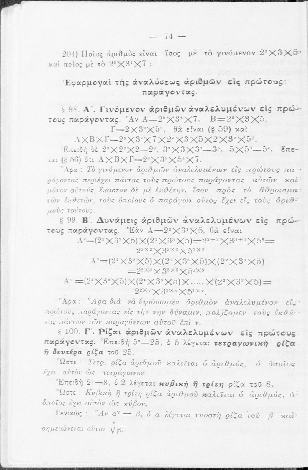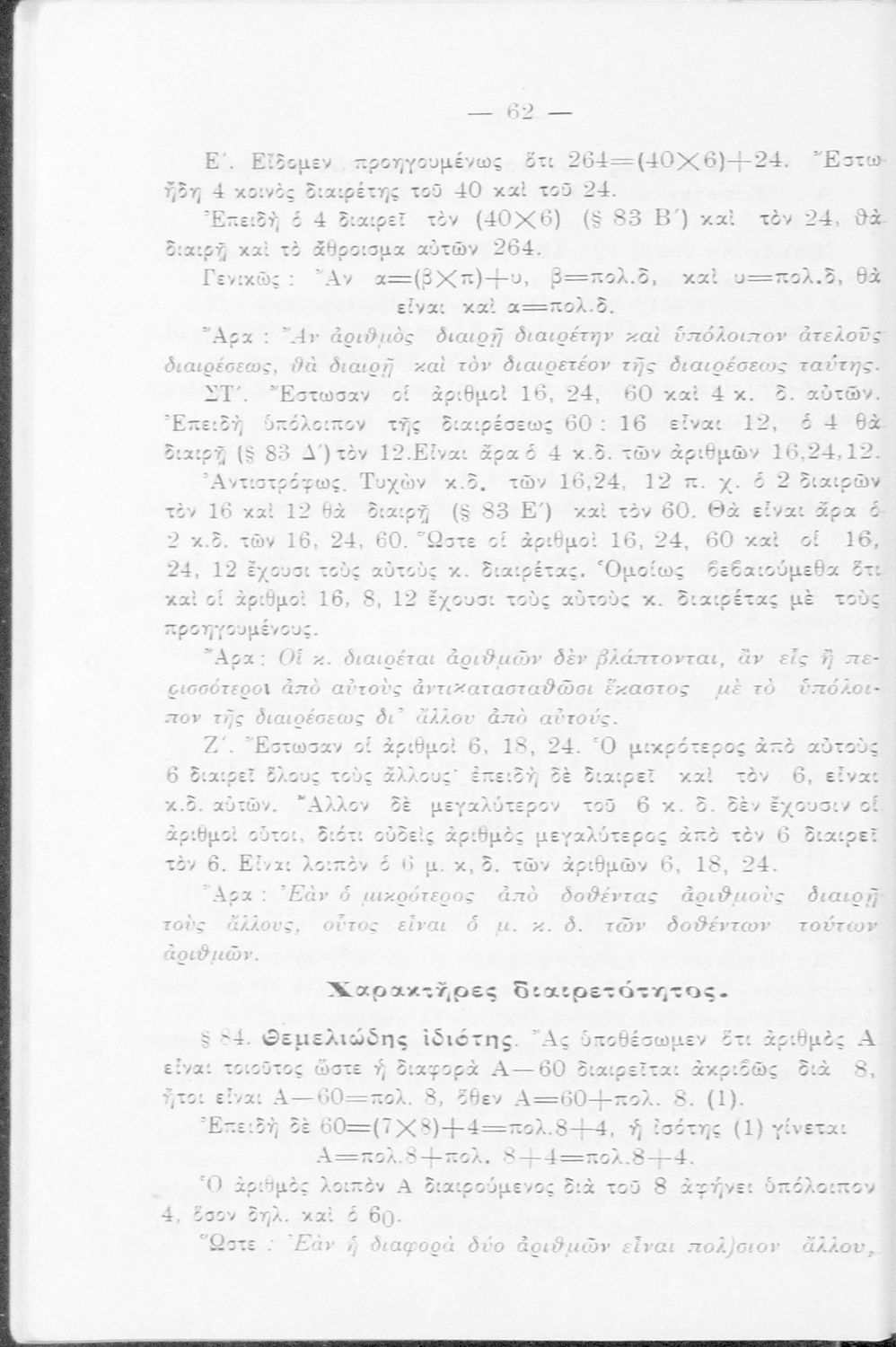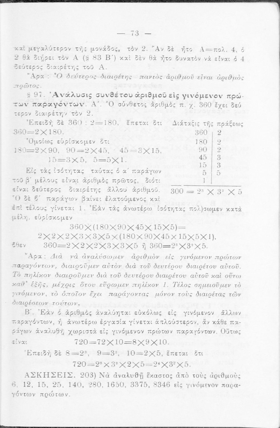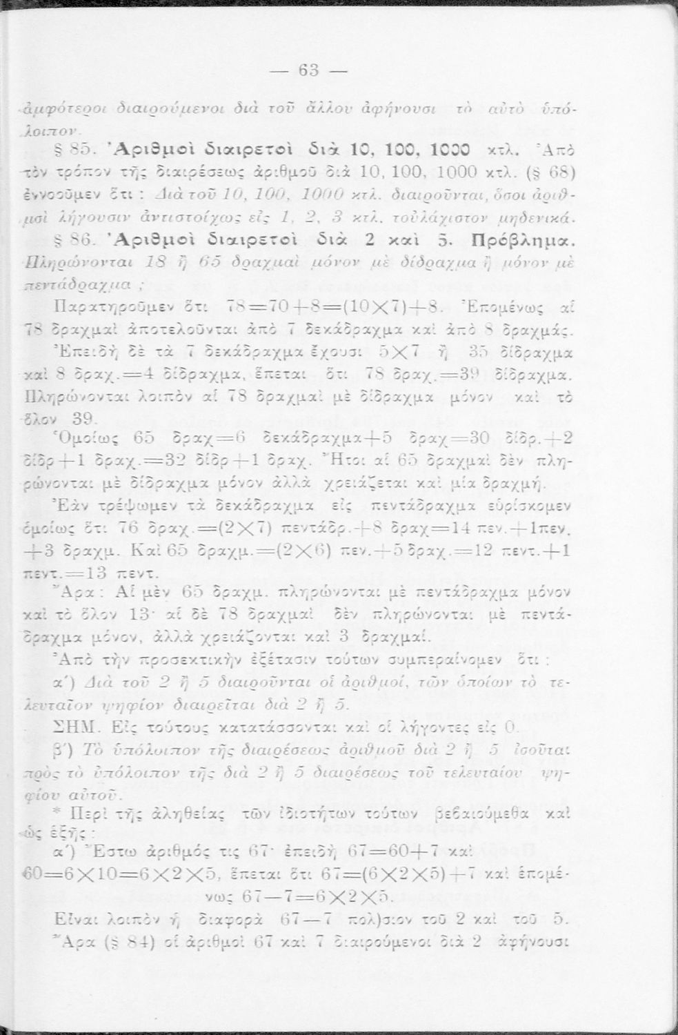 Σχολικό εγχειρίδιο Αριθμητικής για τις Α΄, Β΄, Γ΄ Γυμνασίου και τα Ανώτερα Παρθεναγωγεία που είναι χωρισμένο σε θεωρία και ασκήσεις και εστιάζει στις αριθμητικές πράξεις με κλάσματα και ακέραιους και συμμιγείς
