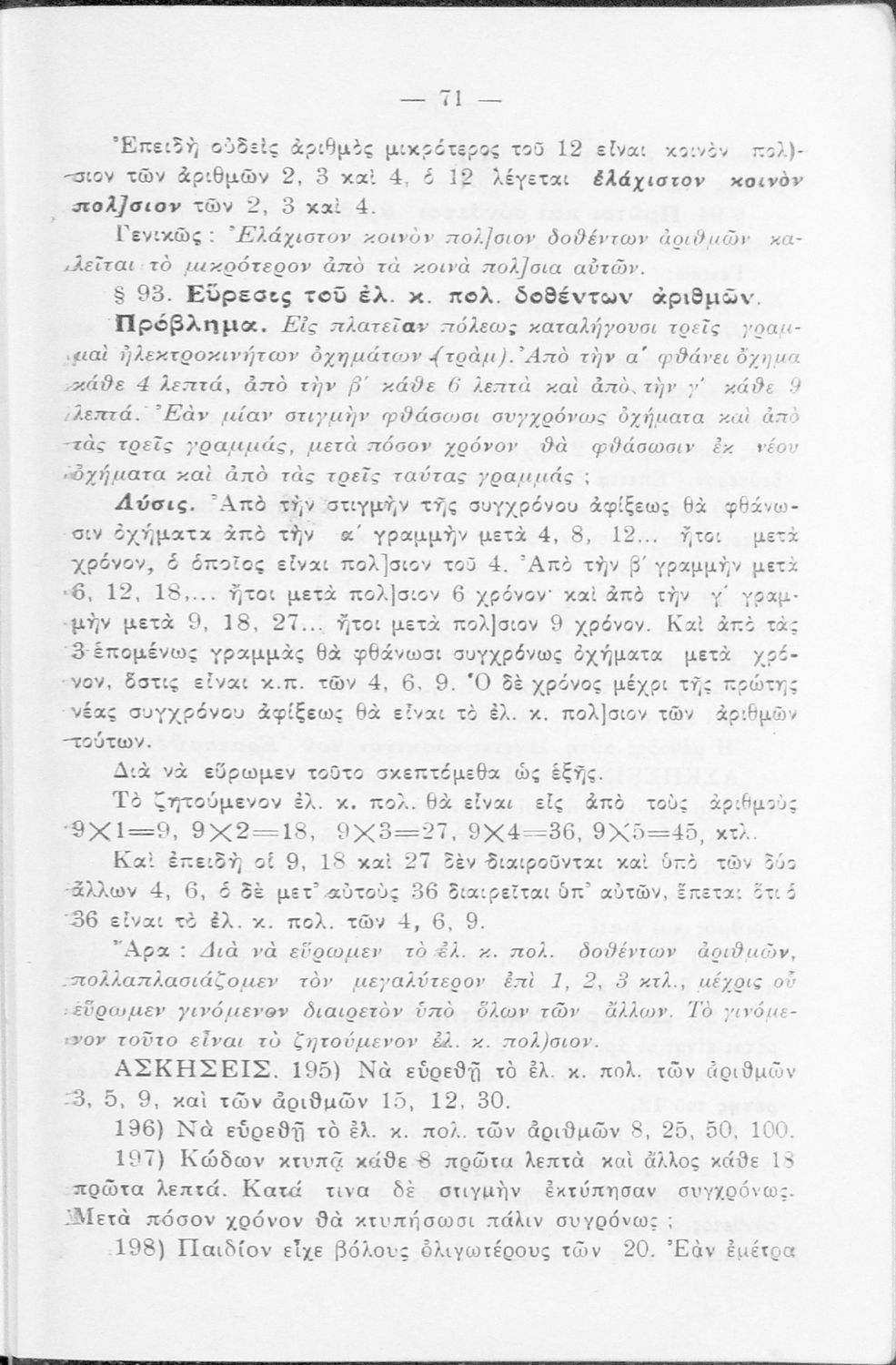 Αριθμητική συντεταγμένη κατά το τελευταίον πρόγραμμα προς χρήσιν των μαθητών της Α΄, Β΄, Γ΄ τάξεως των Γυμνασίων και Ημιγυμνασίων