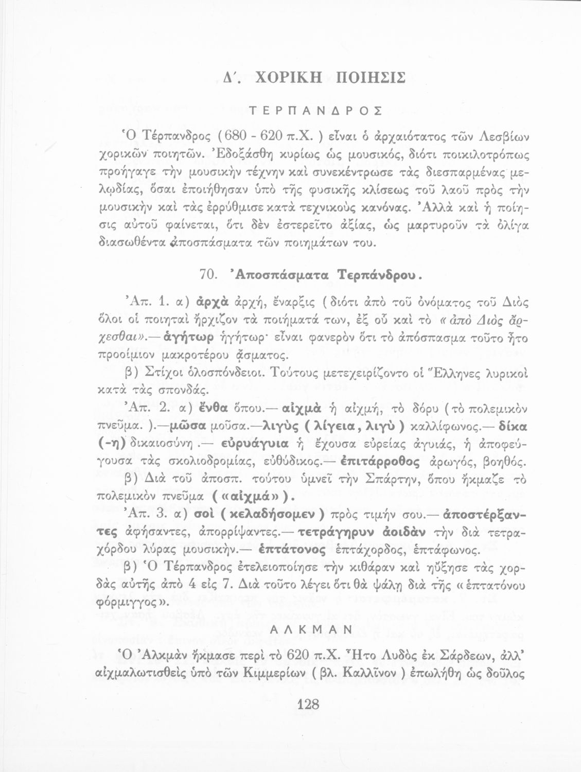 Σχολικό εγχειρίδιο Αρχαίων Ελληνικών που περιέχει αποσπάσματα αρχαίων Ελλήνων λυρικών, εισαγωγή και ερμηνευτικά σχόλια. Κοσμείται από μικρά διακοσμητικά σχέδια.