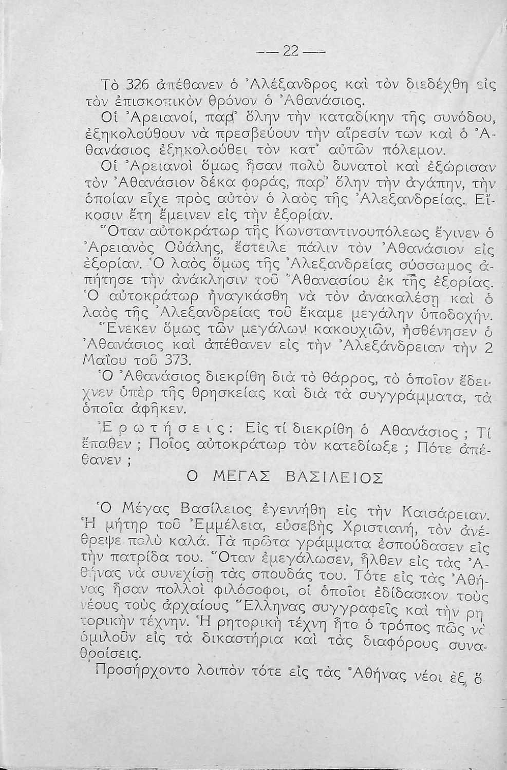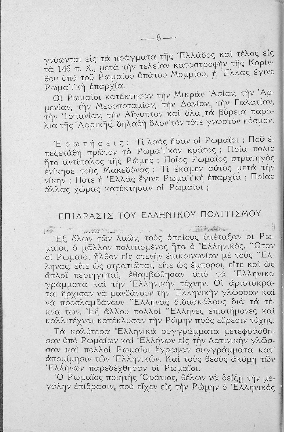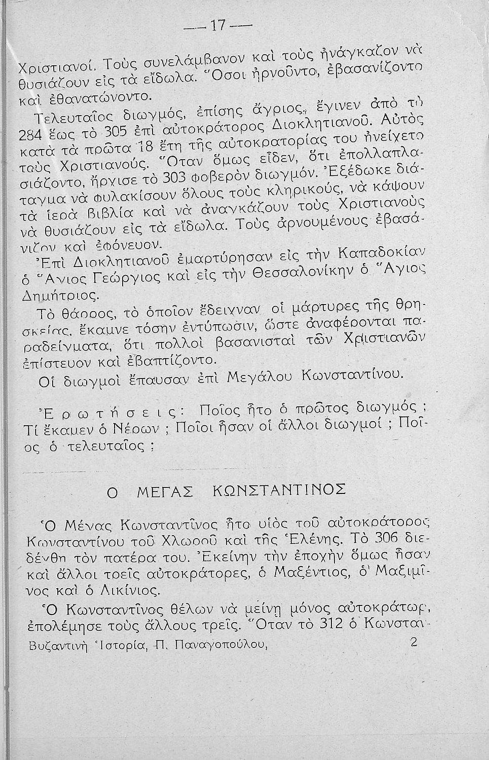 Μαθητικό βοήθημα Ιστορίας Δ΄ Δημοτικού που καλύπτει την περίοδο της Ρωμαϊκής και Βυζαντινής Αυτοκρατορίας μέχρι και την άλωση της Κωνσταντινούπολης. Ο συγγραφέας ήταν επιθεωρητής Δημοτικών Σχολείων.