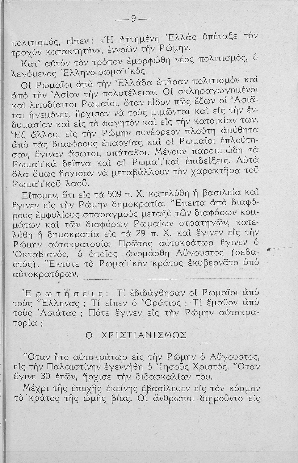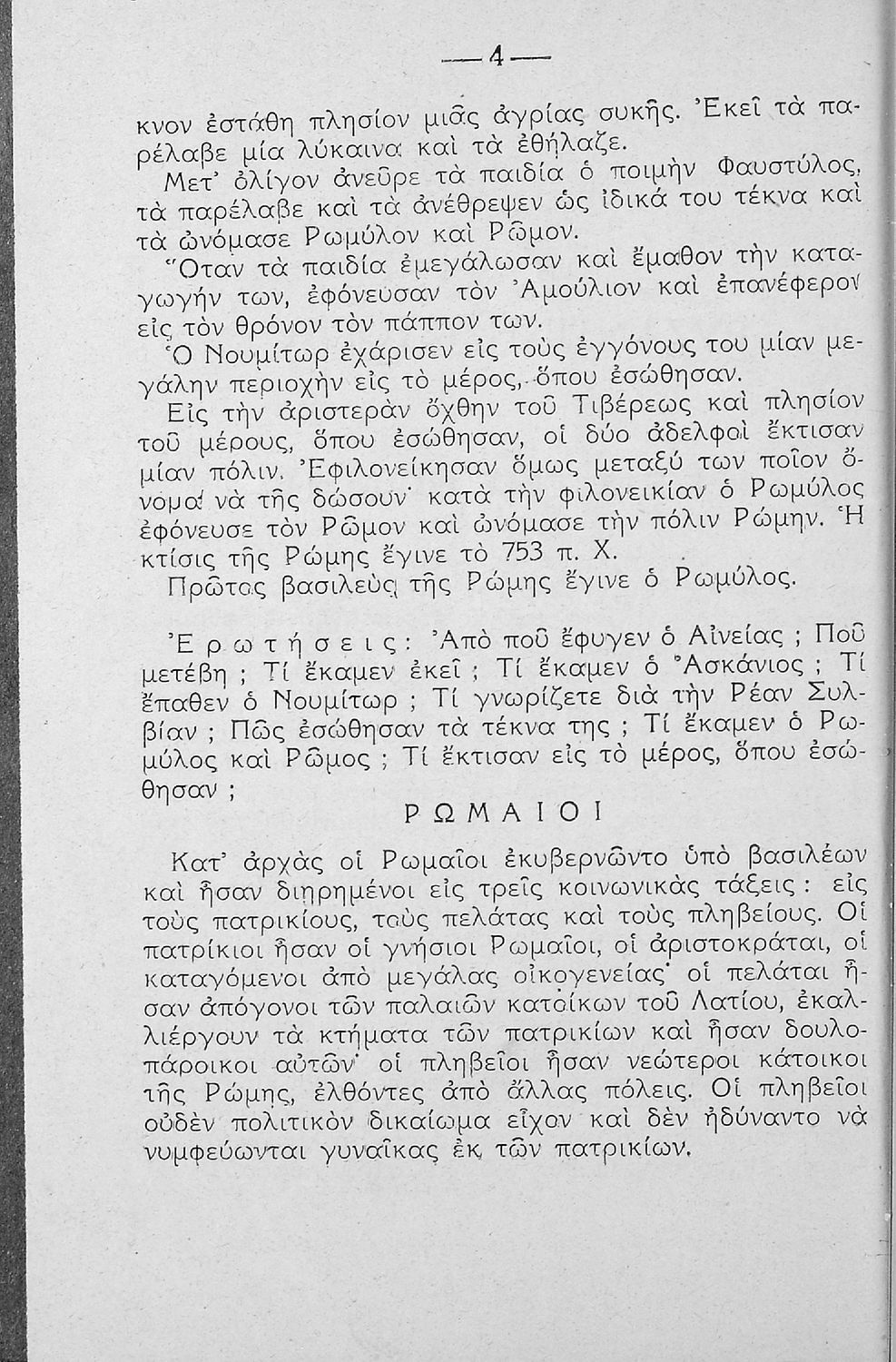 Παρουσίαση περιεχομένου: Μαθητικό βοήθημα Ιστορίας Δ΄ Δημοτικού που καλύπτει την περίοδο της Ρωμαϊκής και Βυζαντινής Αυτοκρατορίας μέχρι και την άλωση της Κωνσταντινούπολης. Ο συγγραφέας ήταν επιθεωρητής Δημοτικών Σχολείων.