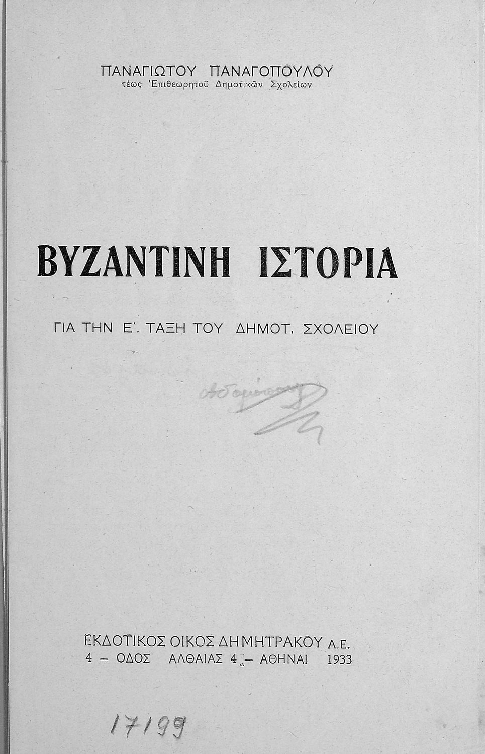 Τίτλος: Βυζαντινή Ιστορία. Για την Ε΄ Τάξη του Δημ. Σχολείου