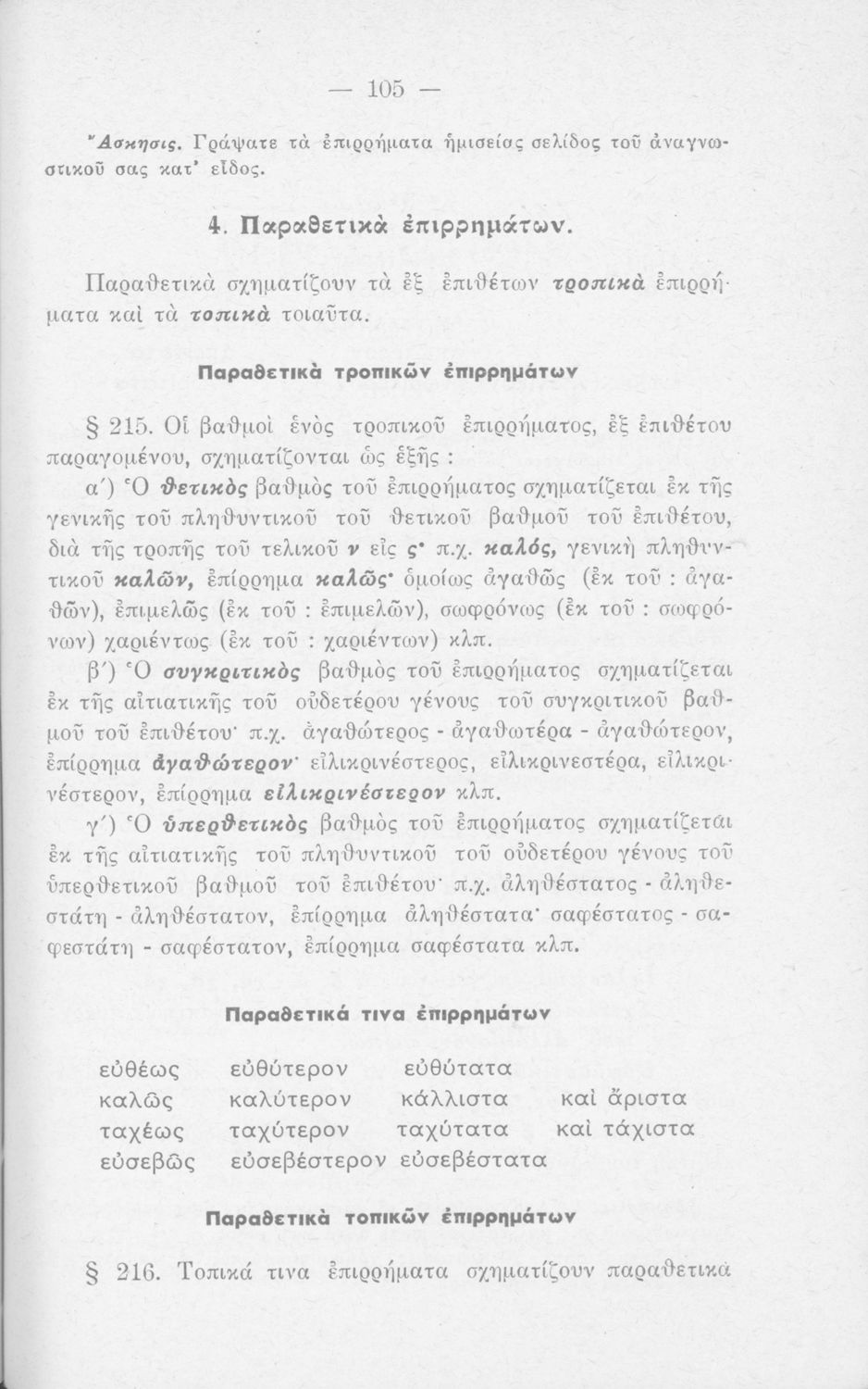 Σχολικό εγχειρίδιο Γ΄ και Δ΄ Δημοτικού που περιέχει τη γραμματικής της νέας ελληνικής. Την έκδοση επιμελήθηκε ο Γ. Λογοθέτης, τέως διευθυντής του επταταξίου δημ. Τμήμ.της Ευαγγελικής Σχολής.