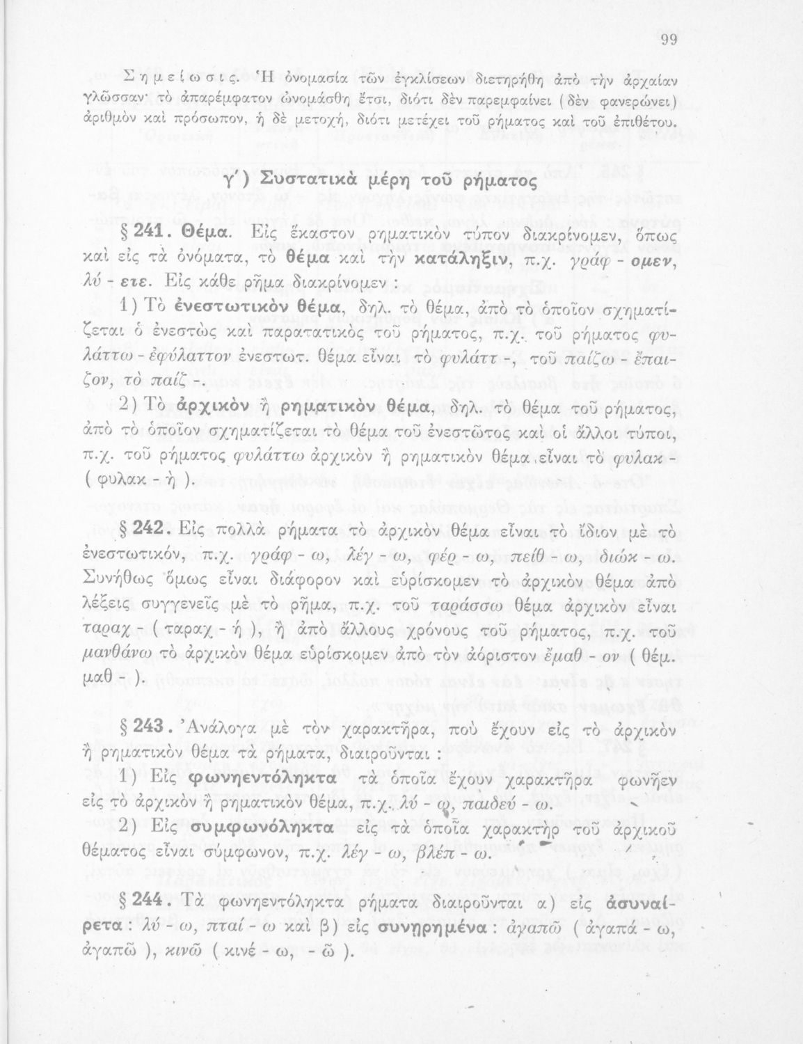 Παρουσίαση περιεχομένου: Σχολικό εγχειρίδιο Γλώσσας Δημοτικού που περιλαμβάνει τους κανόνες της γραμματικής και του συντακτικού της καθαρεύουσας.