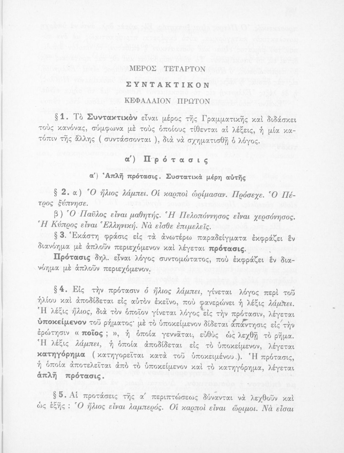 Παρουσίαση περιεχομένου: Σχολικό εγχειρίδιο Γλώσσας Δημοτικού που περιλαμβάνει τους κανόνες της γραμματικής και του συντακτικού της καθαρεύουσας.
