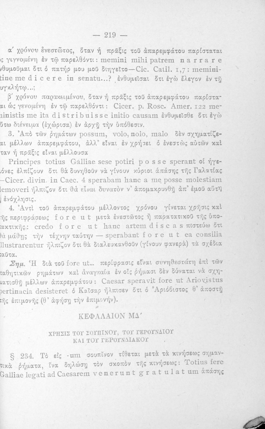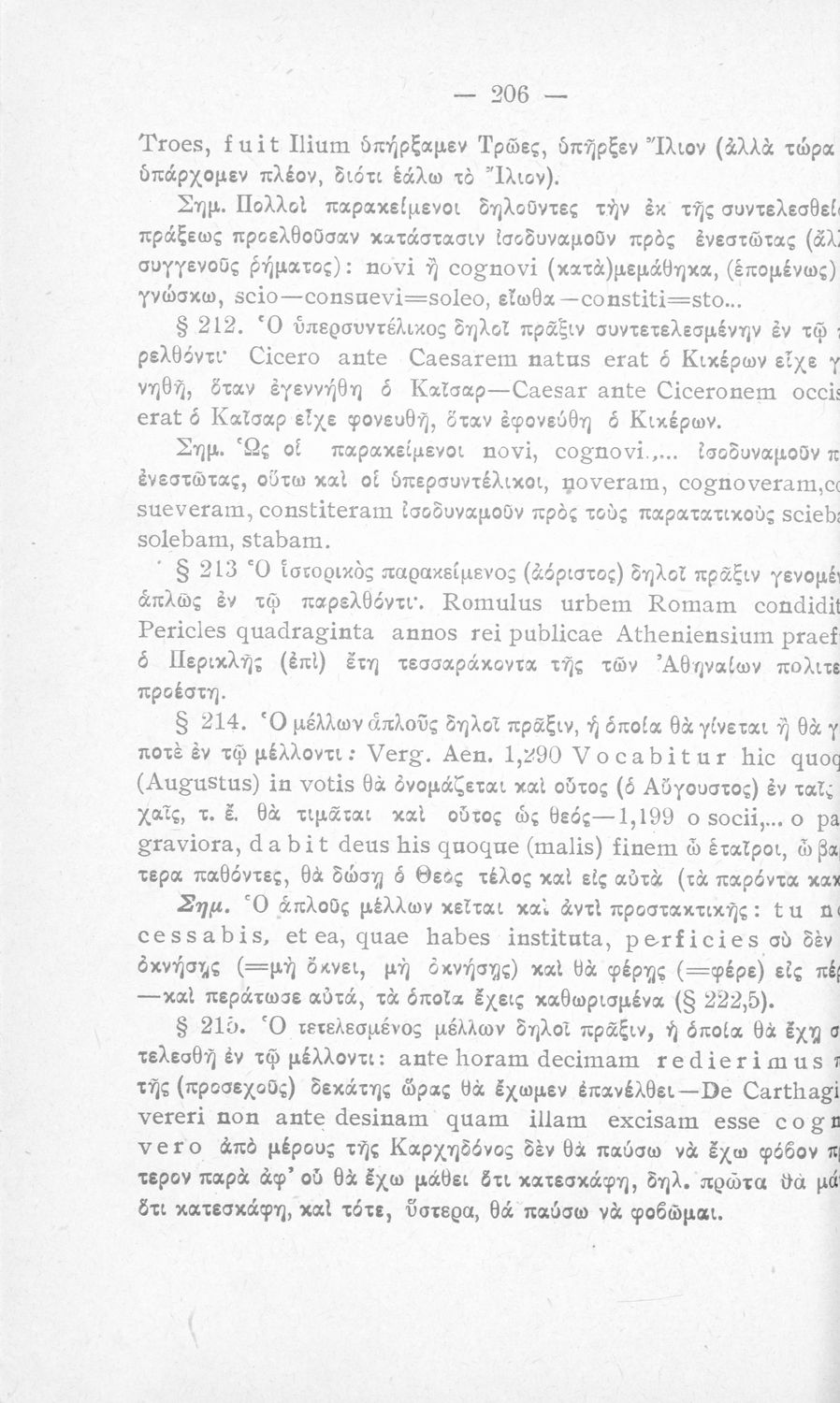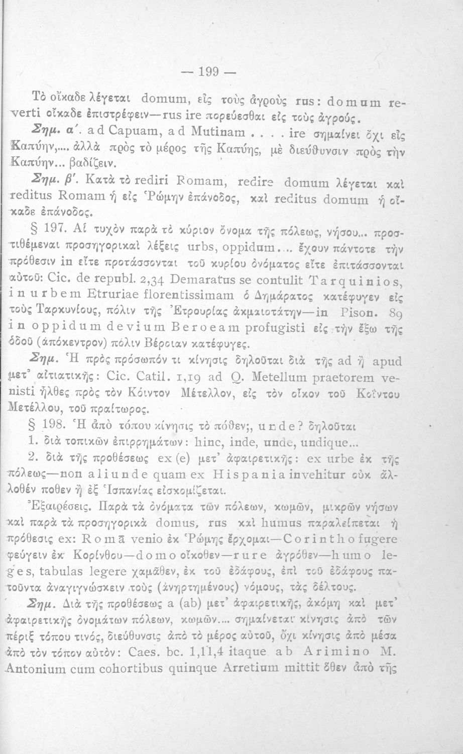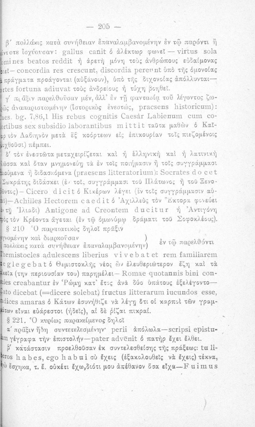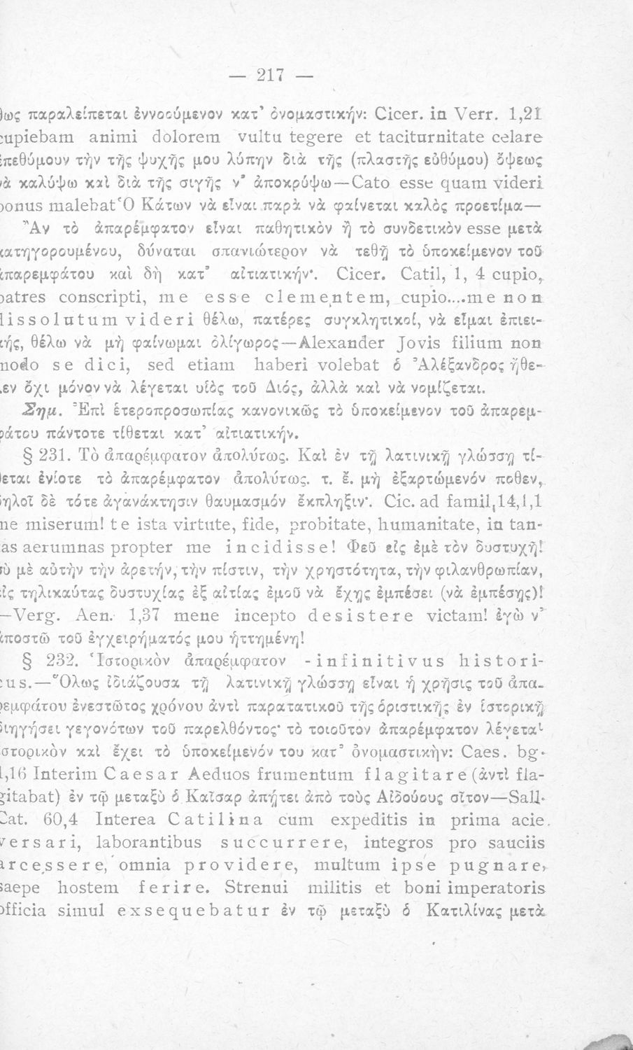 Σχολικό εγχειρίδιο Λατινικών Α΄, Β΄, Γ' Γυμνασίου που περιλαμβάνει γραμματική και συντακτικό και είναι χωρισμένο σε φθογγολογικό, τυπολογικό και ετυμολογικό μέρος.
