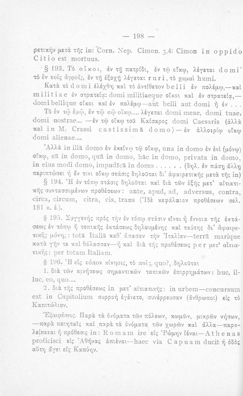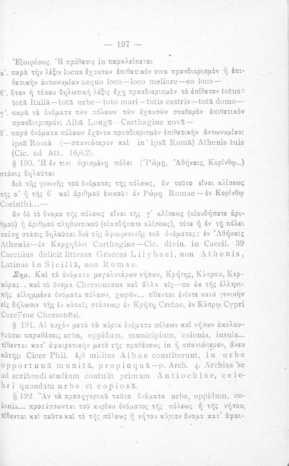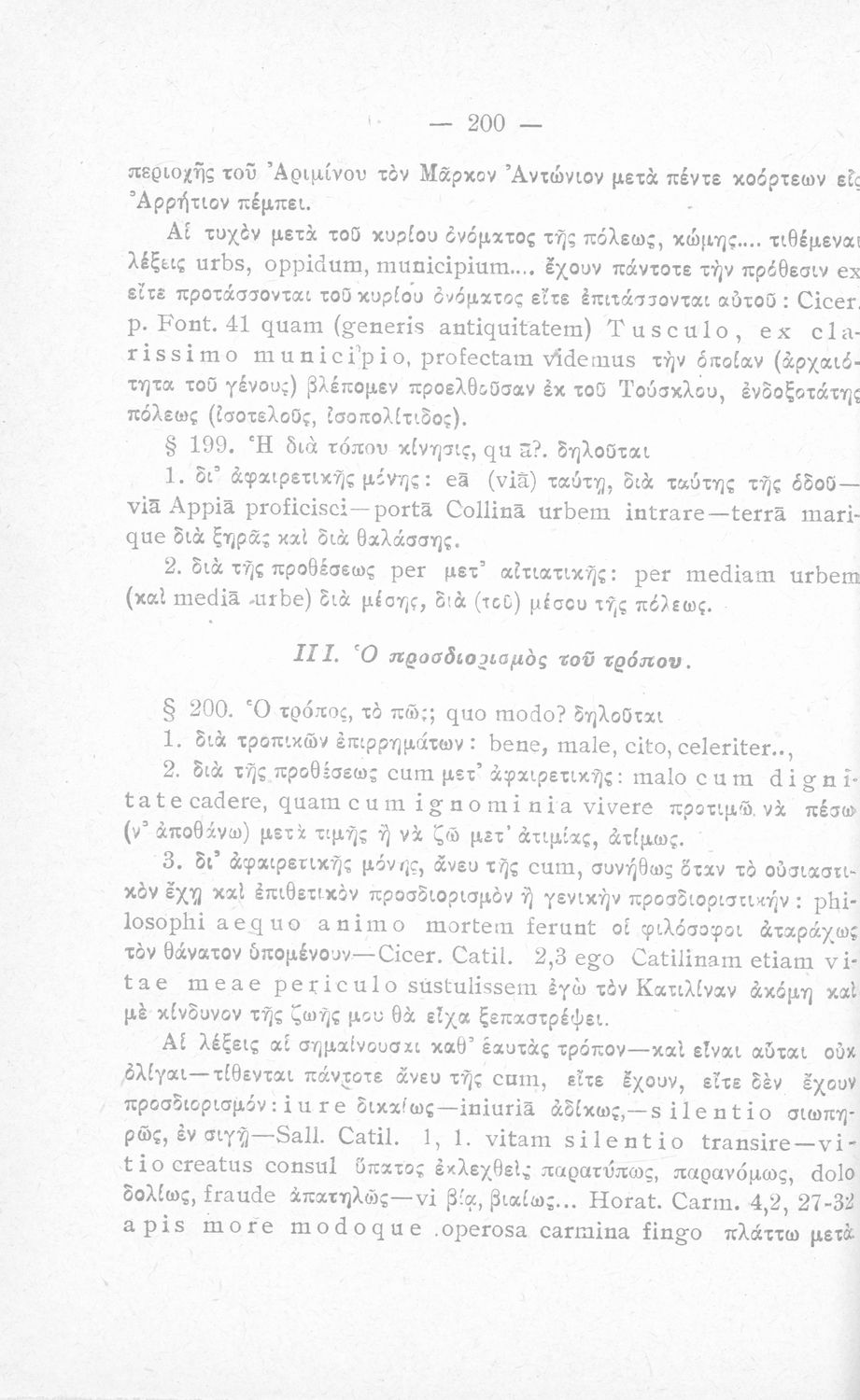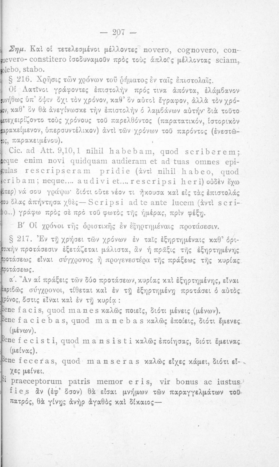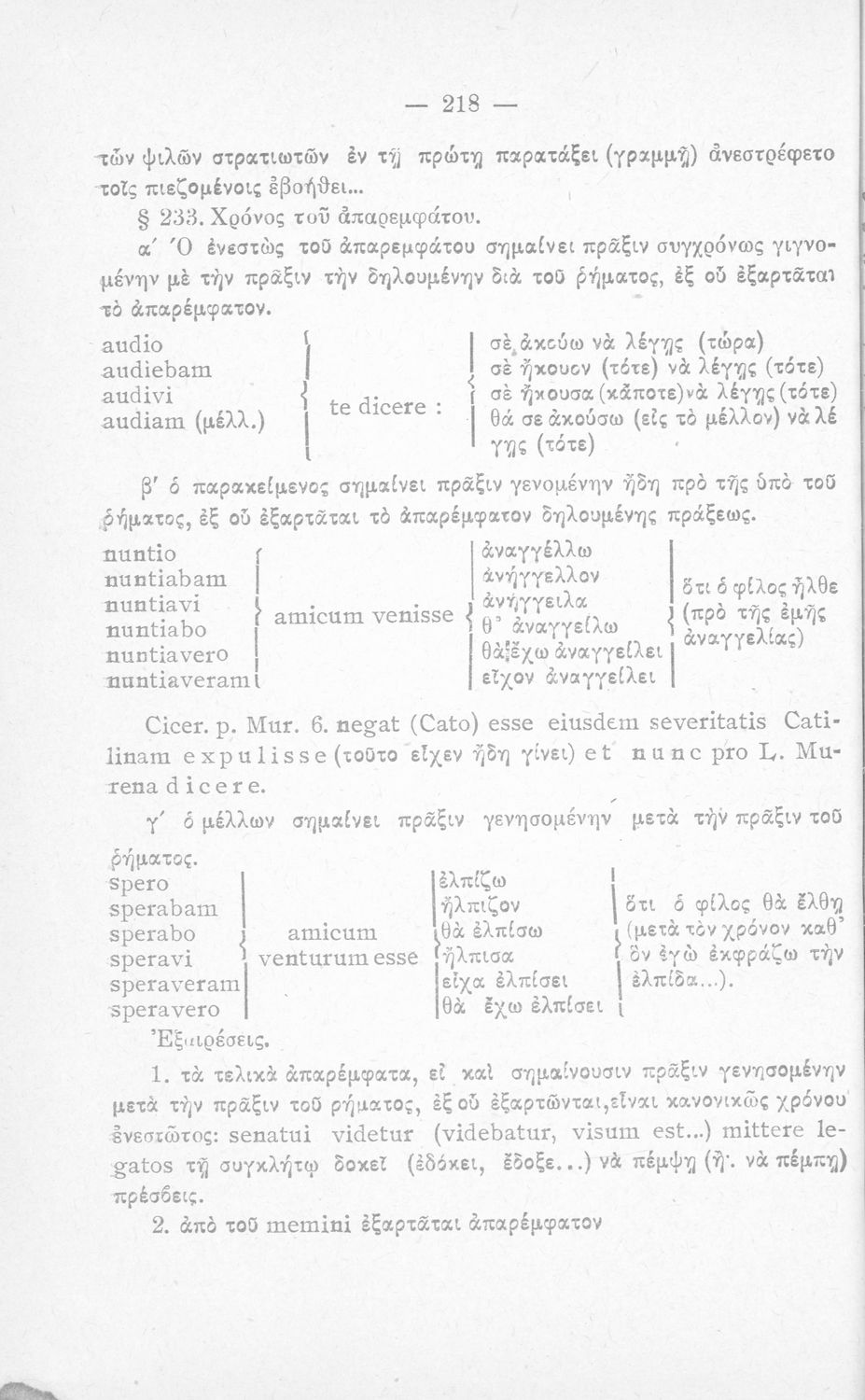 Σχολικό εγχειρίδιο Λατινικών Α΄, Β΄, Γ' Γυμνασίου που περιλαμβάνει γραμματική και συντακτικό και είναι χωρισμένο σε φθογγολογικό, τυπολογικό και ετυμολογικό μέρος.