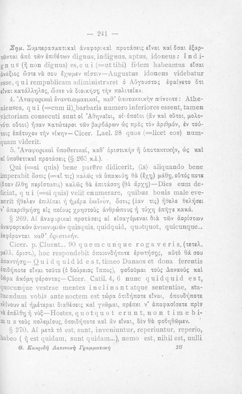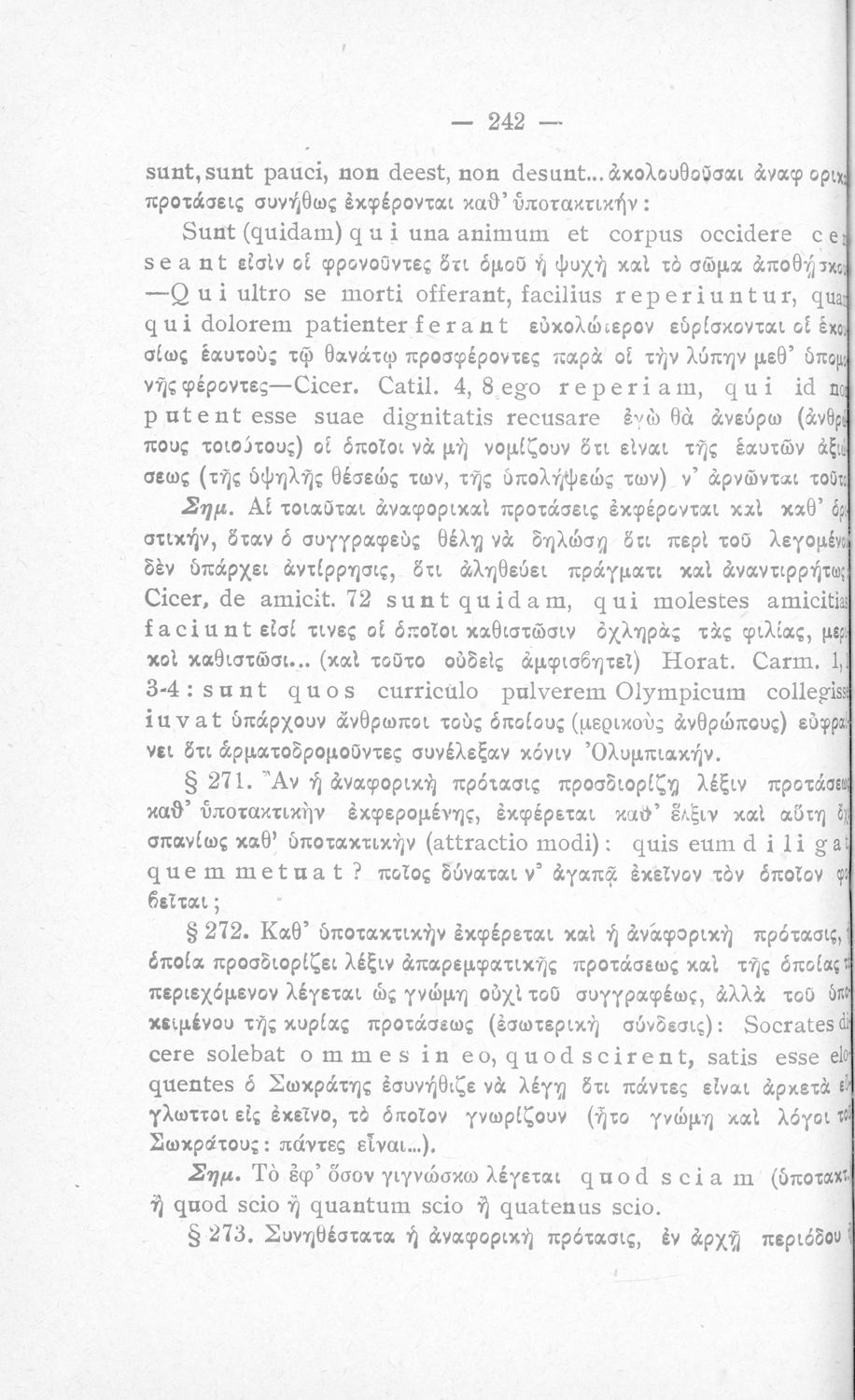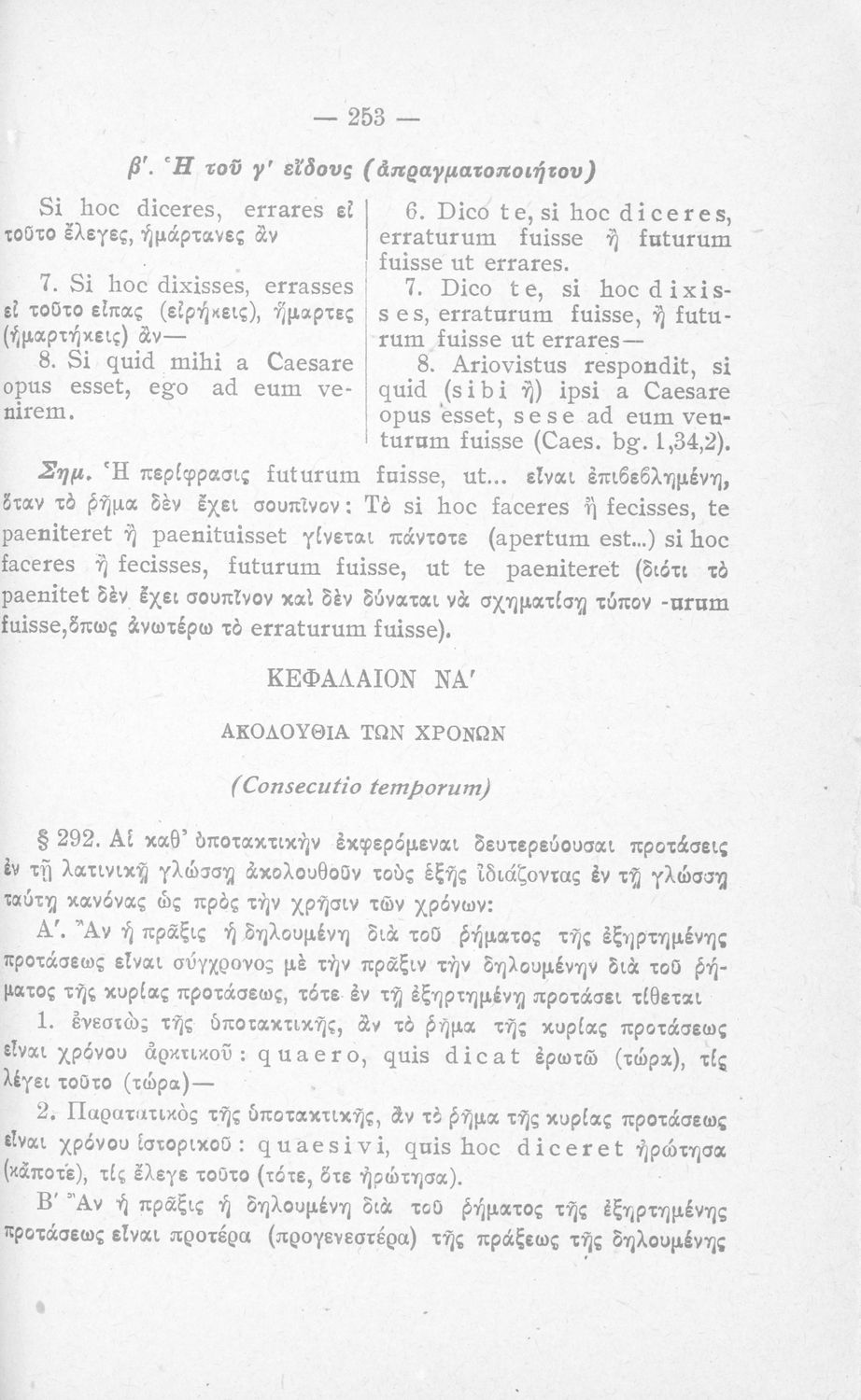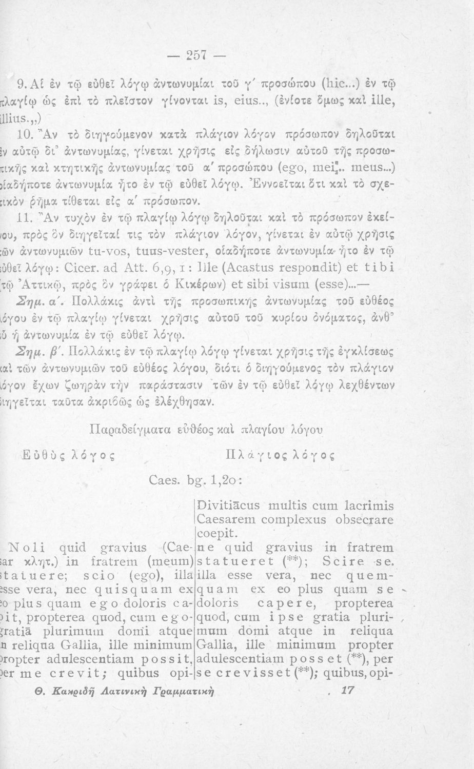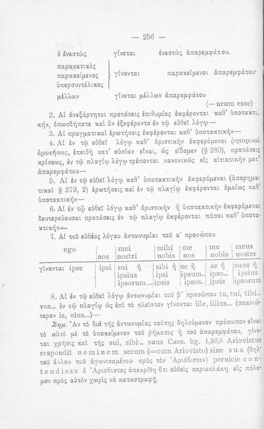 Σχολικό εγχειρίδιο Λατινικών Α΄, Β΄, Γ' Γυμνασίου που περιλαμβάνει γραμματική και συντακτικό και είναι χωρισμένο σε φθογγολογικό, τυπολογικό και ετυμολογικό μέρος.
