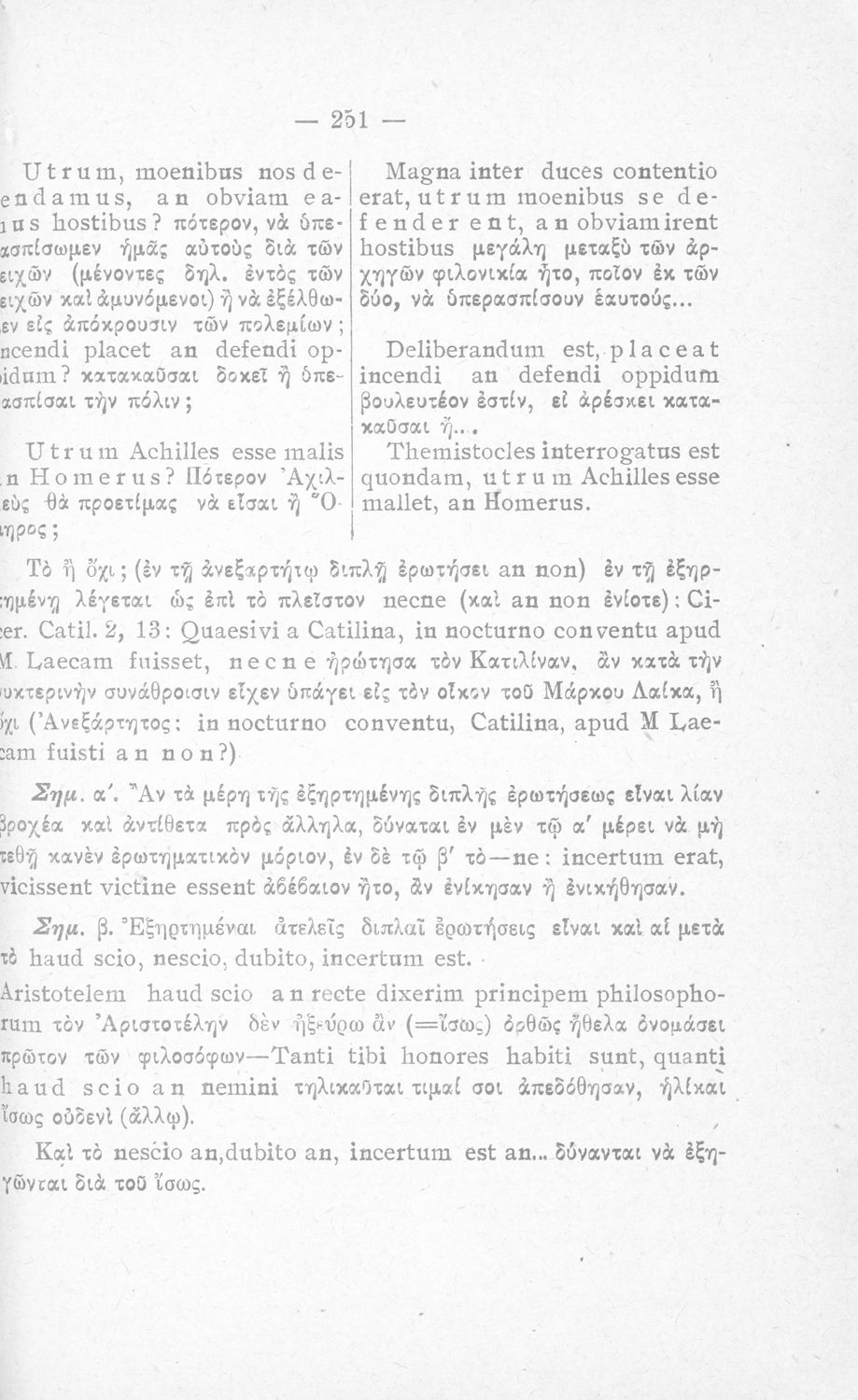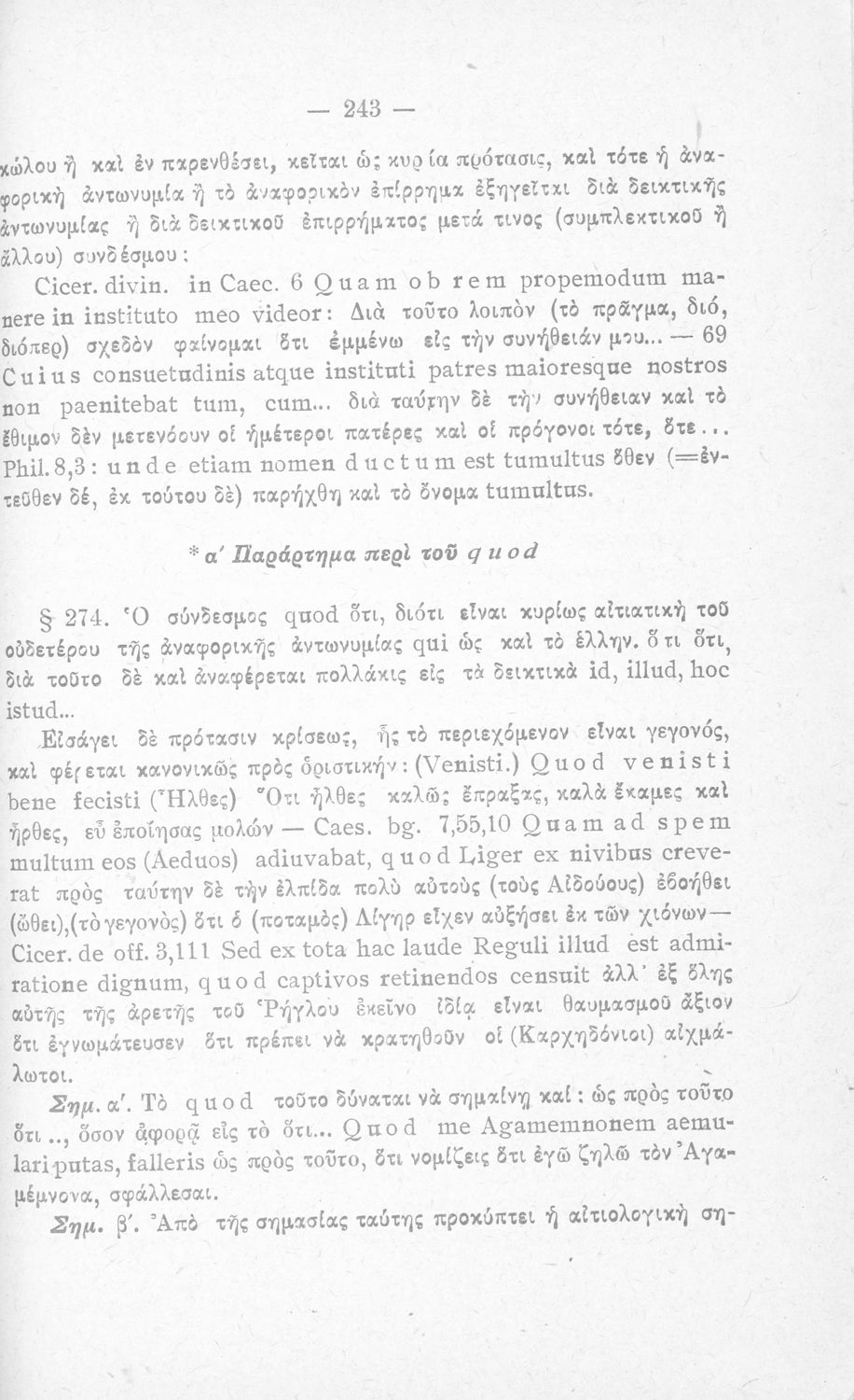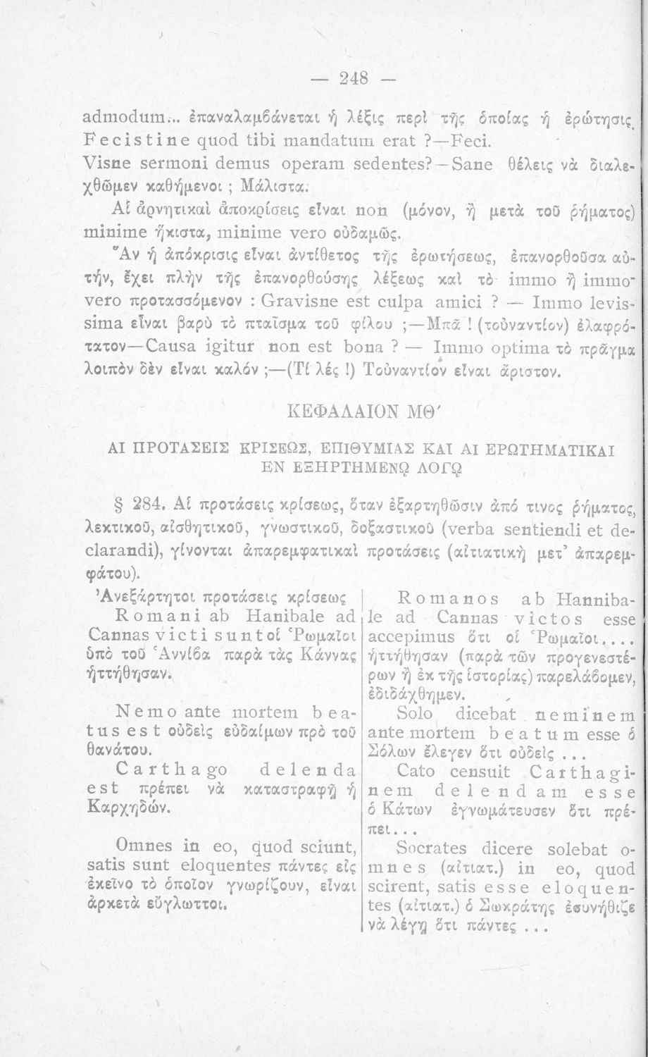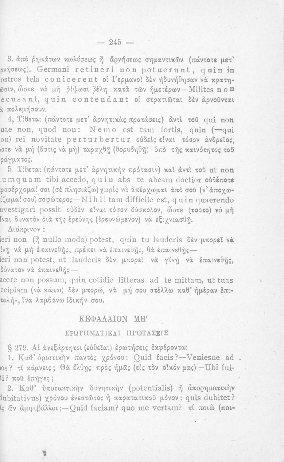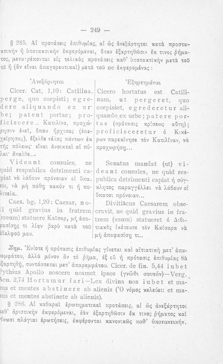 Σχολικό εγχειρίδιο Λατινικών Α΄, Β΄, Γ' Γυμνασίου που περιλαμβάνει γραμματική και συντακτικό και είναι χωρισμένο σε φθογγολογικό, τυπολογικό και ετυμολογικό μέρος.