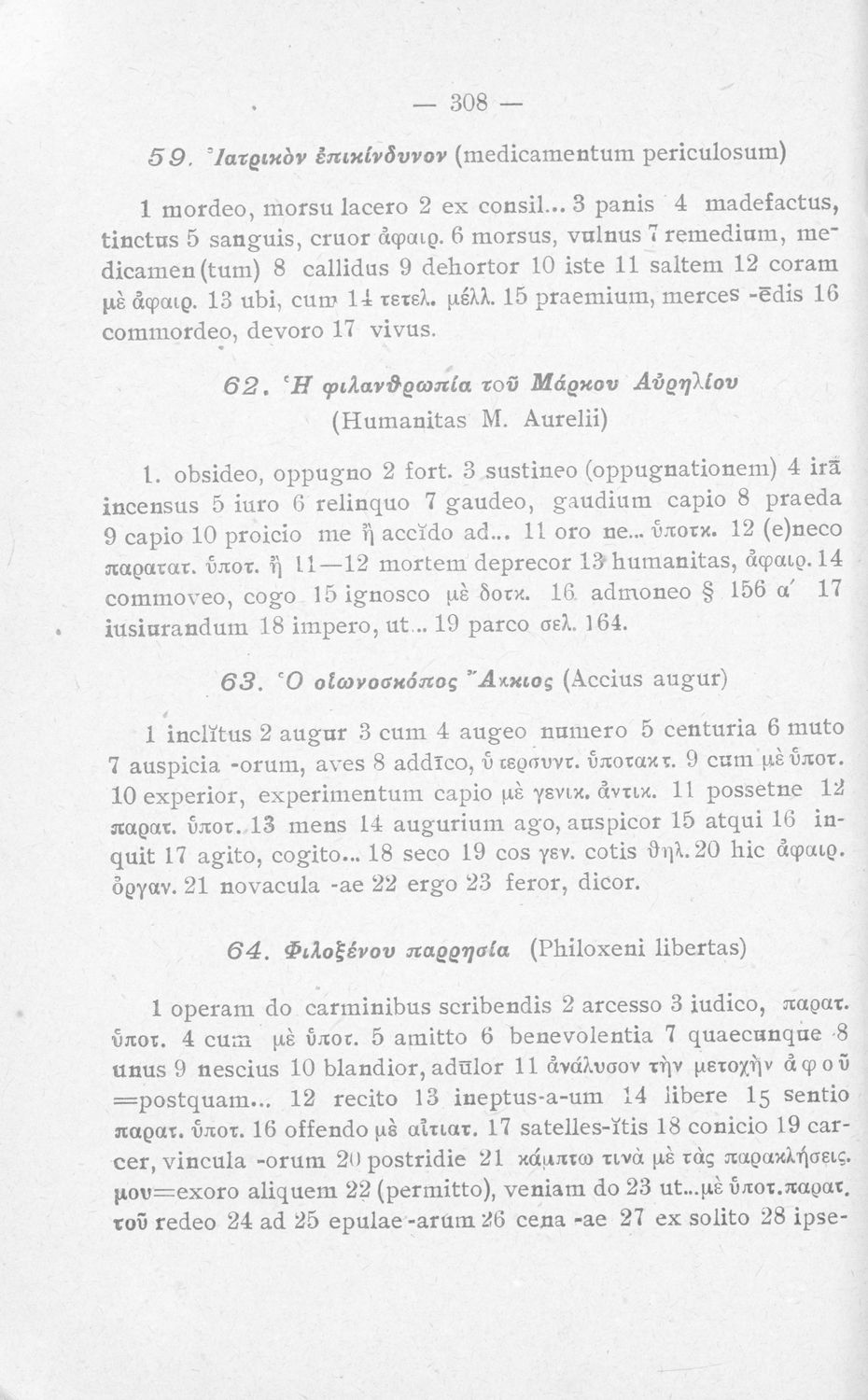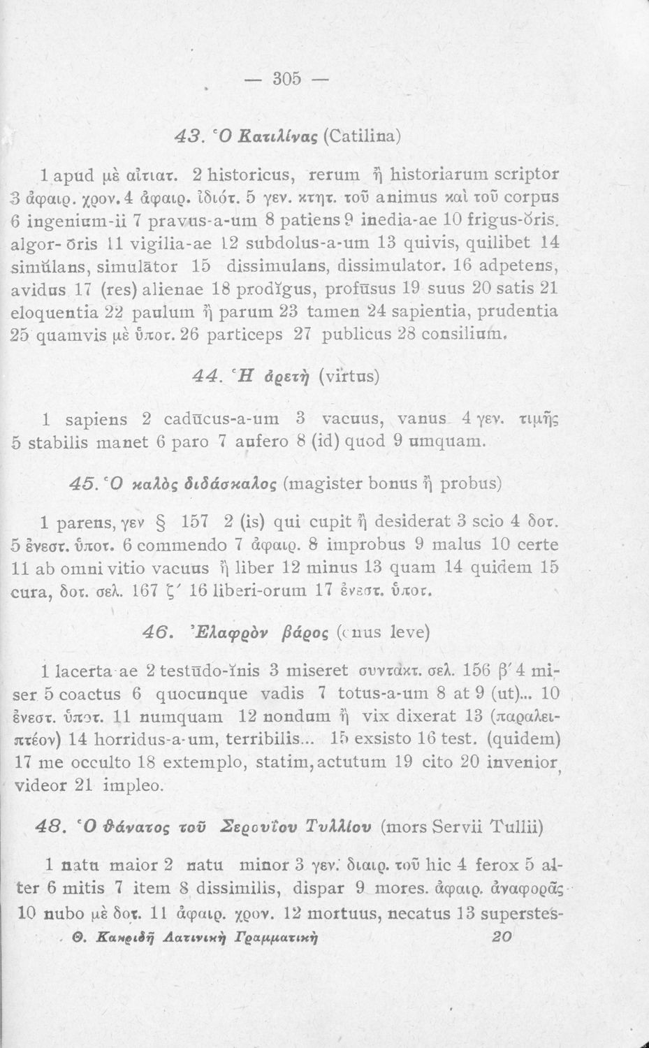 Σχολικό εγχειρίδιο Λατινικών Α΄, Β΄, Γ' Γυμνασίου που περιλαμβάνει γραμματική και συντακτικό και είναι χωρισμένο σε φθογγολογικό, τυπολογικό και ετυμολογικό μέρος.