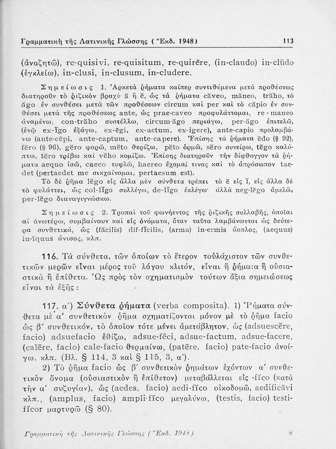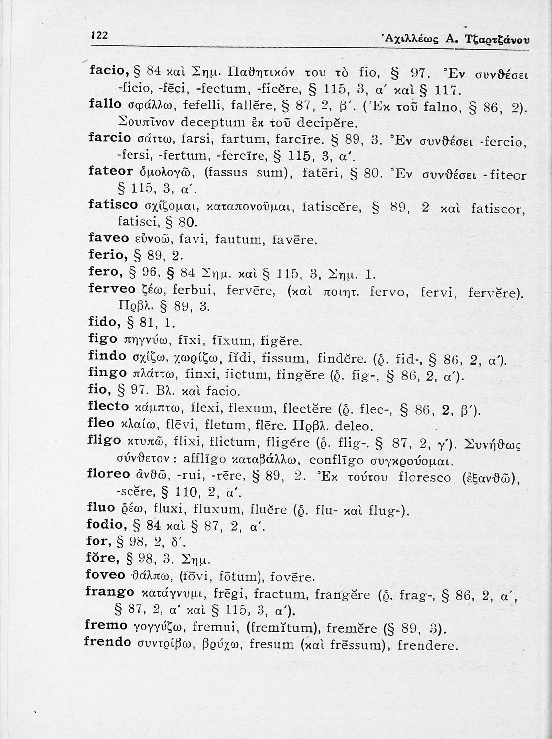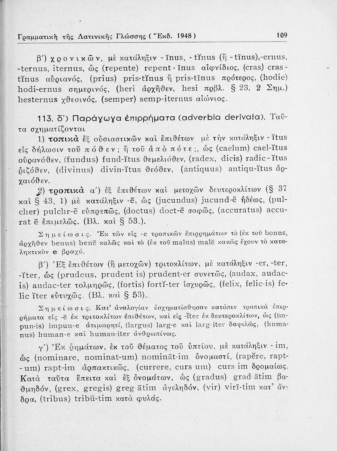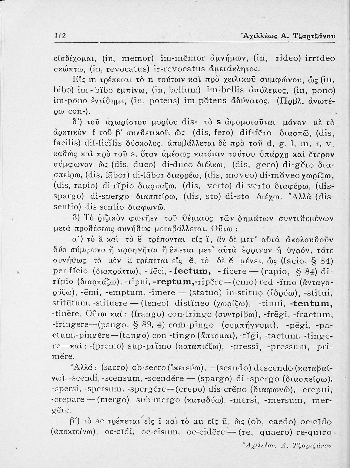 Σχολικό εγχειρίδιο Λατινικών Γυμνασίου που περιλαμβάνει γραμματική και συντακτικό και είναι χωρισμένο σε φθογγολογικό, τυπολογικό και ετυμολογικό μέρος.