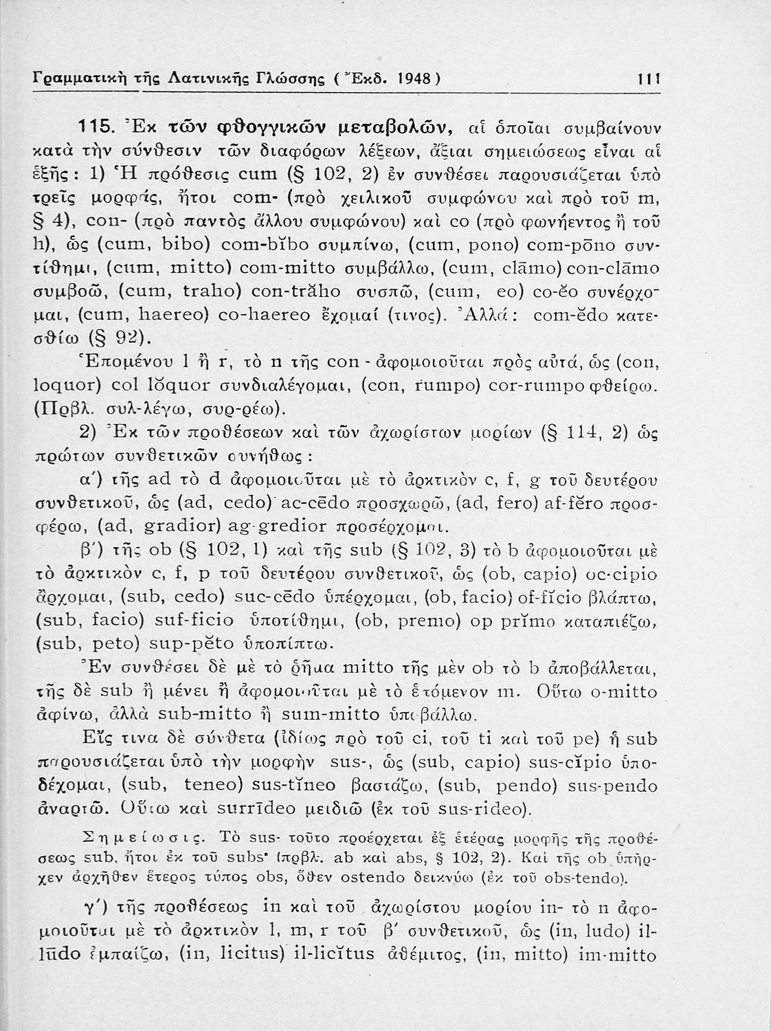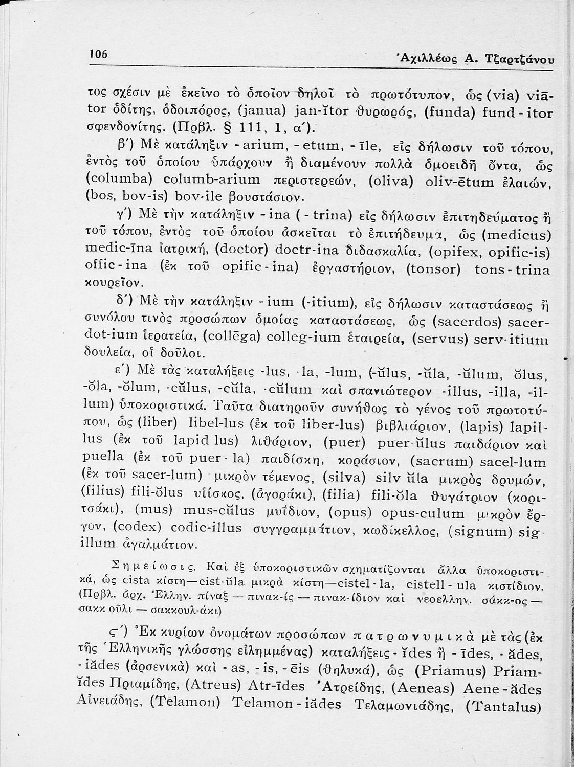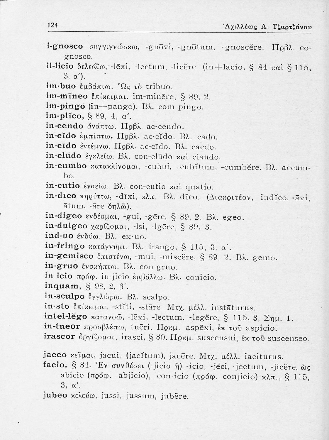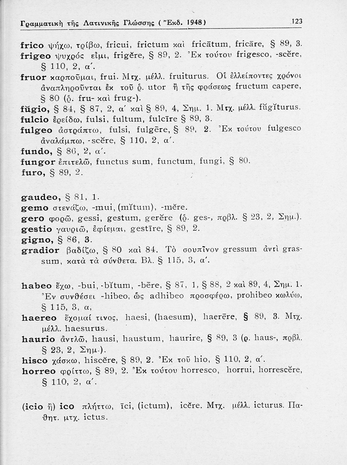 Σχολικό εγχειρίδιο Λατινικών Γυμνασίου που περιλαμβάνει γραμματική και συντακτικό και είναι χωρισμένο σε φθογγολογικό, τυπολογικό και ετυμολογικό μέρος.