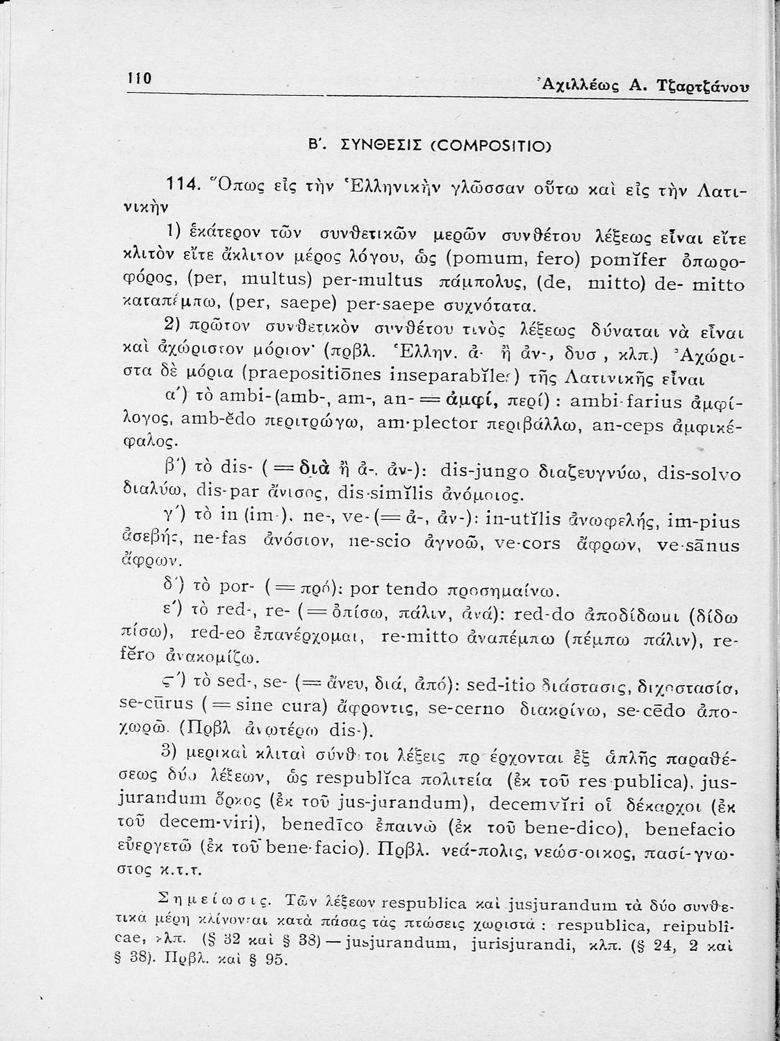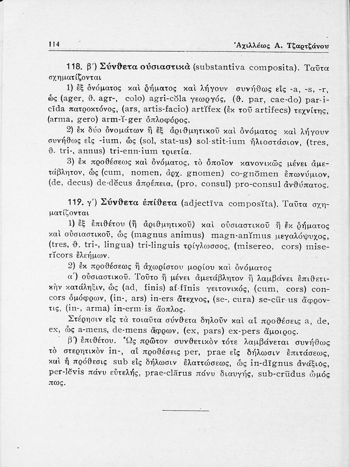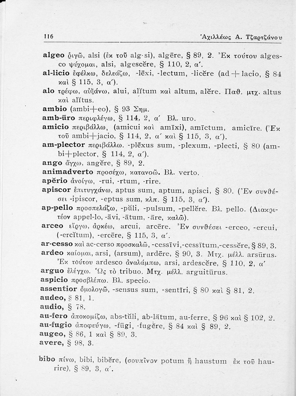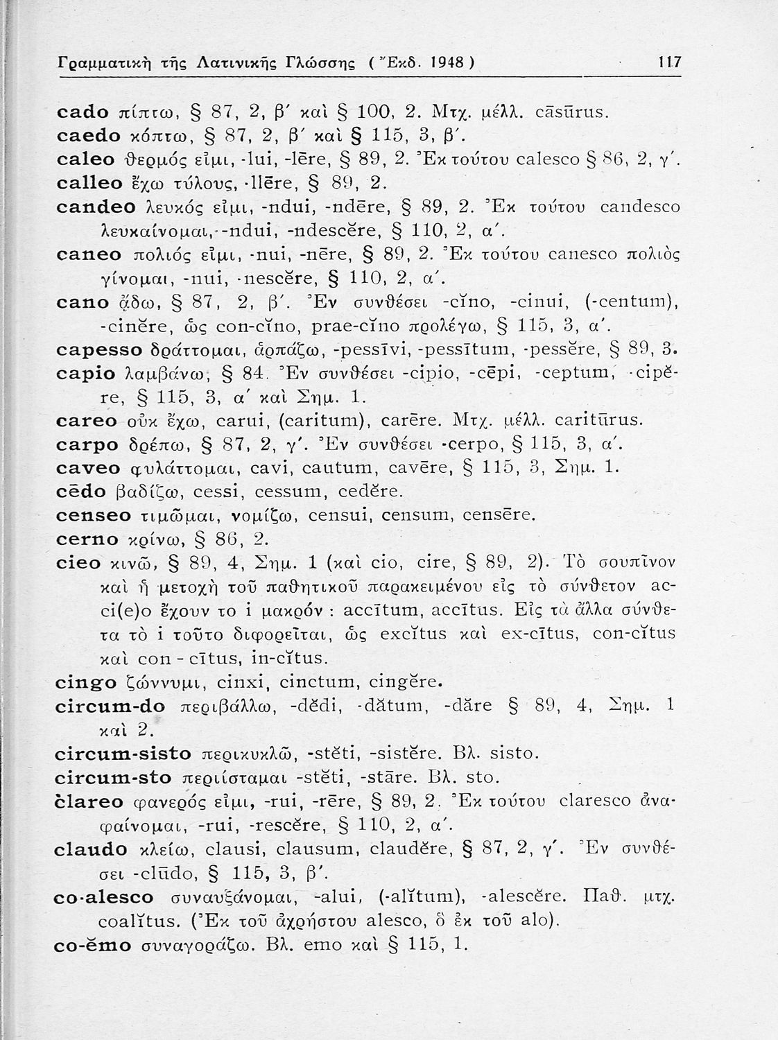 Σχολικό εγχειρίδιο Λατινικών Γυμνασίου που περιλαμβάνει γραμματική και συντακτικό και είναι χωρισμένο σε φθογγολογικό, τυπολογικό και ετυμολογικό μέρος.