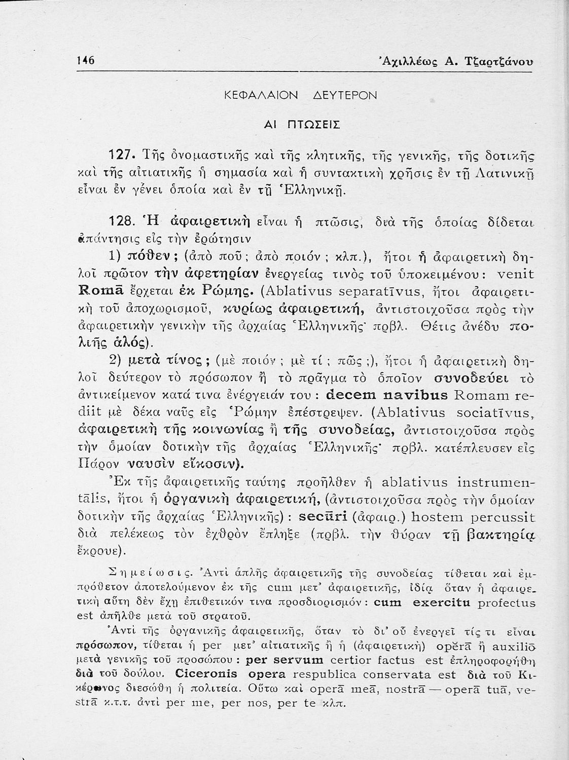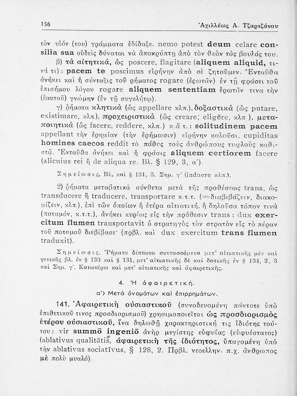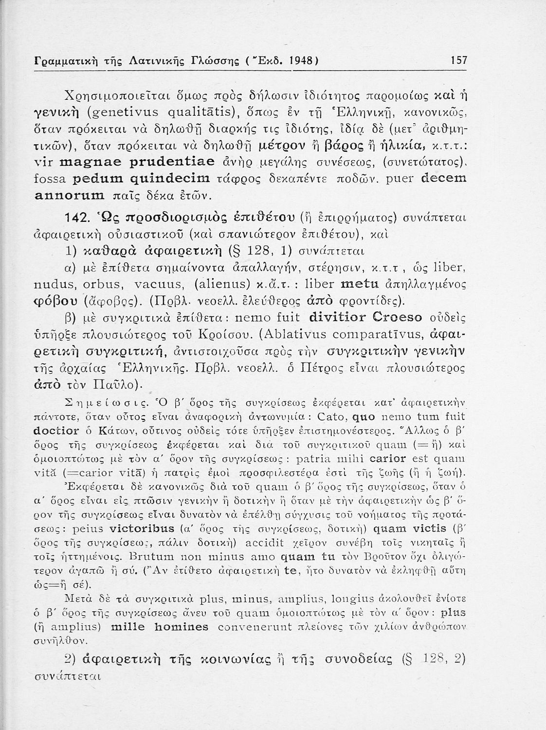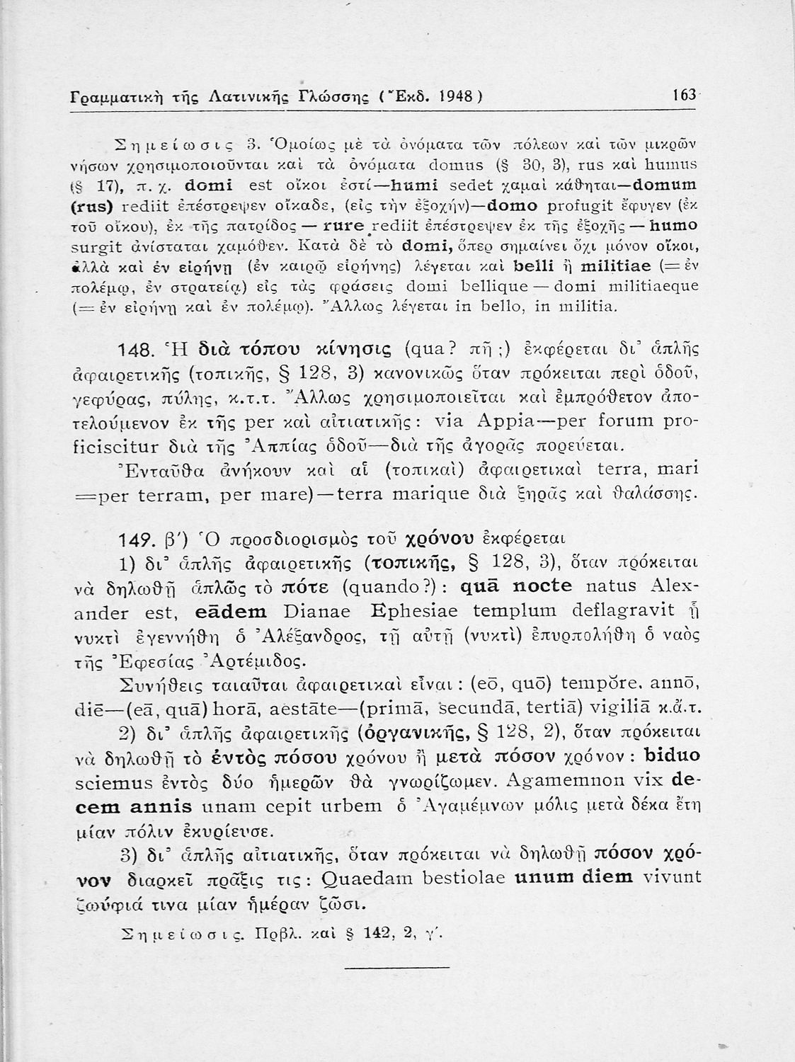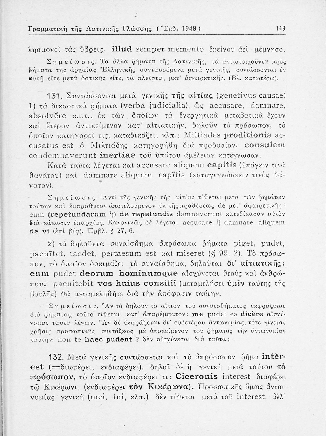 Σχολικό εγχειρίδιο Λατινικών Γυμνασίου που περιλαμβάνει γραμματική και συντακτικό και είναι χωρισμένο σε φθογγολογικό, τυπολογικό και ετυμολογικό μέρος.