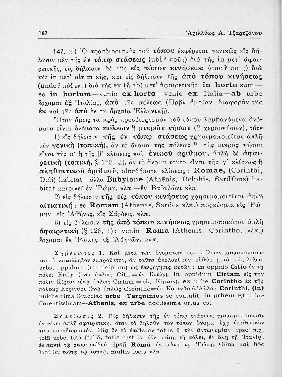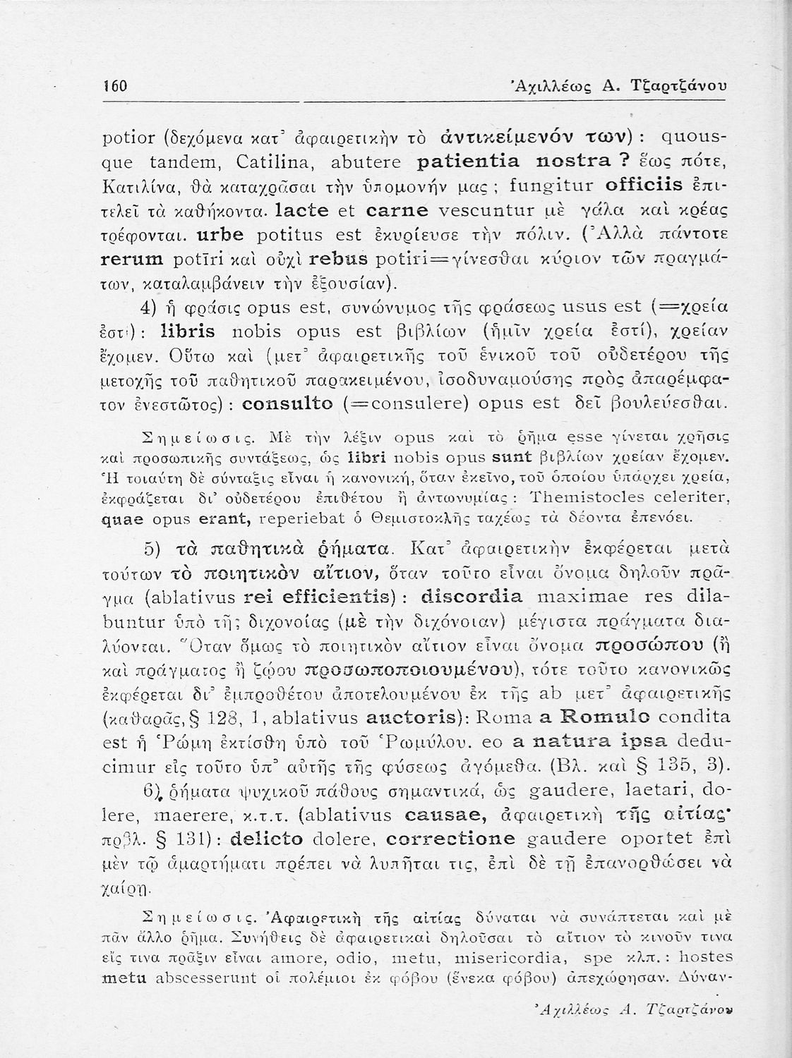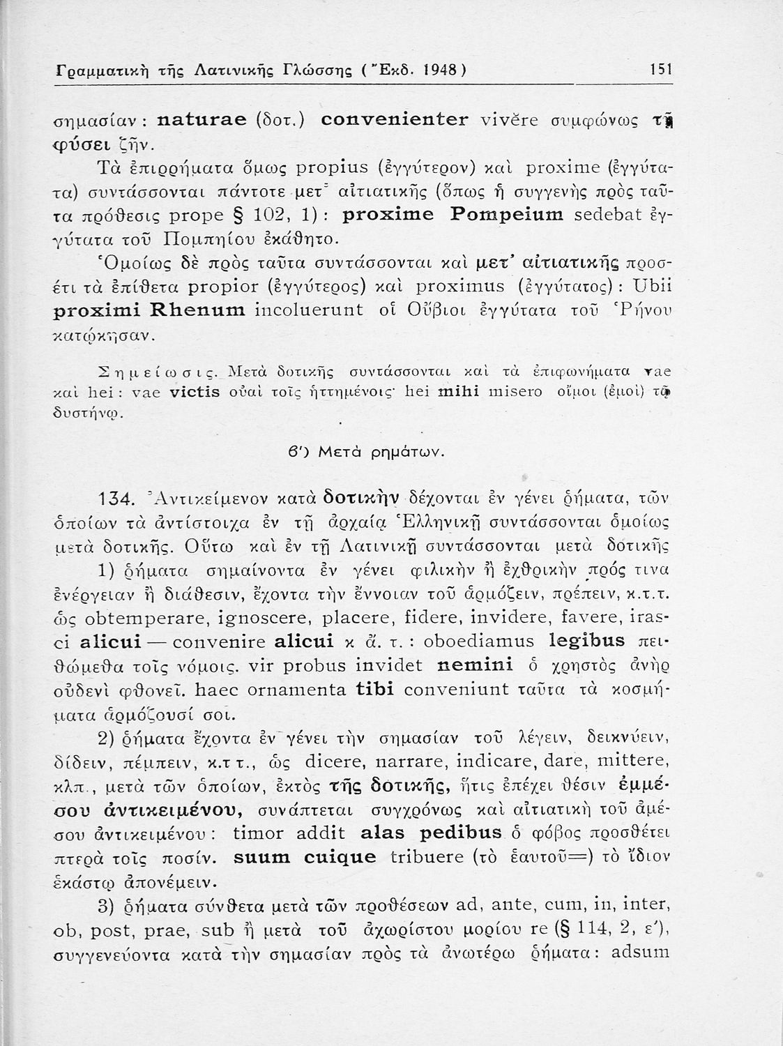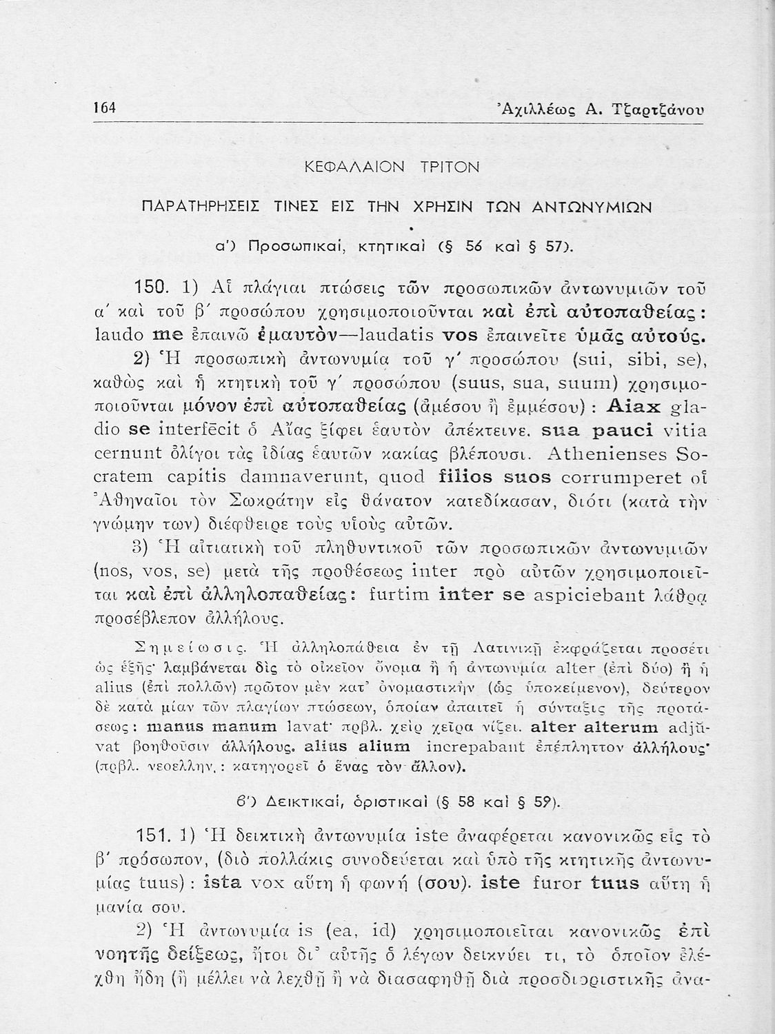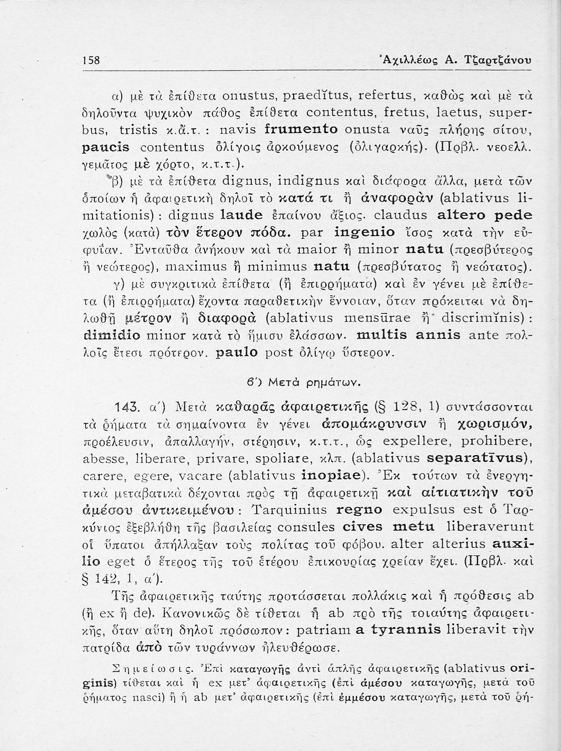Σχολικό εγχειρίδιο Λατινικών Γυμνασίου που περιλαμβάνει γραμματική και συντακτικό και είναι χωρισμένο σε φθογγολογικό, τυπολογικό και ετυμολογικό μέρος.
