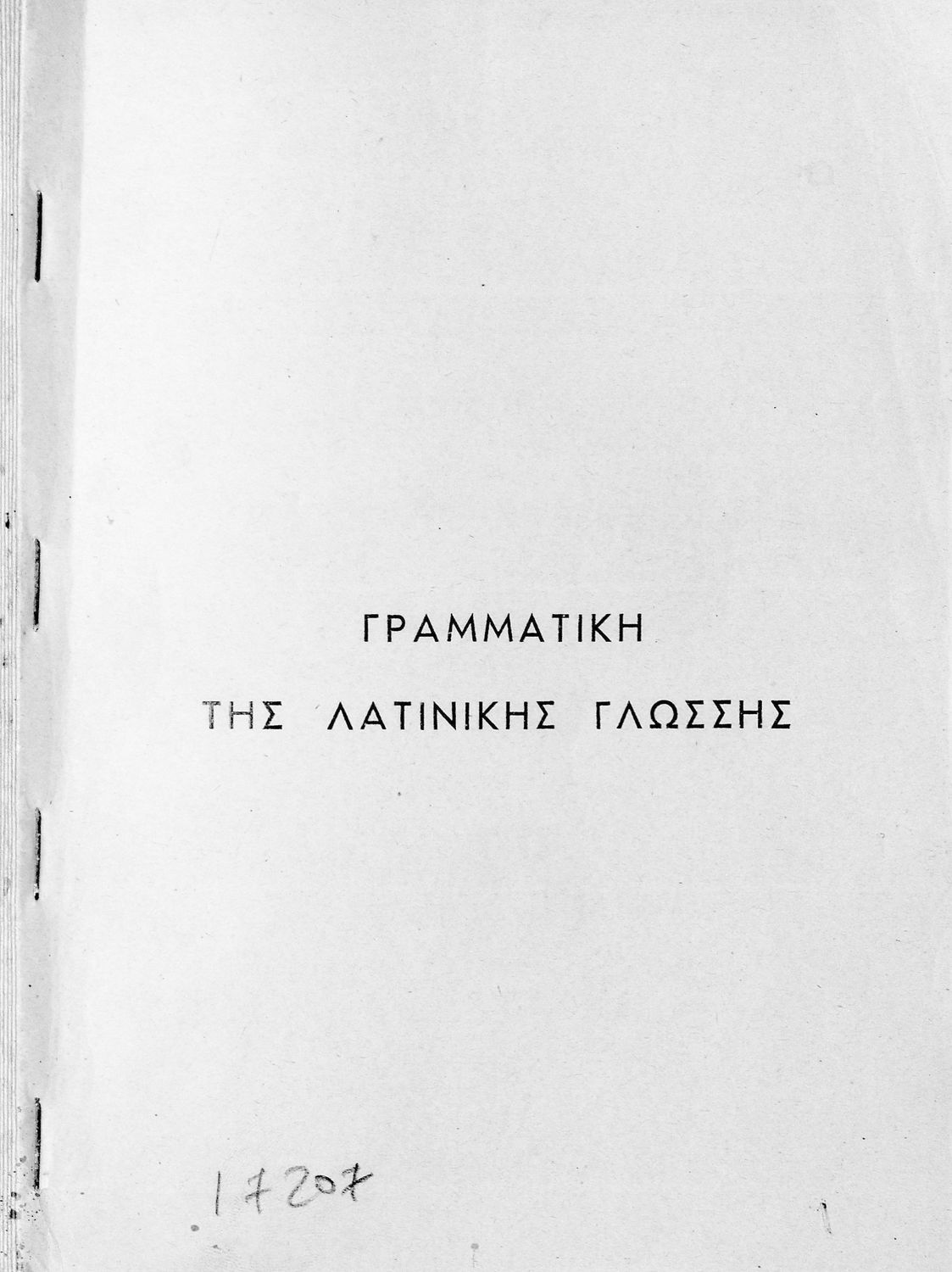 Τίτλος: Γραμματική της λατινικής γλώσσης δια τας ανωτέρας τάξεις των Γυμνασίων