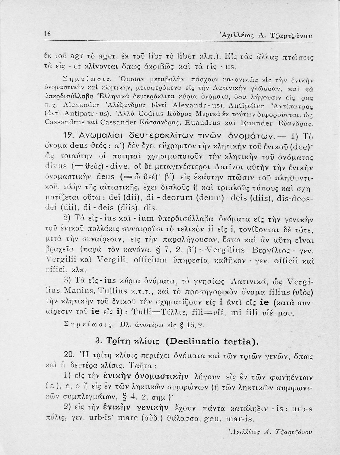 Σχολικό εγχειρίδιο Αρχαίων Ελληνικών Γυμνασίου που περιέχει τους κανόνες γραμματικής και είναι χωρισμένο σε φθογγολογικό, τυπολογικό και ετυμολογικό μέρος. Περιέχει και κατάλογο ανωμάλων ρημάτων.