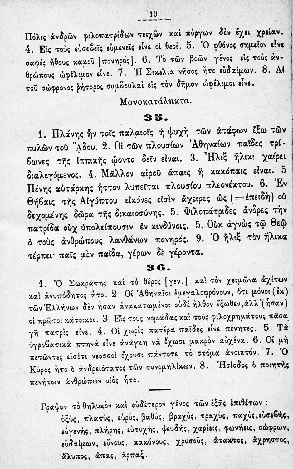 Παιδαγωγικό βοήθημα Αρχαίων Ελληνικών για την Α΄ Ελληνικών Σχολείων που περιλαμβάνει σύντομα κείμενα προσαρμοσμένα στη διδασκαλία των γραμματικών φαινομένων και λεξιλόγιο.
