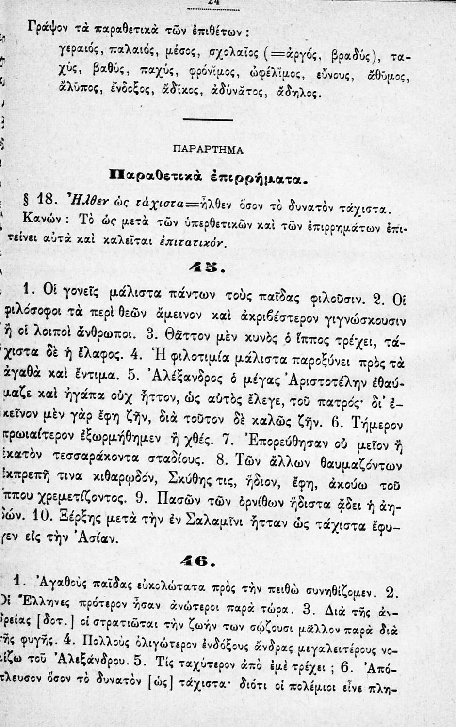 LDR 01049 2200193 4500 035 ## _a01-17208 040 ## _aΙνστιτούτο Εκπαιδευτικής Πολιτικής 041 ## _ael 100 ## _aΛ. Γ. Παπανδρέου 110 ## _a17208 245 0# _aΓυμνάσματα περί το τυπικόν της ελληνικής. Μέρος Α΄ 260 ## _aΑθήνα _bΑλέξανδρος Παπαγεωργίου _c1894 300 ## _a76 _c20 520 ## _aΠαιδαγωγικό βοήθημα Αρχαίων Ελληνικών για την Α΄ Ελληνικών Σχολείων που περιλαμβάνει σύντομα κείμενα προσαρμοσμένα στη διδασκαλία των γραμματικών φαινομένων και λεξιλόγιο. 521 ## _aΑ' Ελληνικού Σχολείου 522 ## _aΕλλάδα 546 ## _aΚαθαρεύουσα 563 ## _aΣκληρό Εξώφυλλο 650 #4 _aΑντωνυμίες _aΕπίθετα _aΟυσιαστικά _aΠροθέσεις _aΡήματα