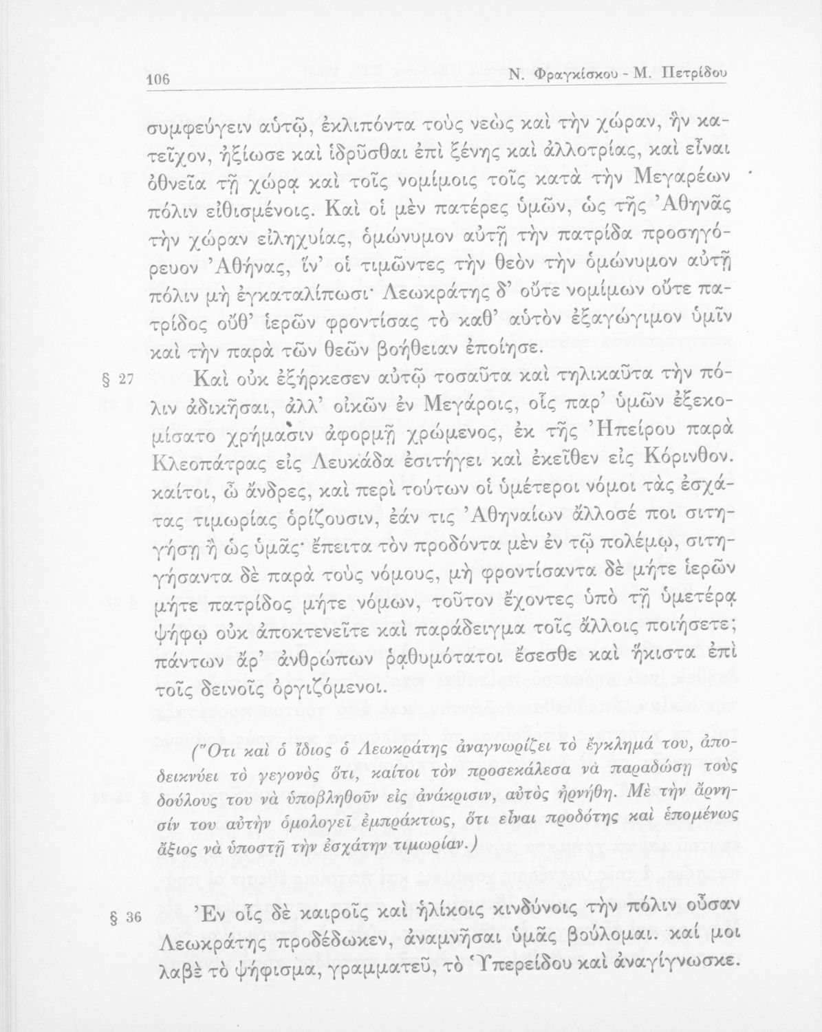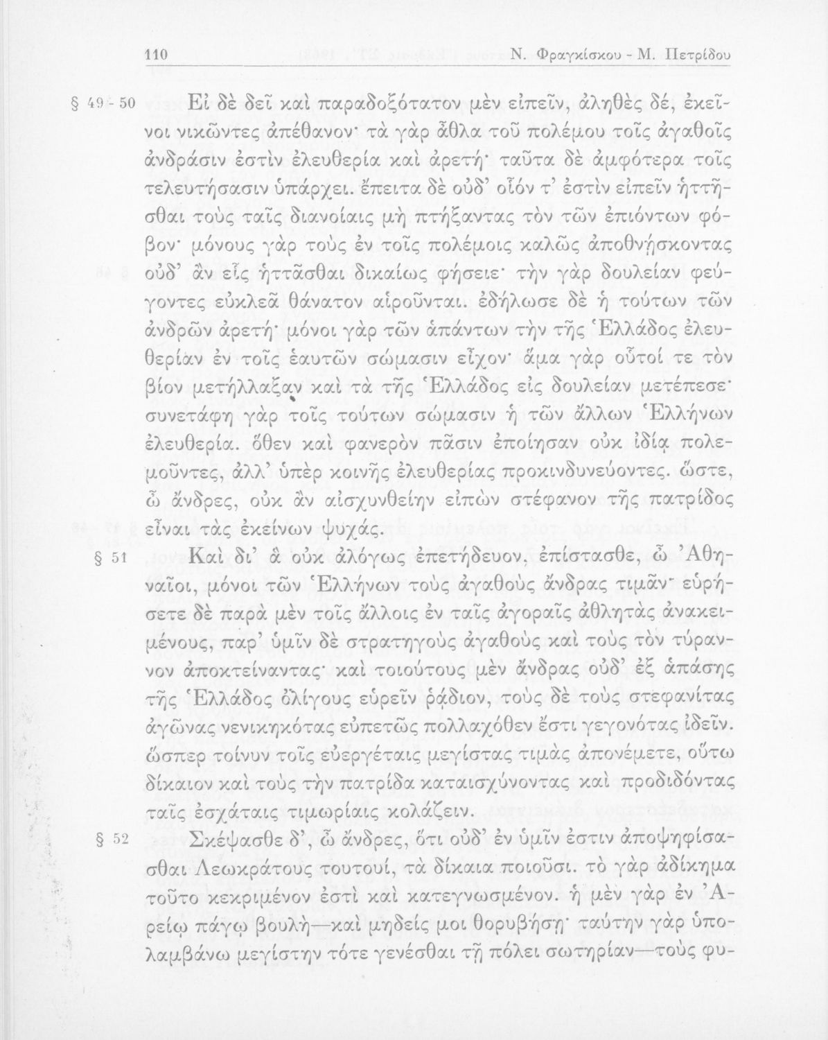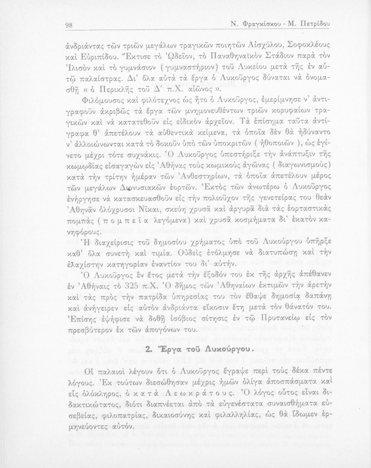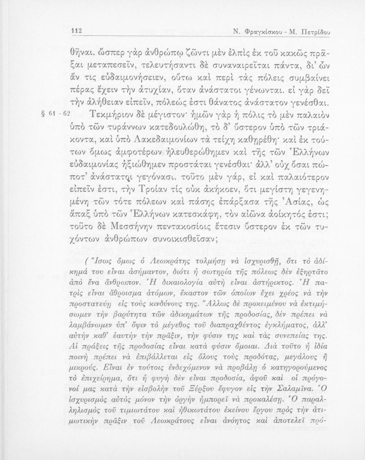 Λυκούργος, Ισοκράτης, Νικ. Εμμ. Φραγκίσκος (σχόλια)