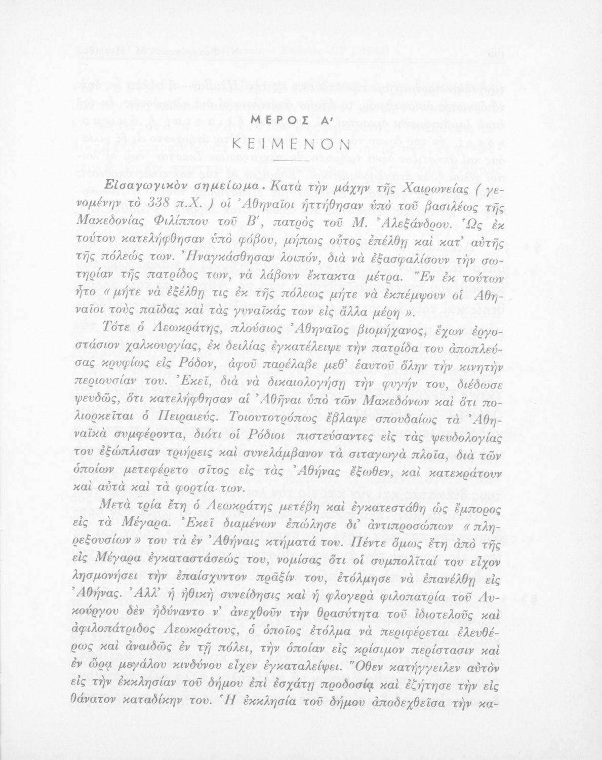 Σχολικό εγχειρίδιο Αρχαίων Ελληνικών Δ΄ Γυμνασίου που περιλαμβάνει τους Ολυνθιακούς Α΄ και Β΄ και τους Φιλιππικούς Α΄ και Β' του Δημοσθένη, τον Λόγο κατά Λεωκράτους του Λυκούργου και Επιστολές του Ισοκράτη, και ερμηνευτικές σημειώσεις και σχόλια.