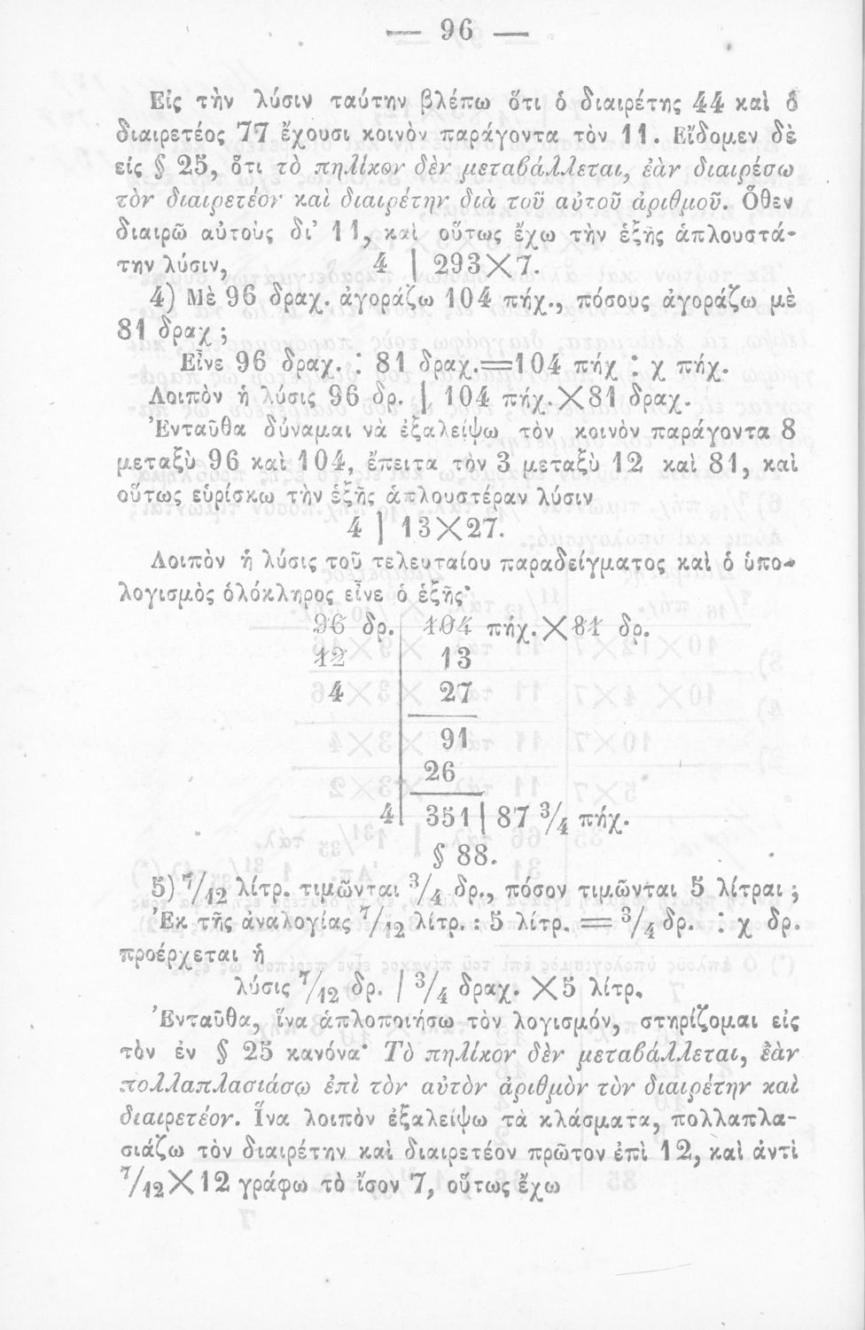Παρουσίαση περιεχομένου: Σχολικό εγχειρίδιο Αριθμητικής που εστιάζει στις αριθμητικές πράξεις και τις εφαρμογές τους. Ο συγγραφέας κρίνει την αναλυτική μέθοδο ως προσφορότερη για την Στοιχειώδη Εκπαίδευση και εκθειάζει τον "από μνήμης λογισμόν" που είχε επιβληθεί από τον κανονισμό των Ελληνικών Σχολείων του 1836.