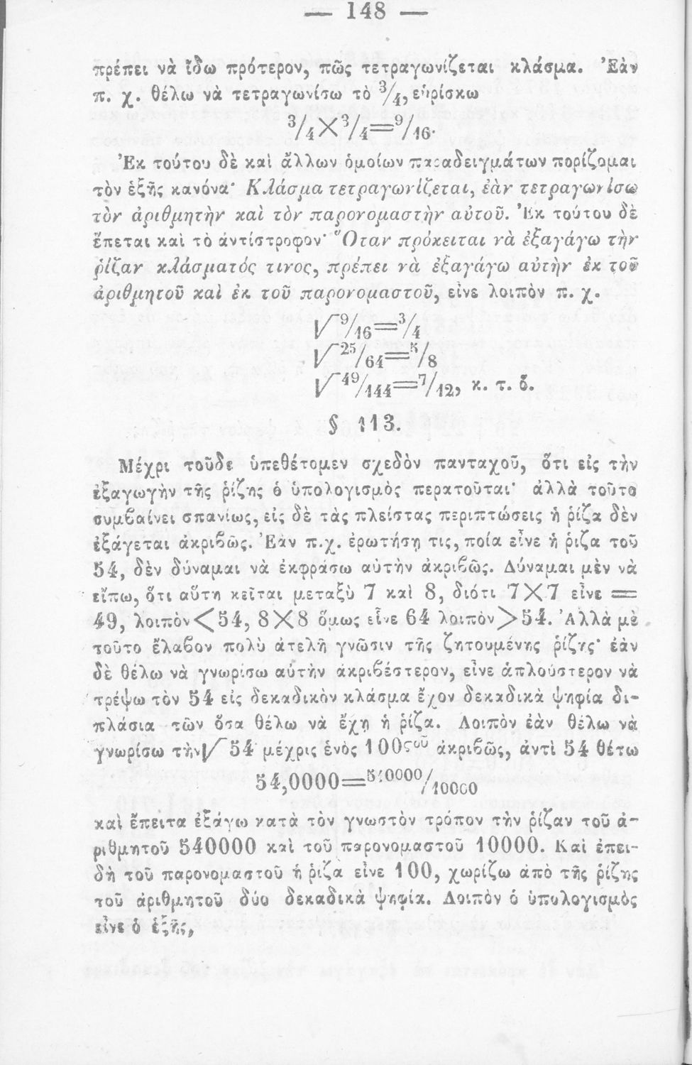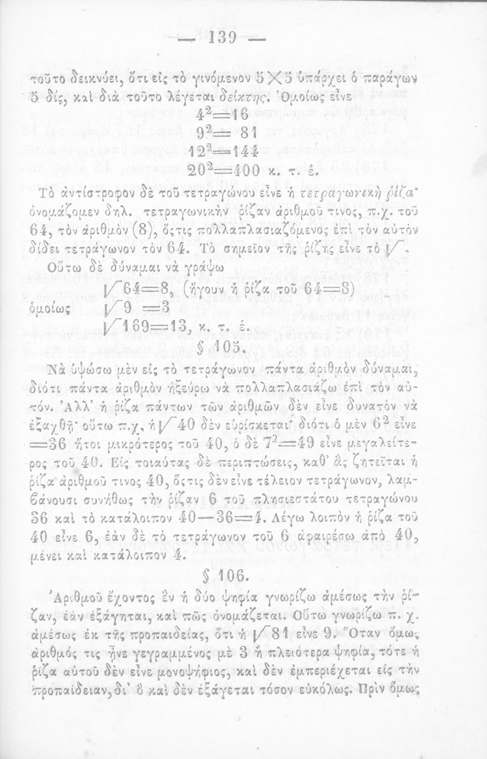 Σχολικό εγχειρίδιο Αριθμητικής που εστιάζει στις αριθμητικές πράξεις και τις εφαρμογές τους. Ο συγγραφέας κρίνει την αναλυτική μέθοδο ως προσφορότερη για την Στοιχειώδη Εκπαίδευση και εκθειάζει τον "από μνήμης λογισμόν" που είχε επιβληθεί από τον κανονισμό των Ελληνικών Σχολείων του 1836.