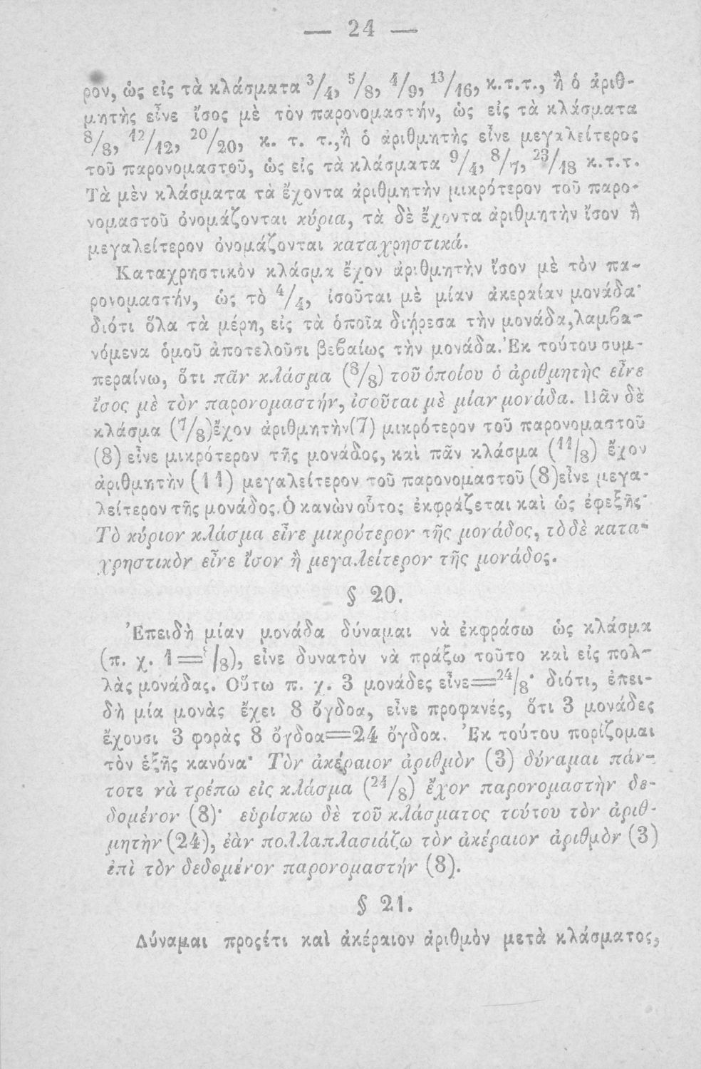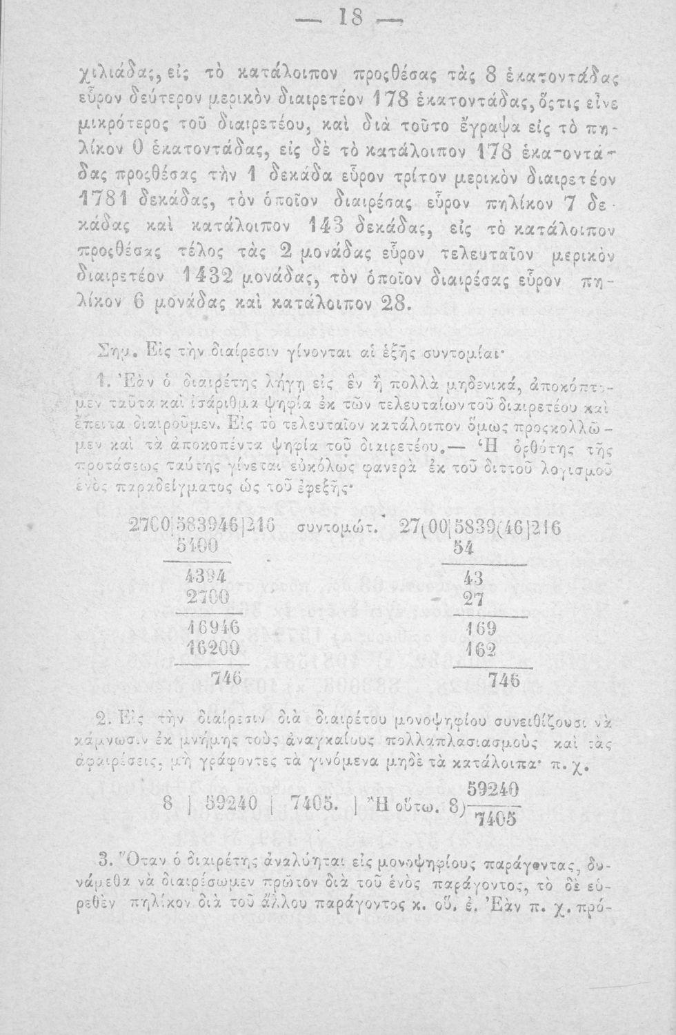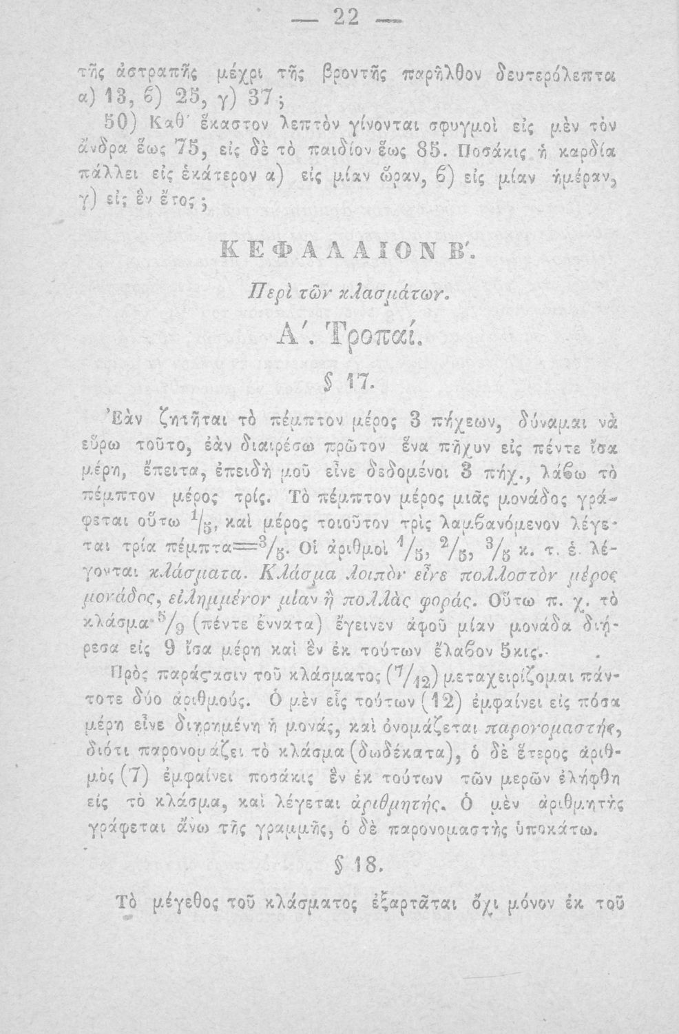 Σχολικό εγχειρίδιο Αριθμητικής που εστιάζει στις αριθμητικές πράξεις και τις εφαρμογές τους. Ο συγγραφέας κρίνει την αναλυτική μέθοδο ως προσφορότερη για την Στοιχειώδη Εκπαίδευση και εκθειάζει τον "από μνήμης λογισμόν" που είχε επιβληθεί από τον κανονισμό των Ελληνικών Σχολείων του 1836.