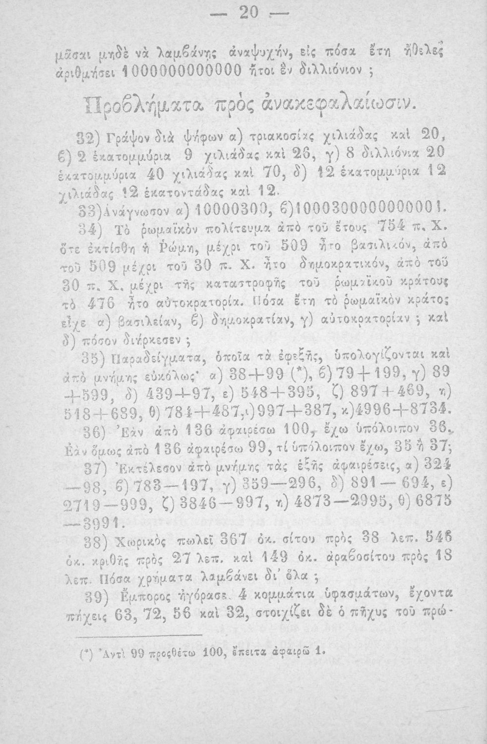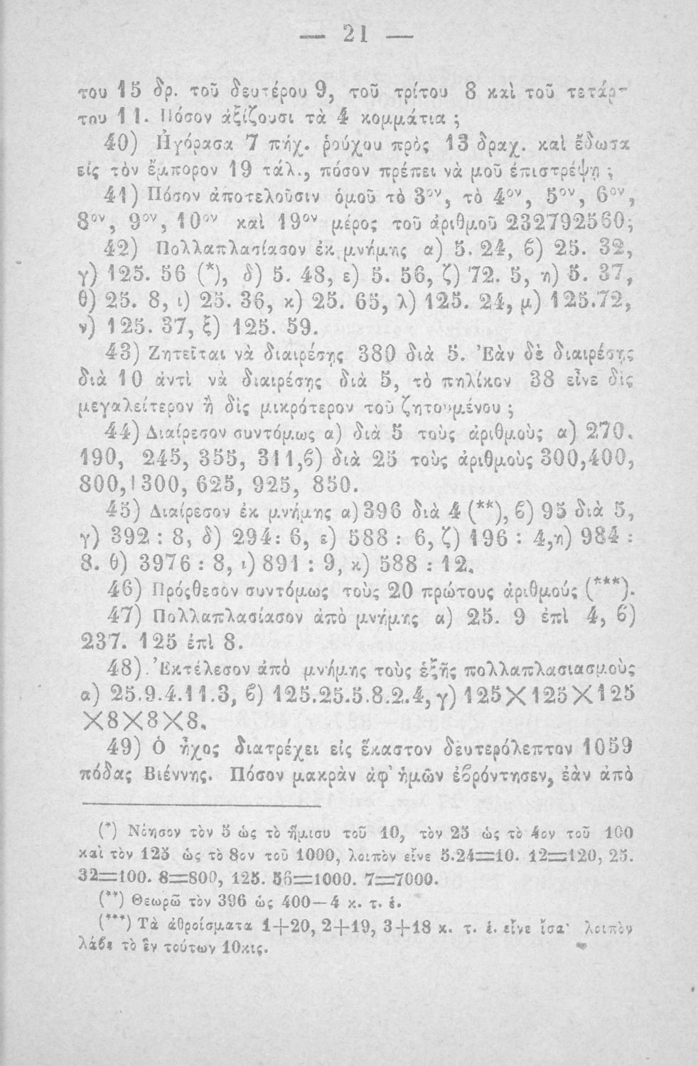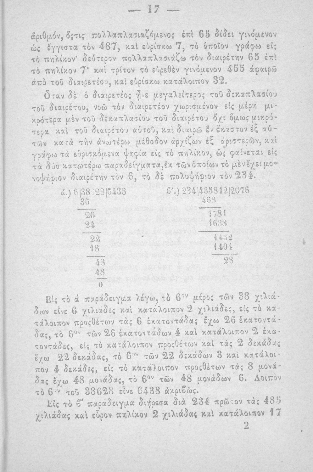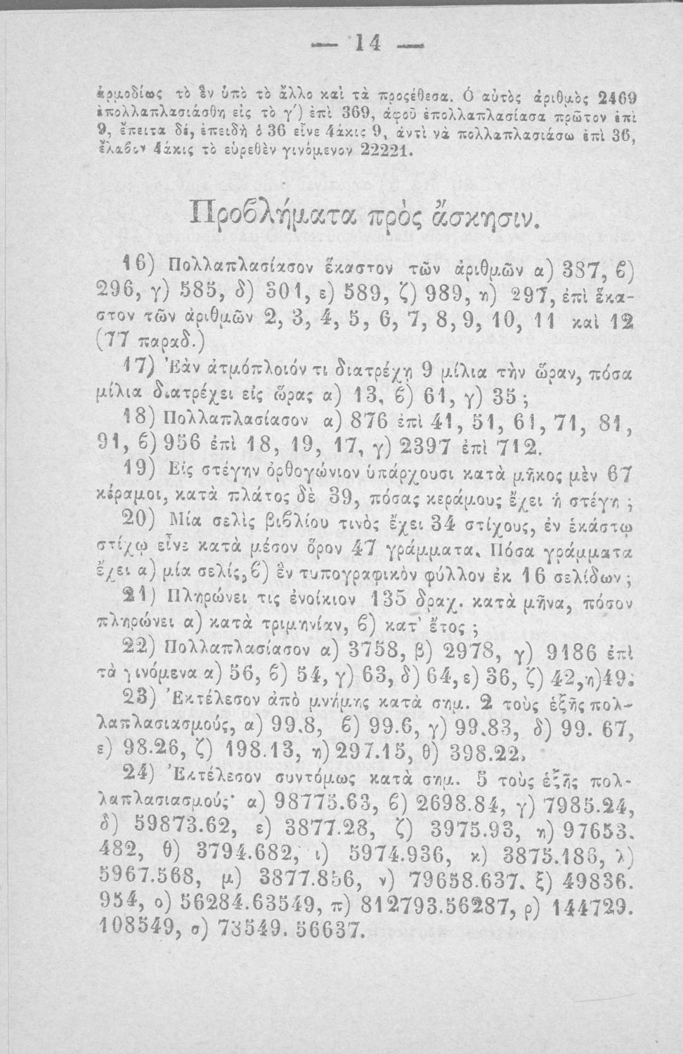 Σχολικό εγχειρίδιο Αριθμητικής που εστιάζει στις αριθμητικές πράξεις και τις εφαρμογές τους. Ο συγγραφέας κρίνει την αναλυτική μέθοδο ως προσφορότερη για την Στοιχειώδη Εκπαίδευση και εκθειάζει τον "από μνήμης λογισμόν" που είχε επιβληθεί από τον κανονισμό των Ελληνικών Σχολείων του 1836.