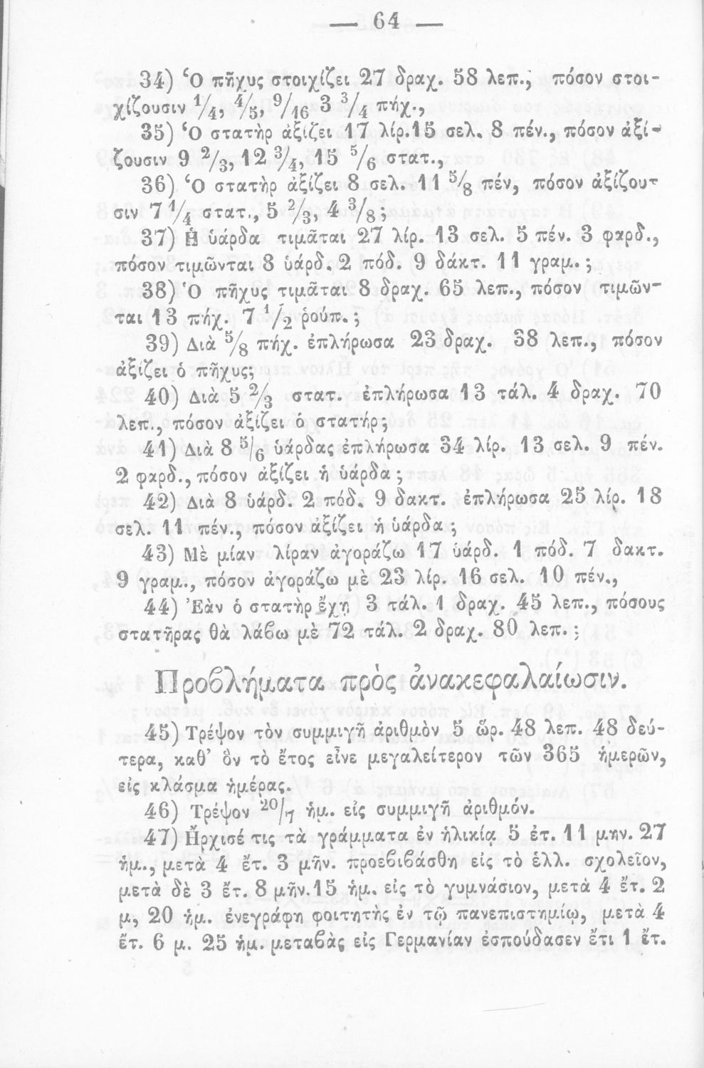 Εγχειρίδιον Αριθμητικής μετά συλλογής προβλημάτων κατά το σύστημα Κάρολου Κοπή προς χρήσιν των Ελληνικών Σχολείων