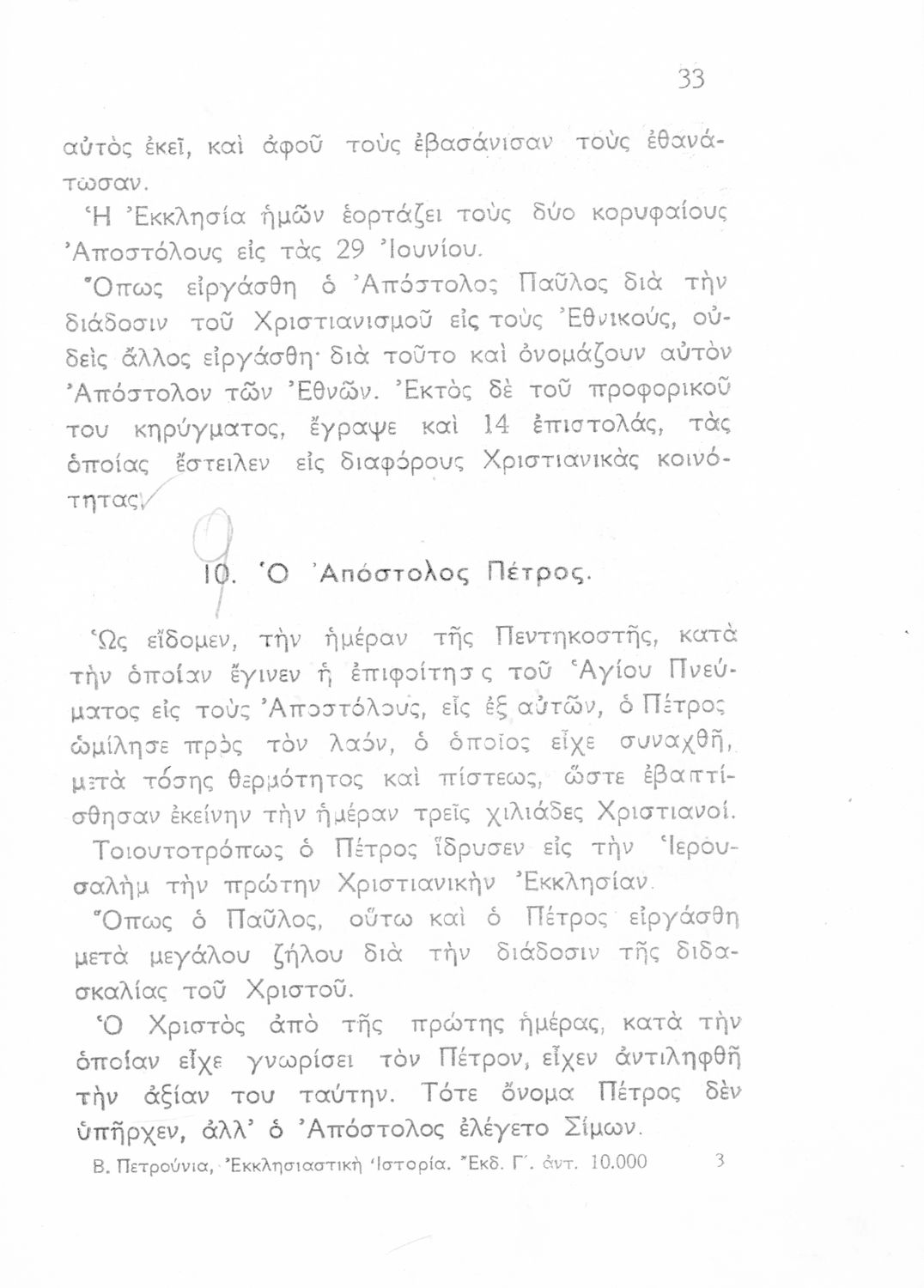 Βαθμίδα εκπαίδευσης: Πρωτοβάθμια Τάξη: Ε' Δημοτικού / ΣΤ' Δημοτικού Μάθημα: Θρησκευτικά Γλώσσα: Απλή καθαρεύουσα Παρουσίαση περιεχομένου: Σχολικό εγχειρίδιο Θρησκευτικών Ε΄ και ΣΤ΄ Δημοτικού που αποτελεί μια ιστορική επισκόπηση της Ορθόδοξης Εκκλησίας από την ίδρυσή της μέχρι την ίδρυση της Εκκλησίας της Ελλάδας. |