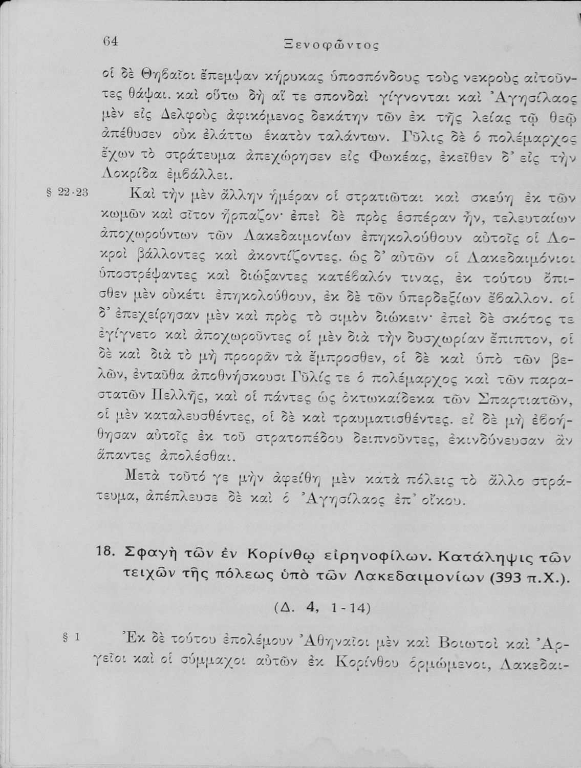 Σχολικό εγχειρίδιο Αρχαίων Ελληνικών Δ΄ Γυμνασίου που περιλαμβάνει αποσπάσματα από το έργο του Ξενοφώντα Ελληνικά, γραμματικές και συντακτικές παρατηρήσεις και ερμηνευτικά και πραγματολογικά σχόλια.