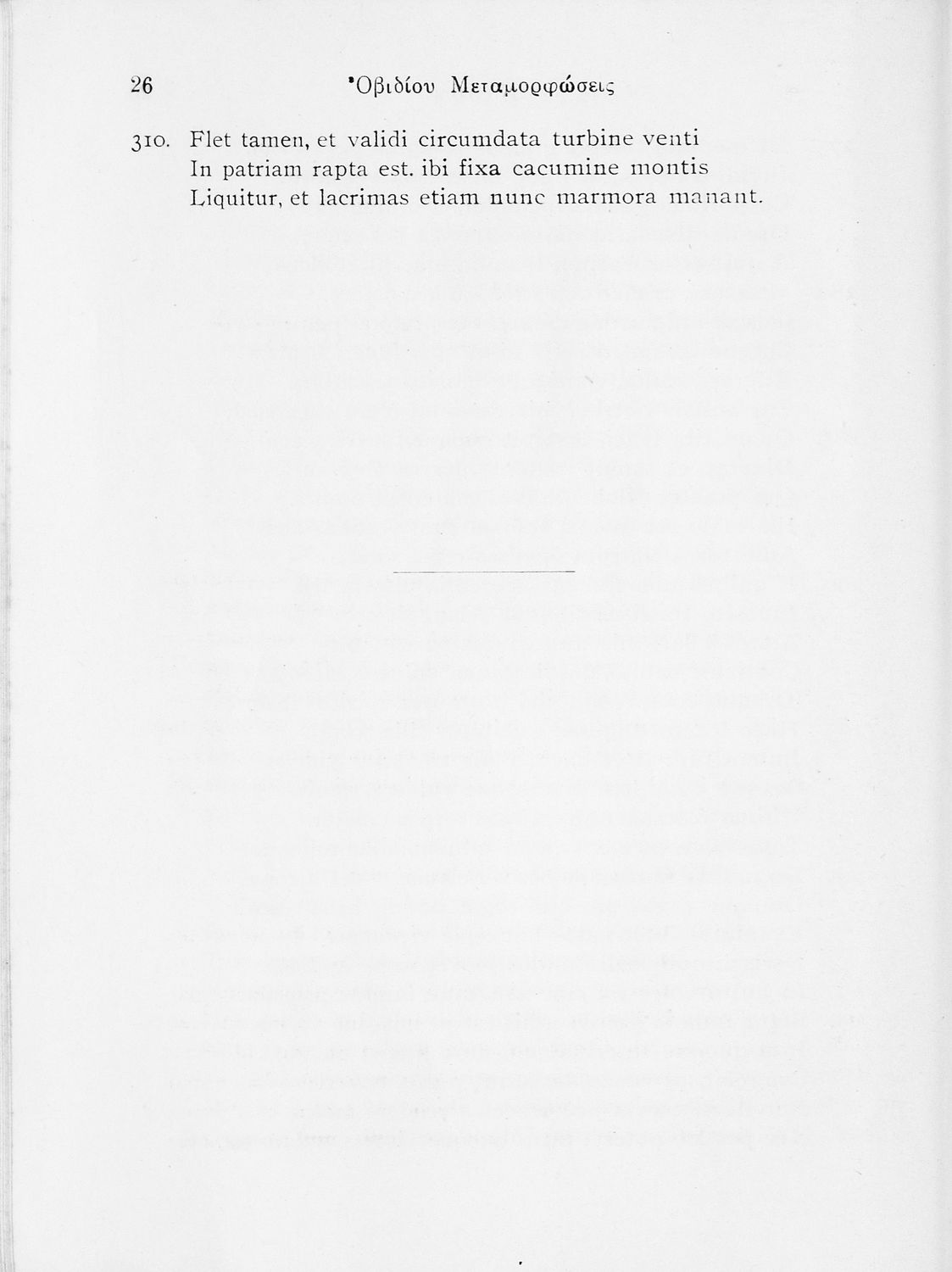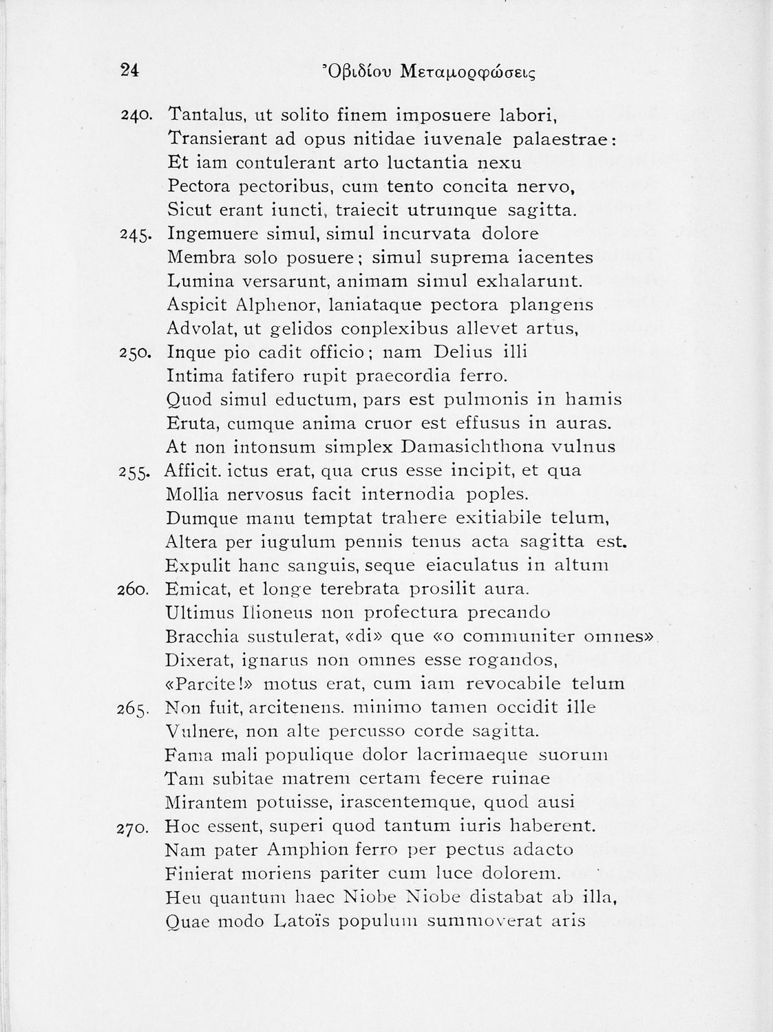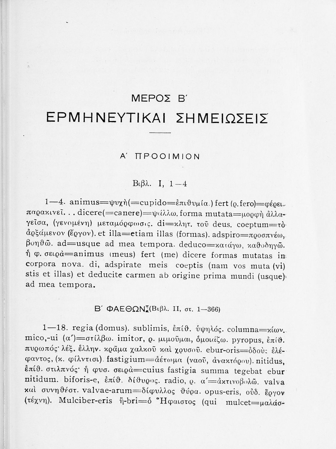 Σχολικό εγχειρίδιο Λατινικών για την Ε΄ Γυμνασίου παλαιού τύπου και την ΣΤ΄ Γυμνασίου νέου τύπου που περιέχει βιογραφικό σημείωμα του Οβίδιου, εισαγωγικά σχόλια, αποσπάσματα από τις Μεταμορφώσεις και ερμηνευτικές σημειώσεις.