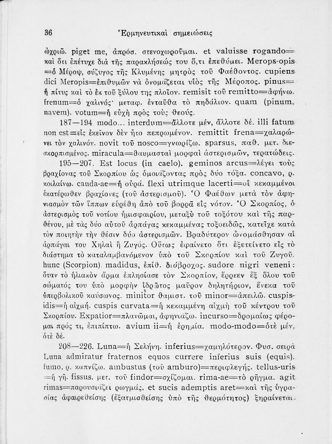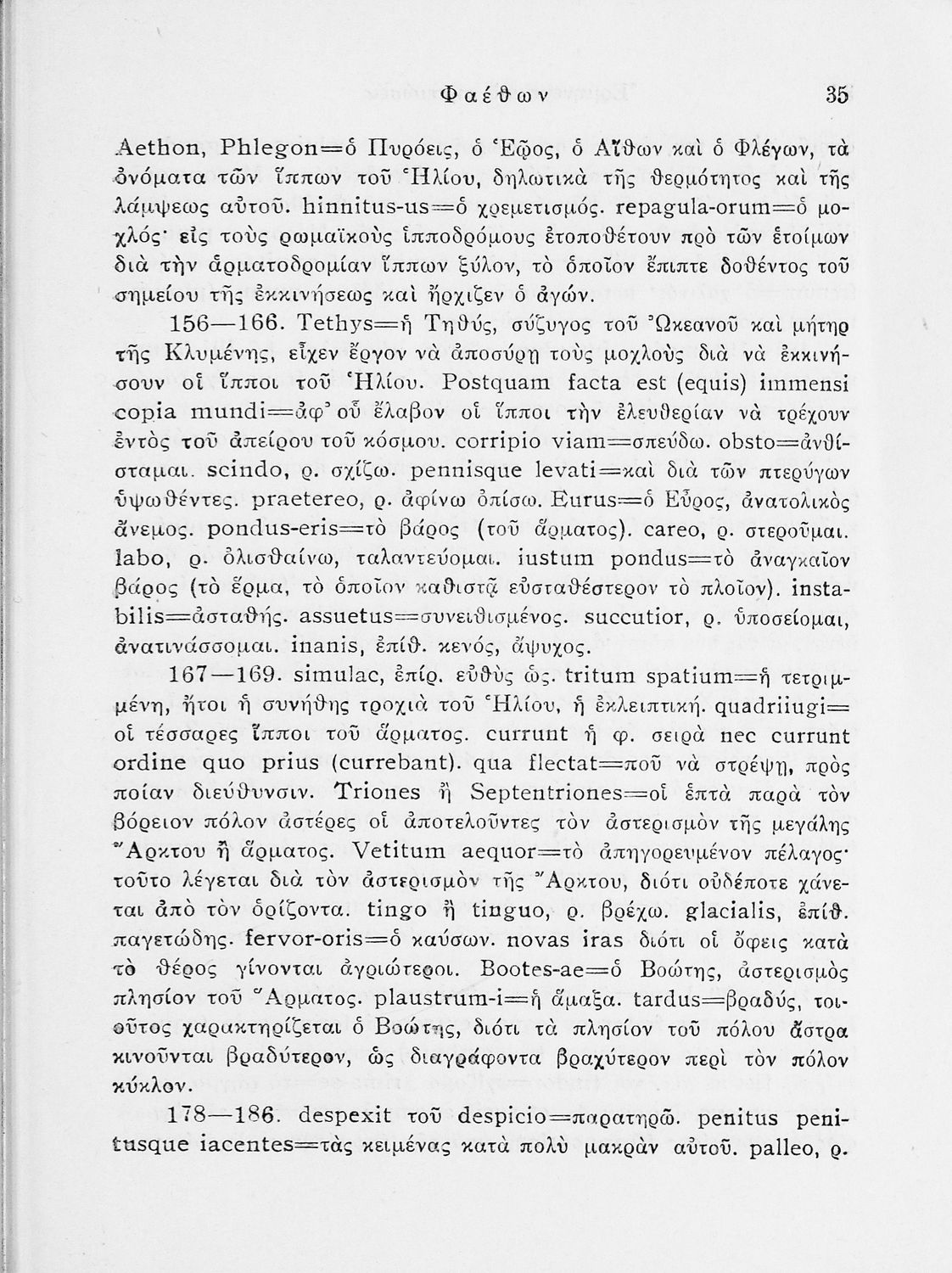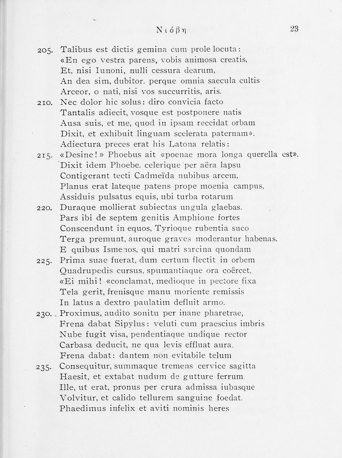 Σχολικό εγχειρίδιο Λατινικών για την Ε΄ Γυμνασίου παλαιού τύπου και την ΣΤ΄ Γυμνασίου νέου τύπου που περιέχει βιογραφικό σημείωμα του Οβίδιου, εισαγωγικά σχόλια, αποσπάσματα από τις Μεταμορφώσεις και ερμηνευτικές σημειώσεις.